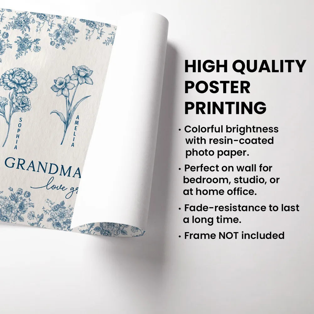 Personalized Grandma’s Garden Poster – Custom Gift for Grandma with Flower Design