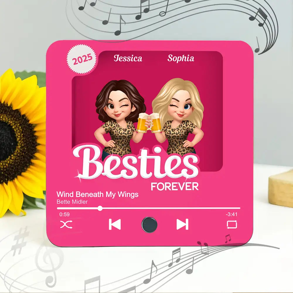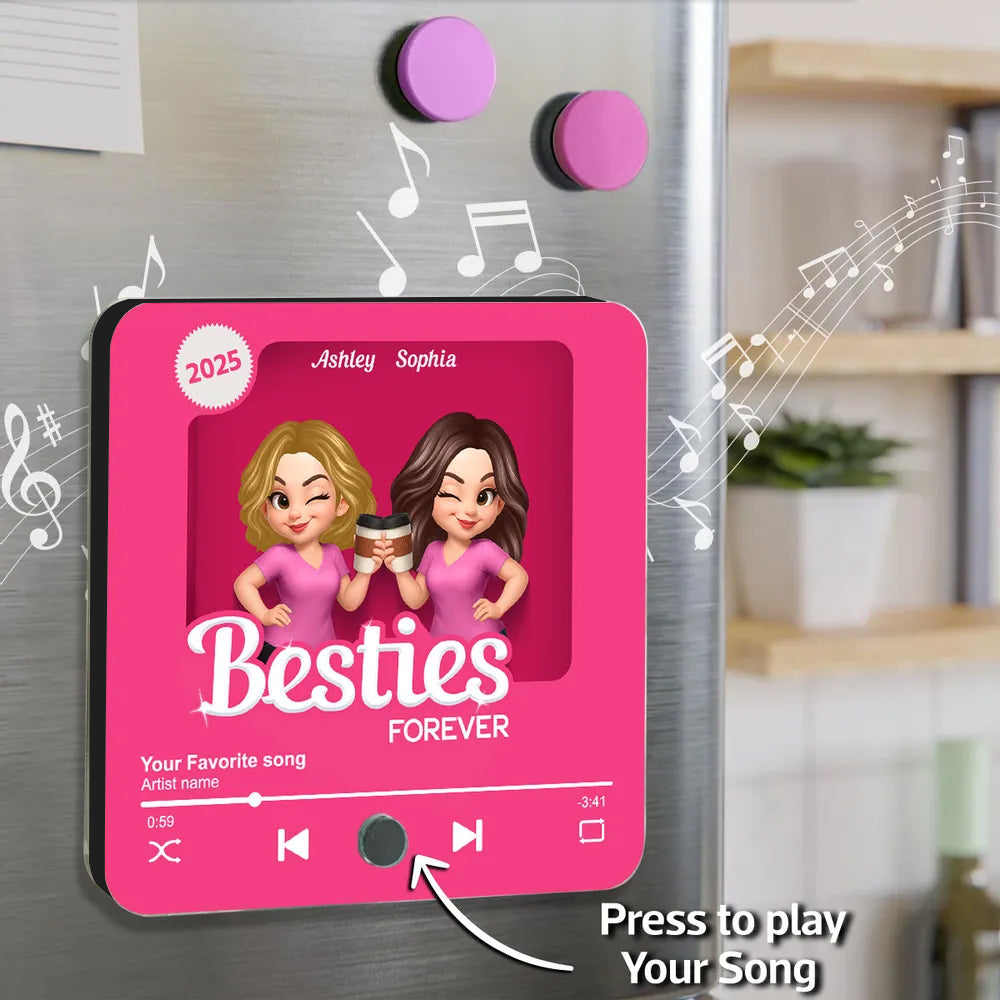 Personalized “Besties Forever” Acrylic Music Magnet – Custom Gift for Best Friends