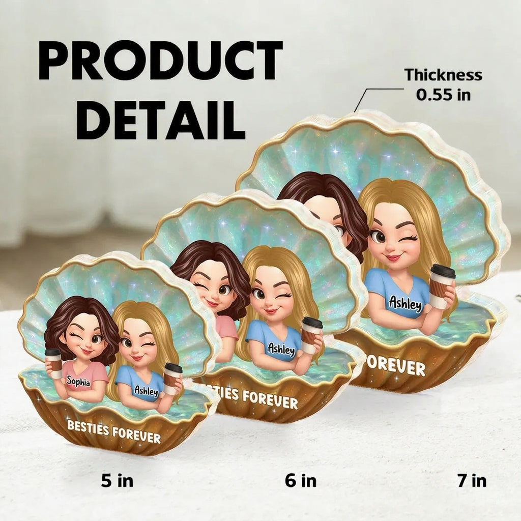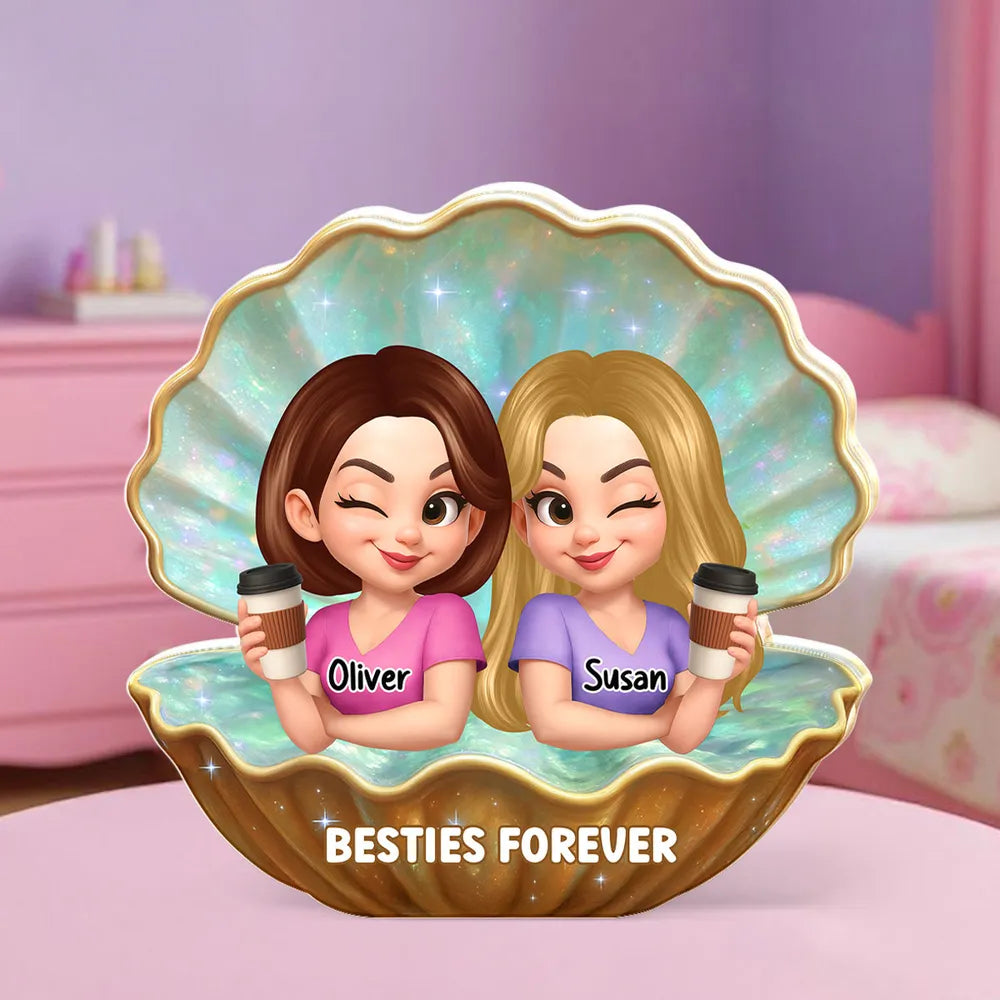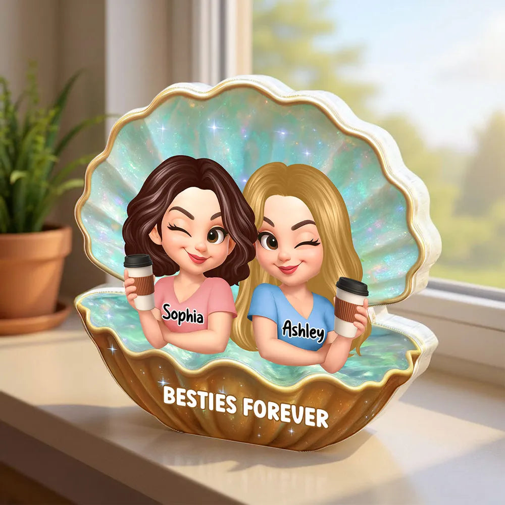 Celebrate the bond of friendship with this adorable personalized acrylic block plaque. Designed with two best friends holding coffee cups, this fun and custom piece brings out the joy and uniqueness of your relationship. Whether displayed on a desk or bookshelf, it will always remind you and your bestie of the memories you've shared.