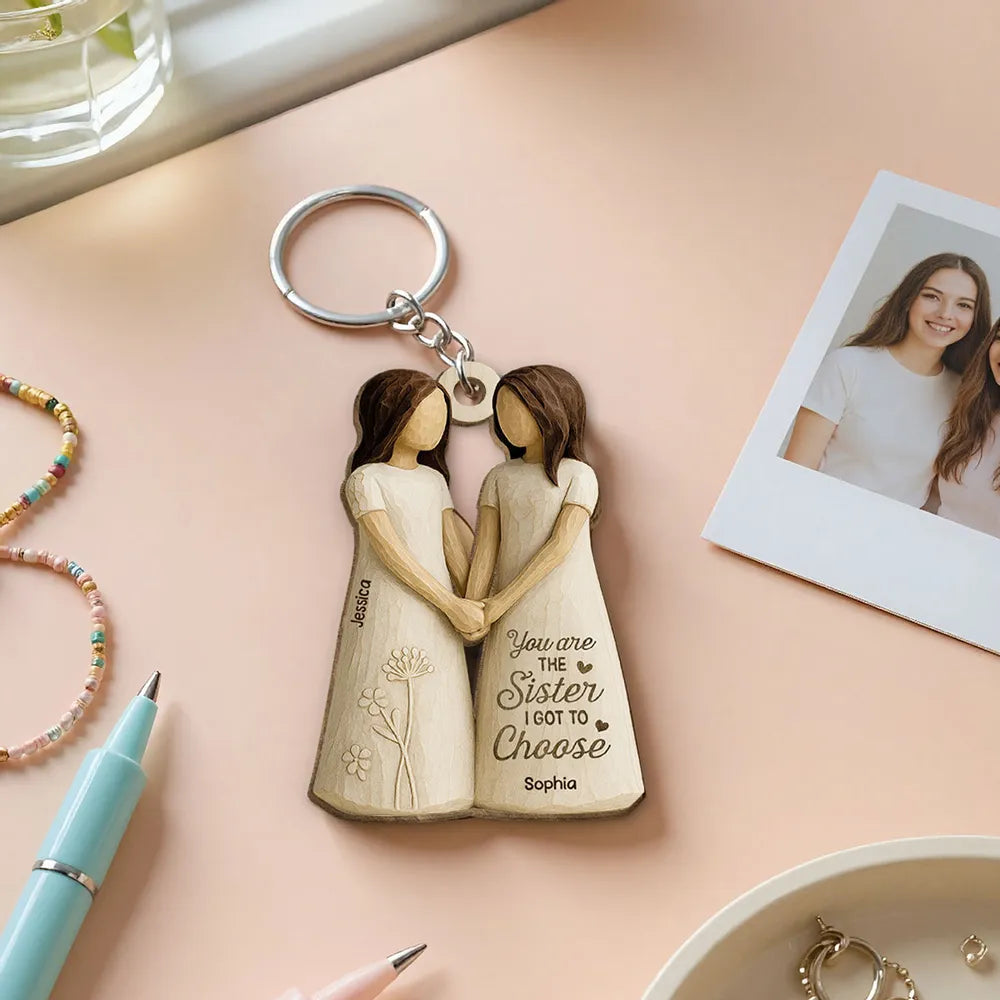 You Are the Sister I Got to Choose – Personalized Wooden Keychain for Best Friends or Soul Sisters