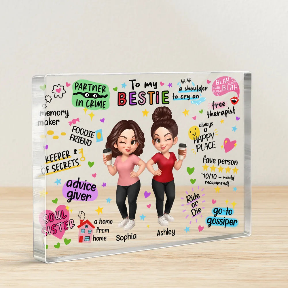 To My Bestie – Personalized Acrylic Block Plaque for Sisters with Fun Quotes