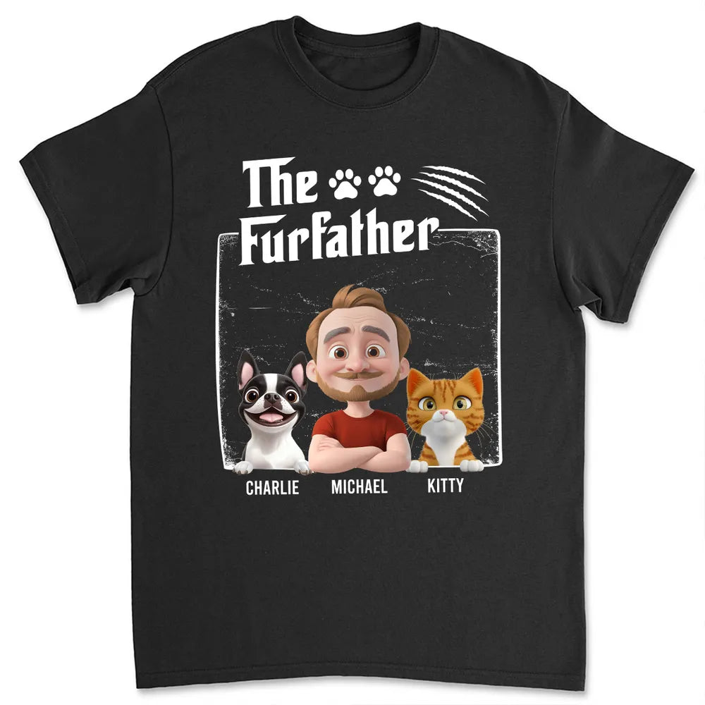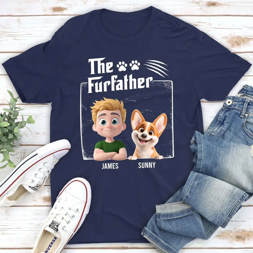 The FurFather Classic Tee with custom cartoon man and dog design, comfy cotton fabric, perfect gift for dog dads