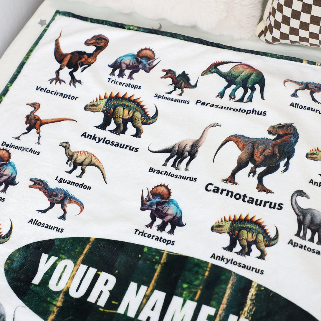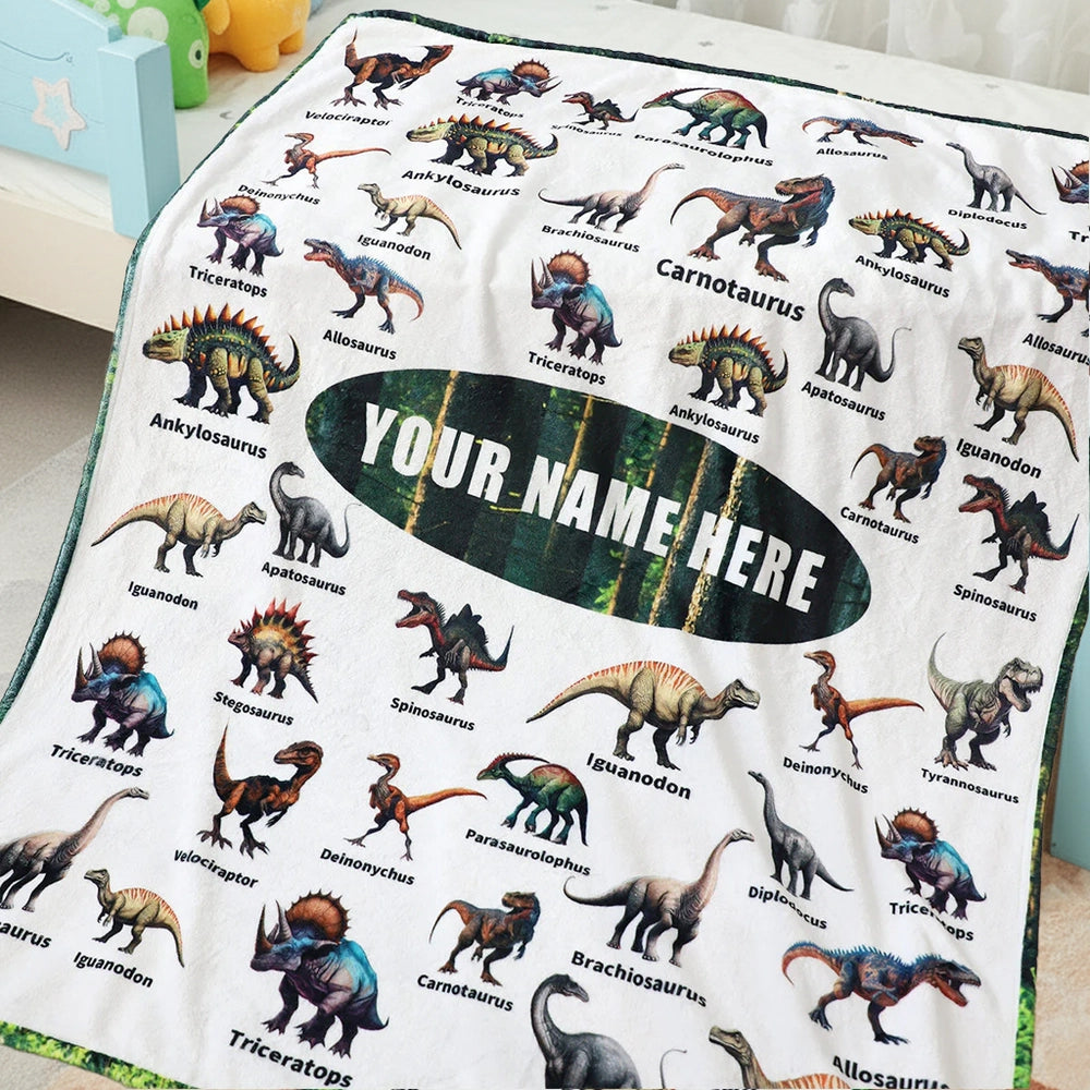 Personalized Dinosaur Chart Fleece Throw Blanket for Kids, Educational & Soft Warm Gift