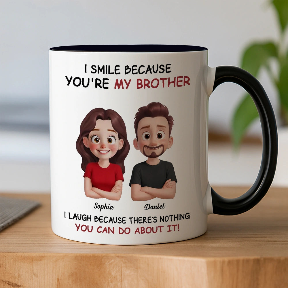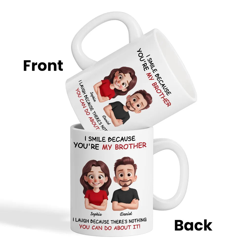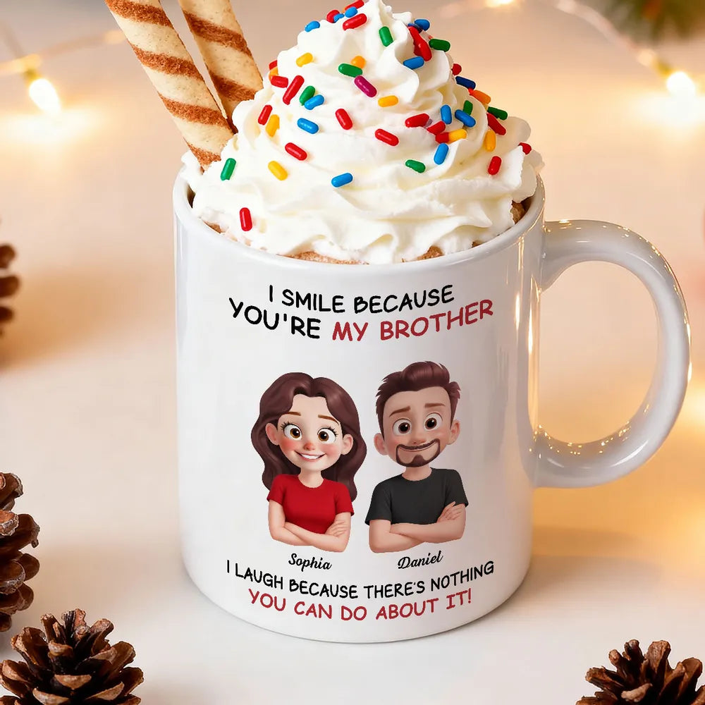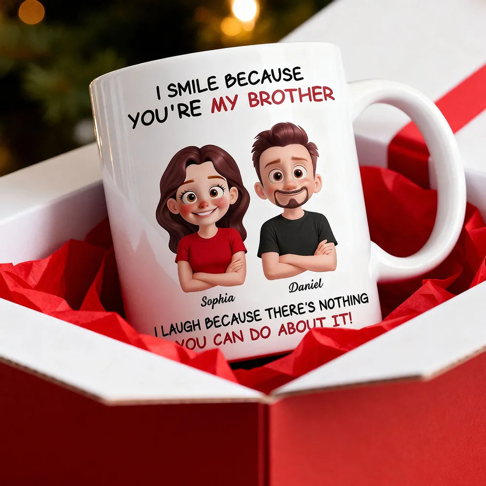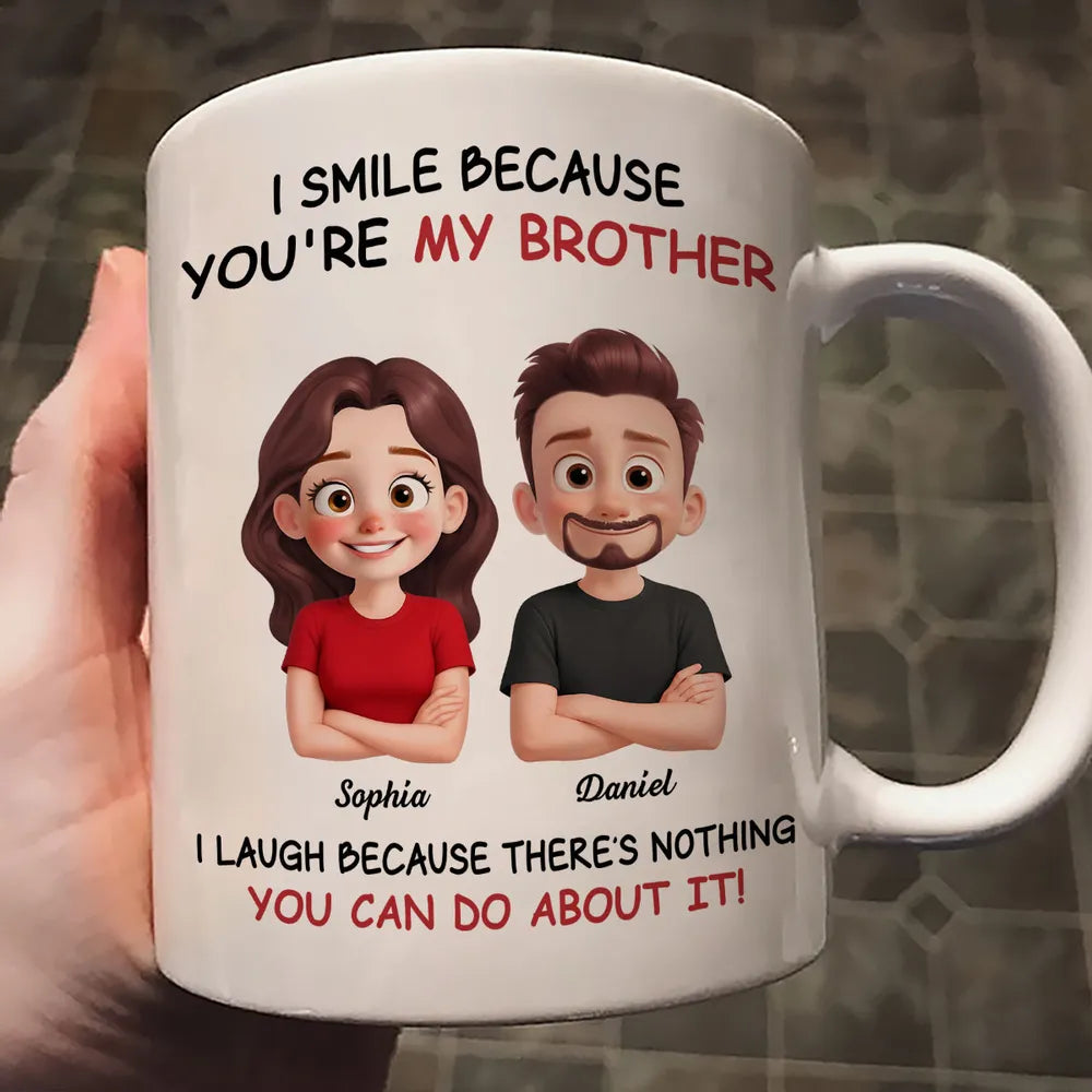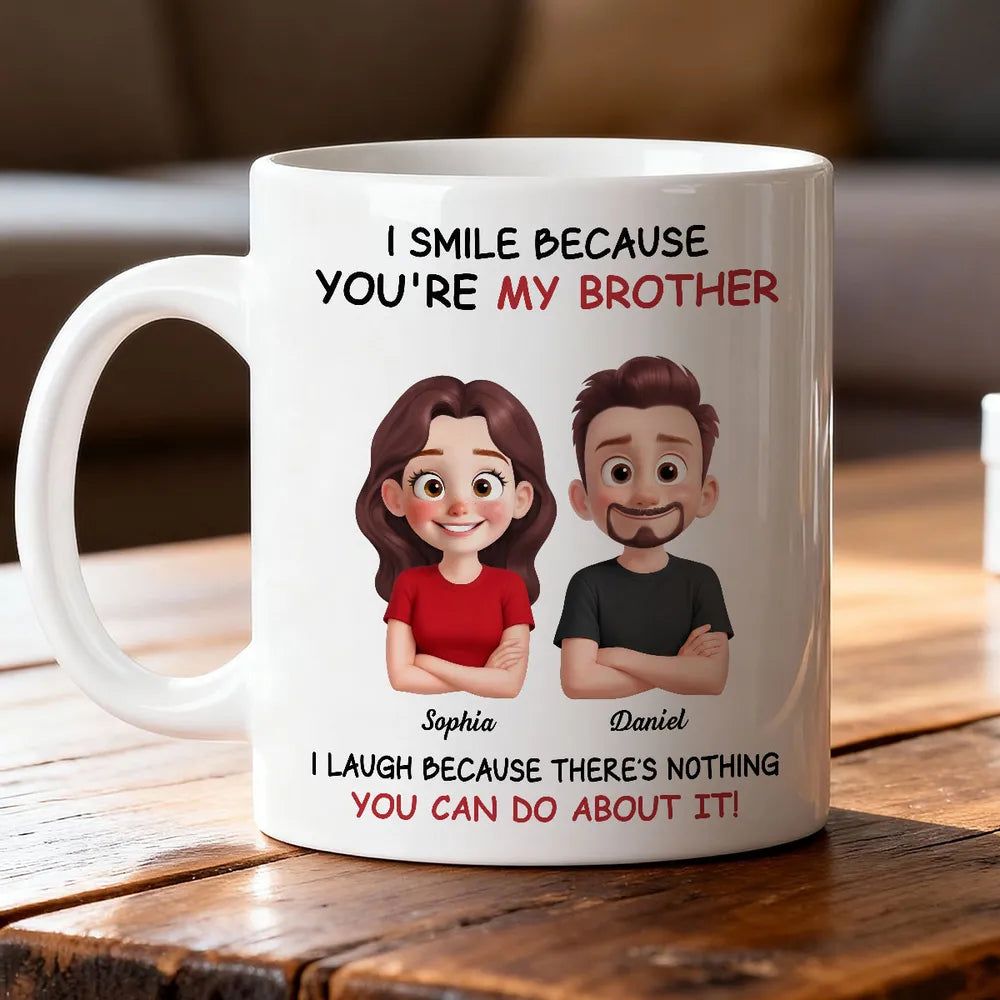 Funny Sibling White Ceramic Mug – Personalized Brother & Sister Cartoon, Playful Quote, Creative Gift for Coworker or Family