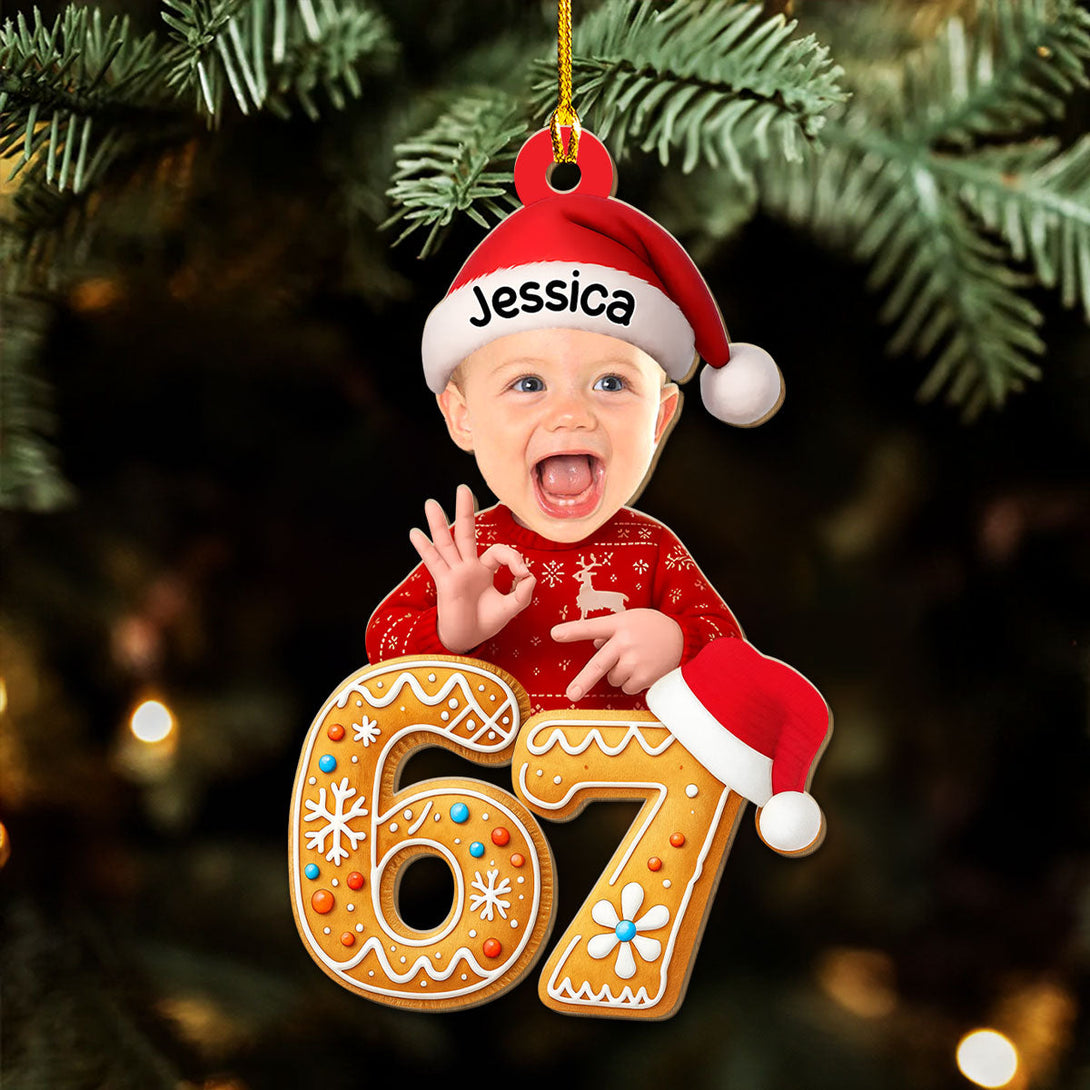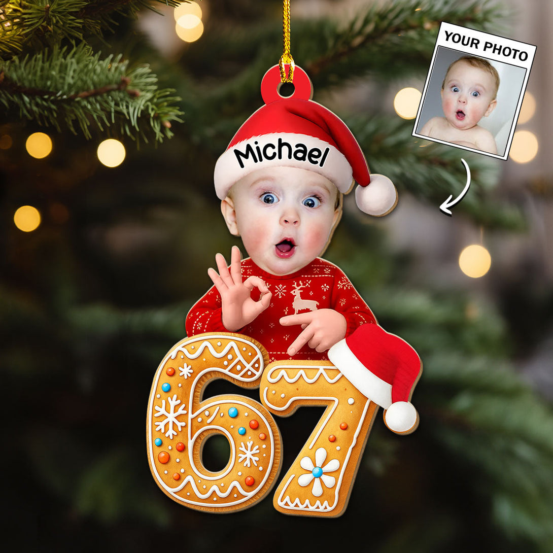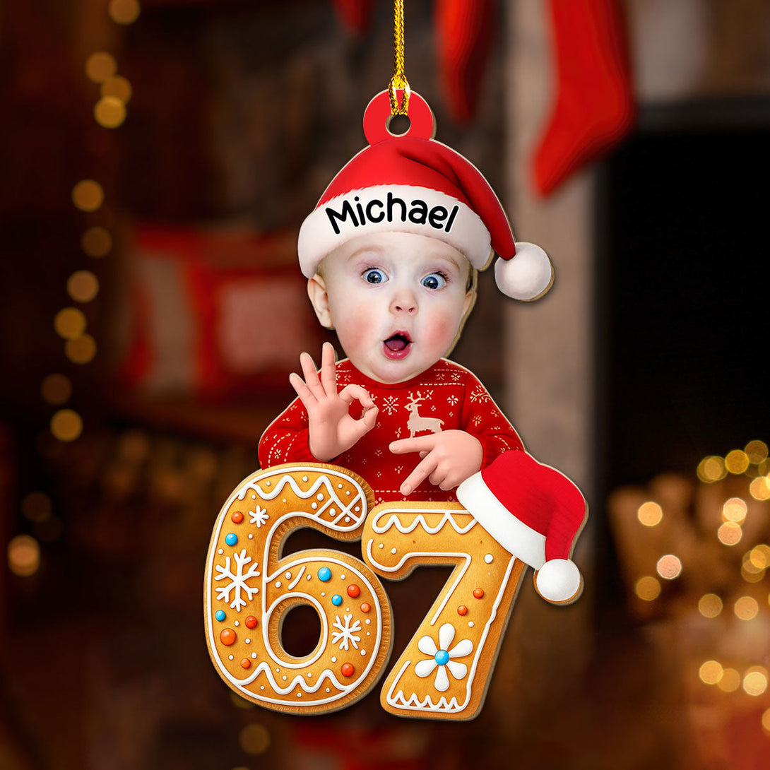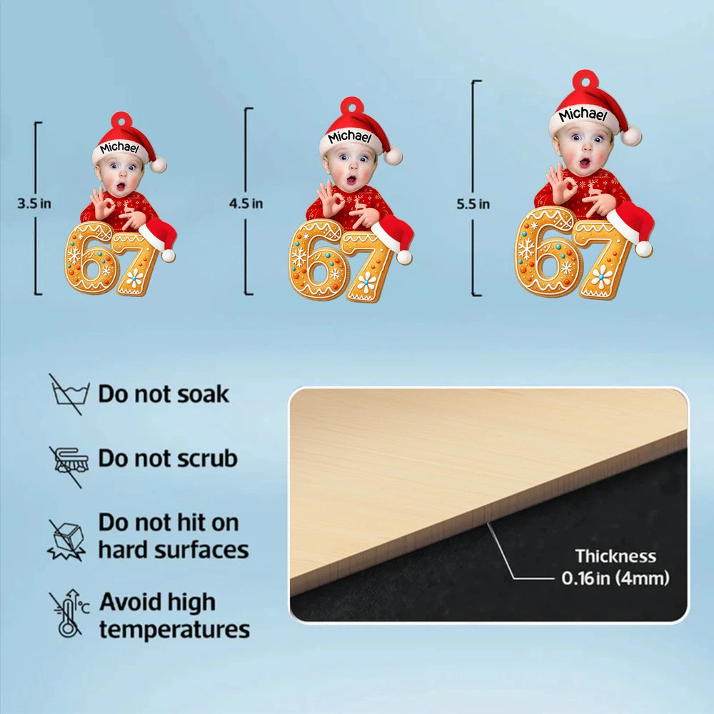Personalized 67 Meme Wooden Ornament with Your Baby Photo – Funny Christmas Wooden Ornament & Unique Holiday Gift for Family and Friends