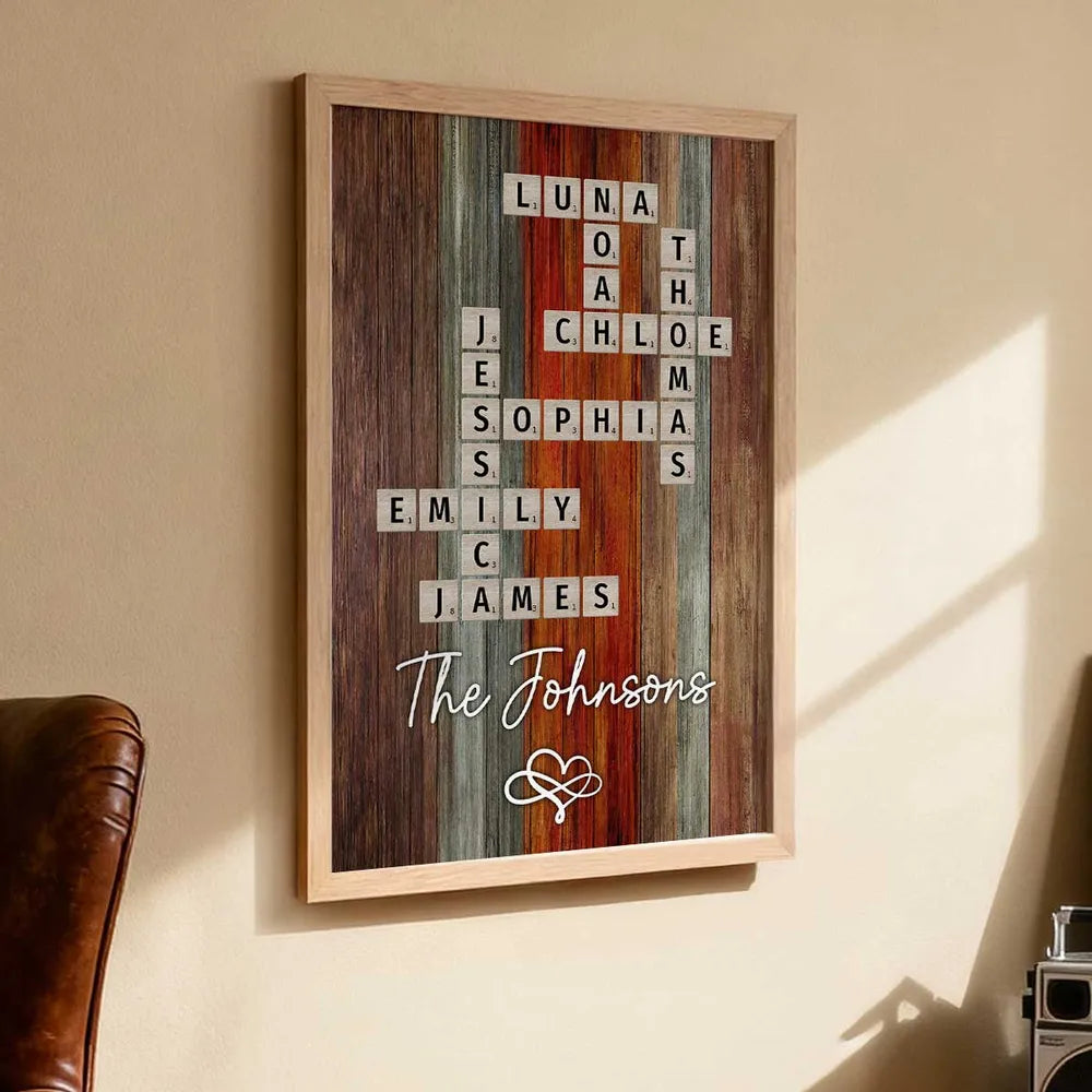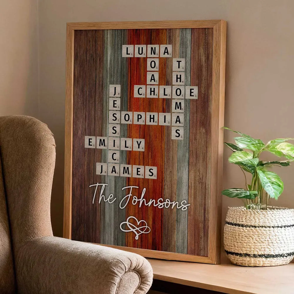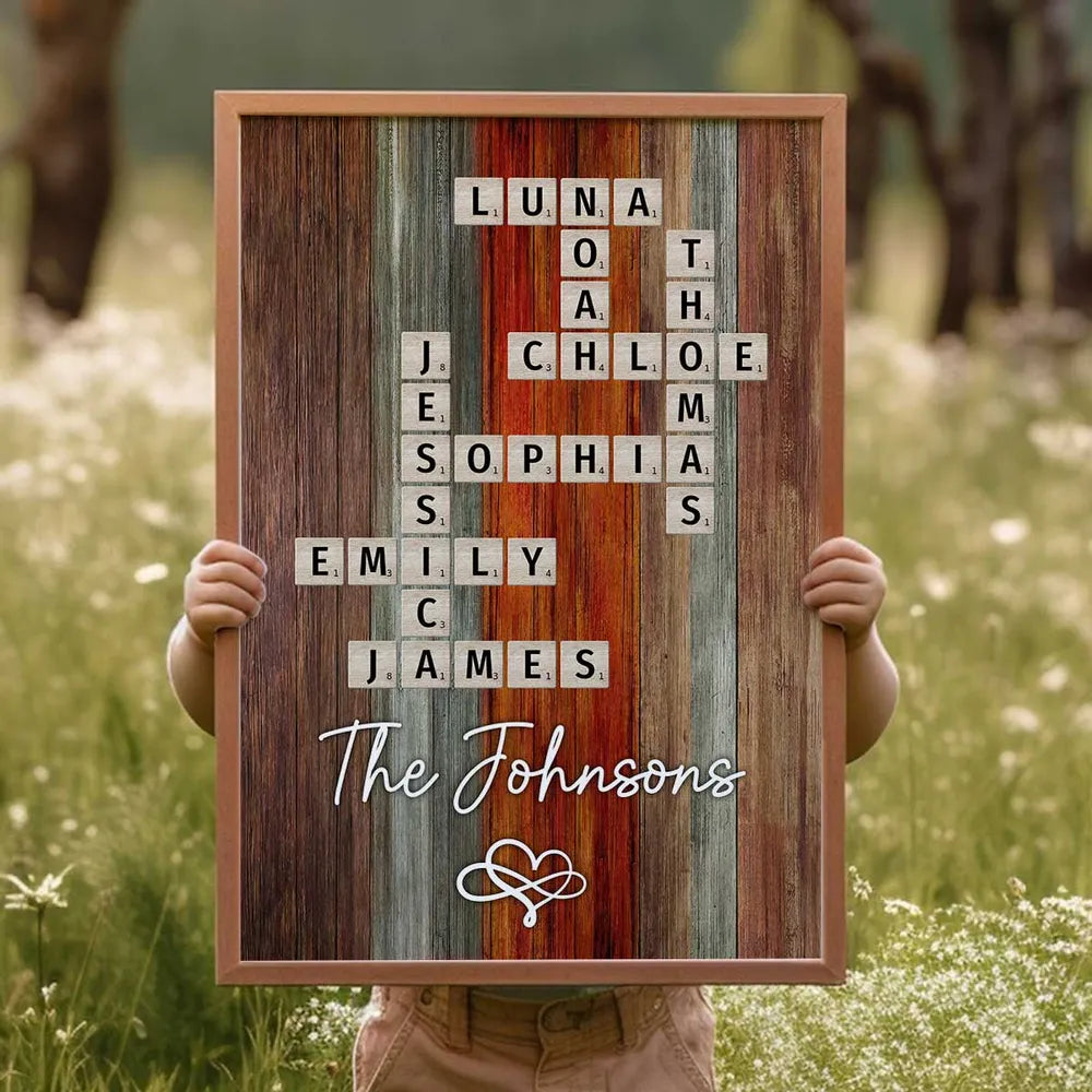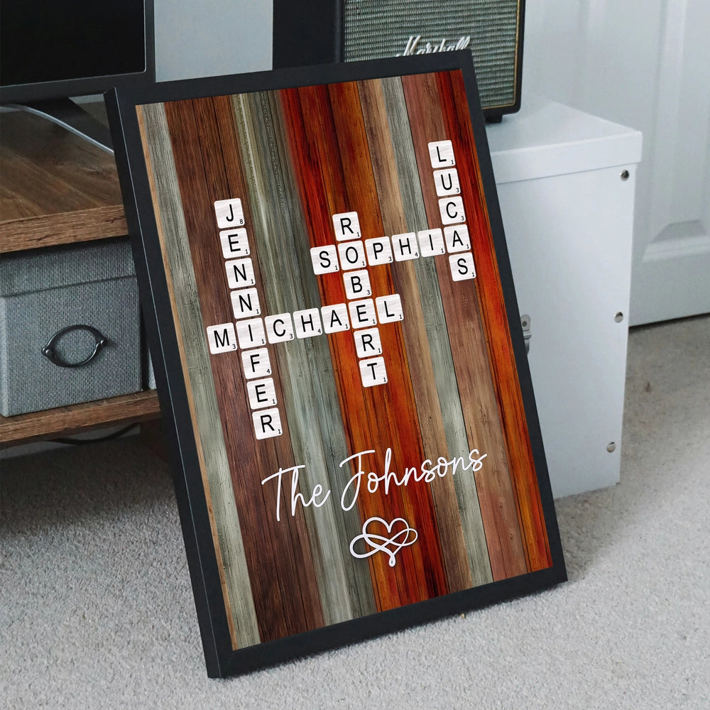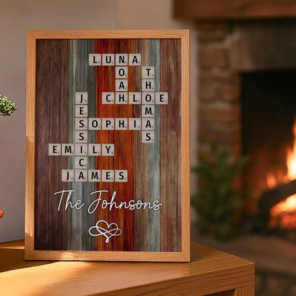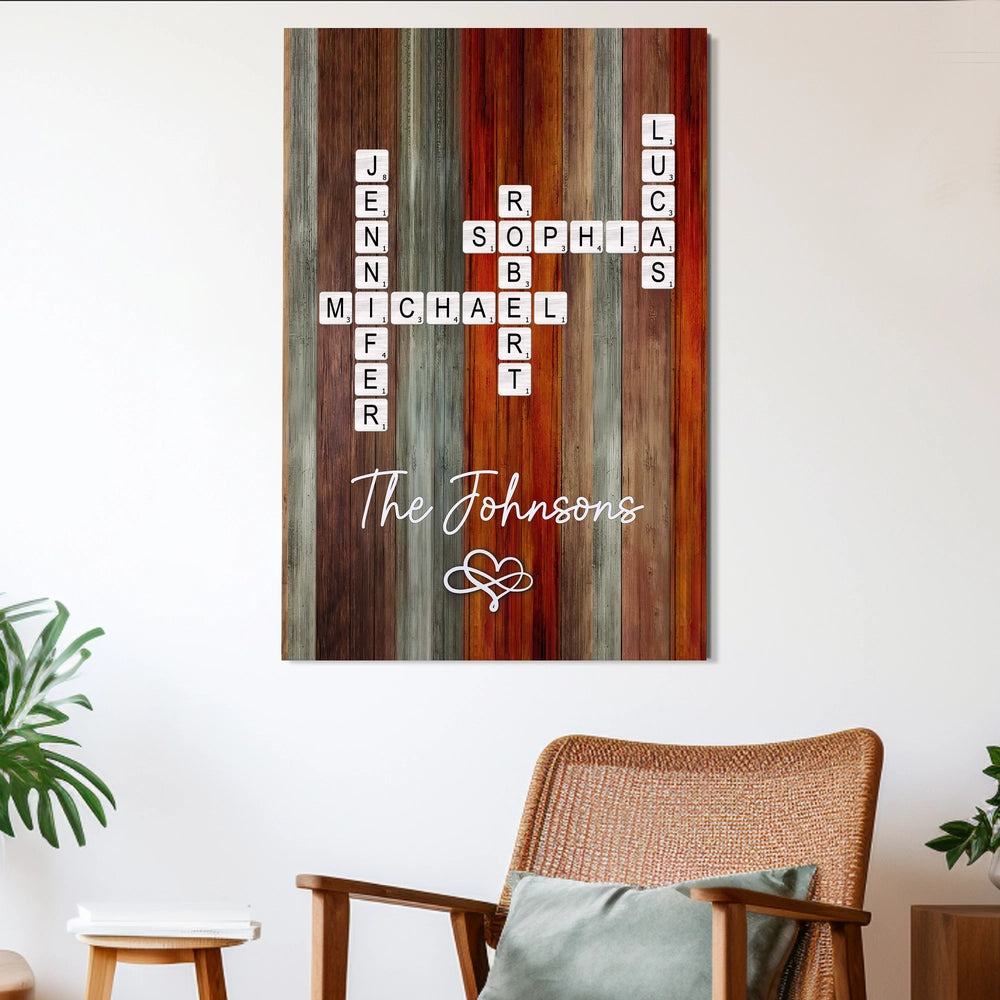 Create a personalized family crossword poster that turns every name into a warm, rustic wall statement. It is a unique gift that feels truly custom, perfect for making any house instantly feel more like home.