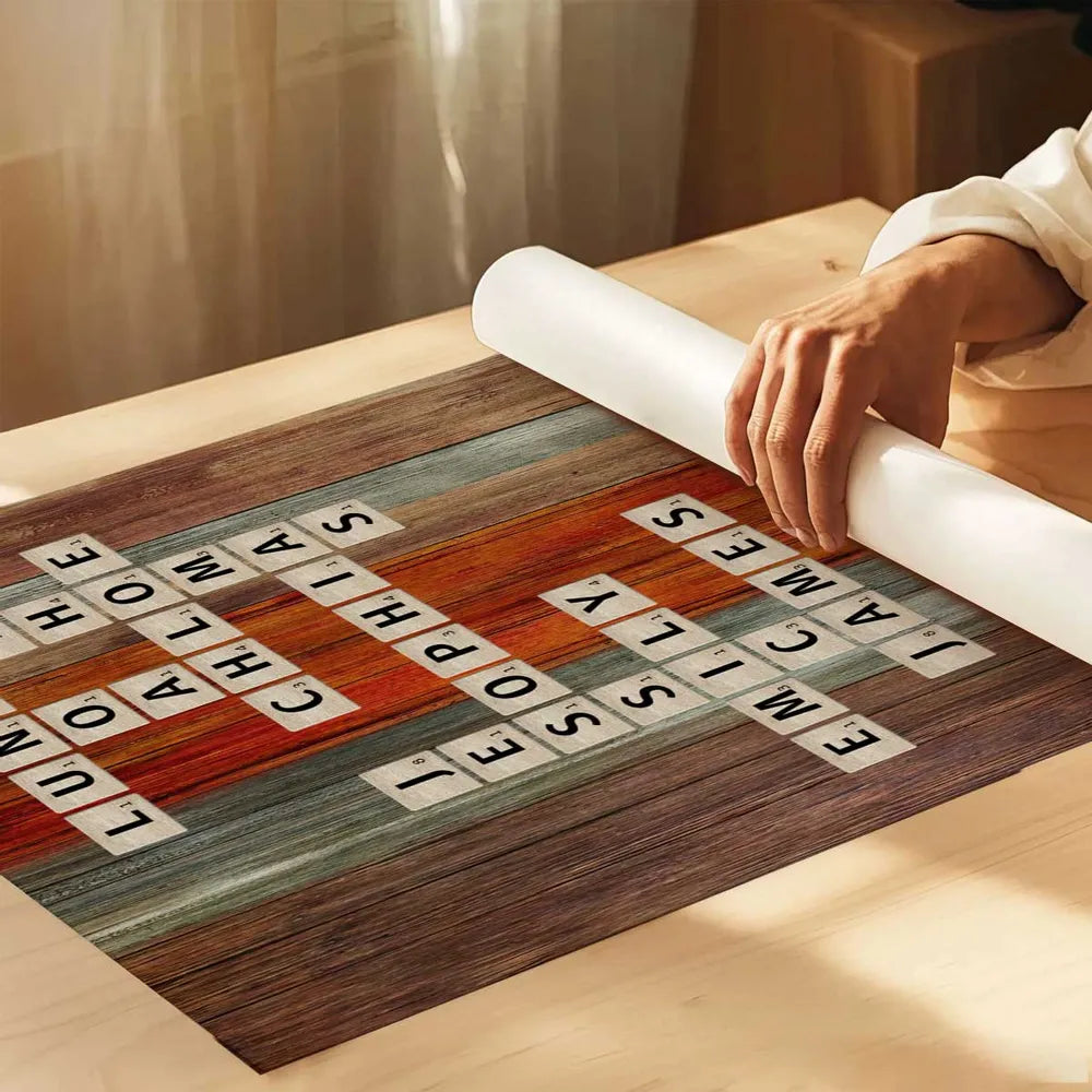 Personalized Family Name Poster Crossword Wall Art – Rustic Colorful Wood Decor, Heartfelt Home Display, Unique Gift for Parents & Loved Ones
