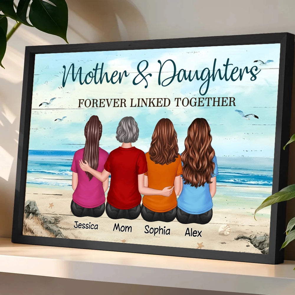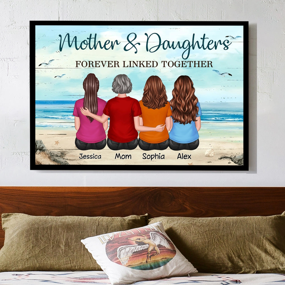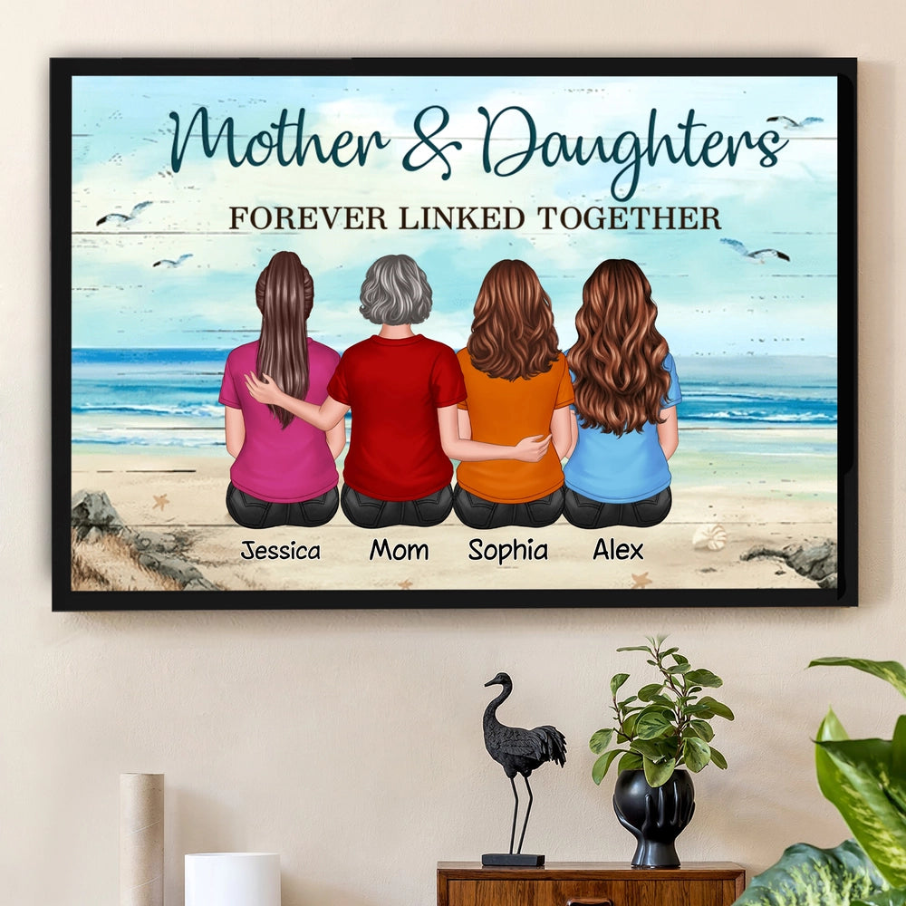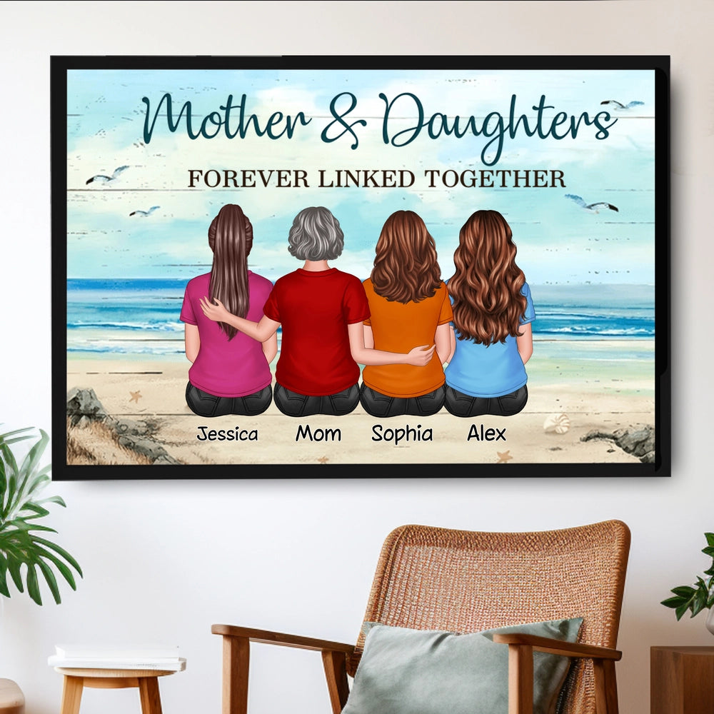 Custom Mother and Daughters Beach Poster, Back View Wall Art Keepsake, Sentimental Unique Gift for Moms on Any Occasion