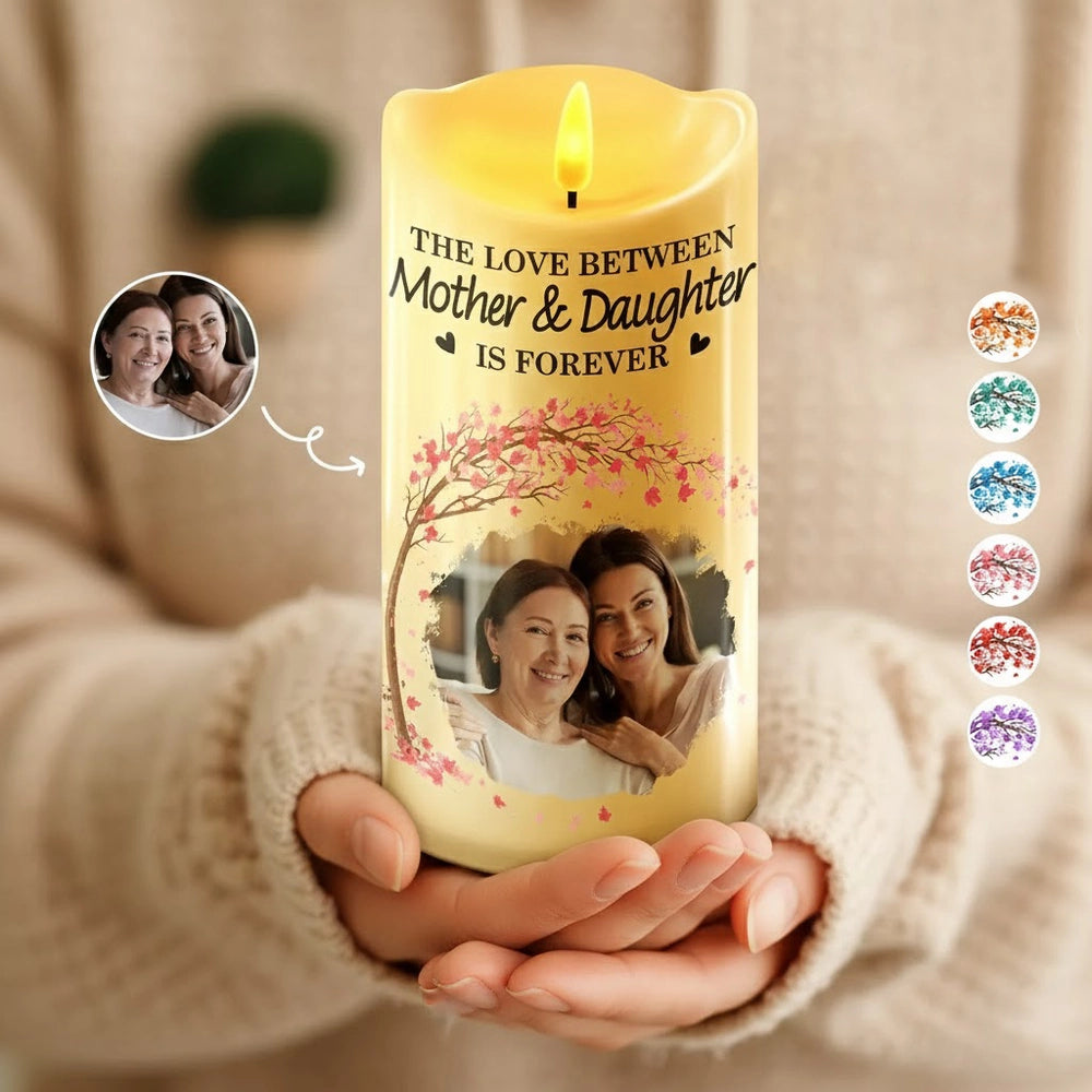 Create a personalized flameless LED candle that celebrates the unbreakable bond between mother and daughter. Add your favorite photo and custom message to turn a soft, warm glow into a unique keepsake gift.