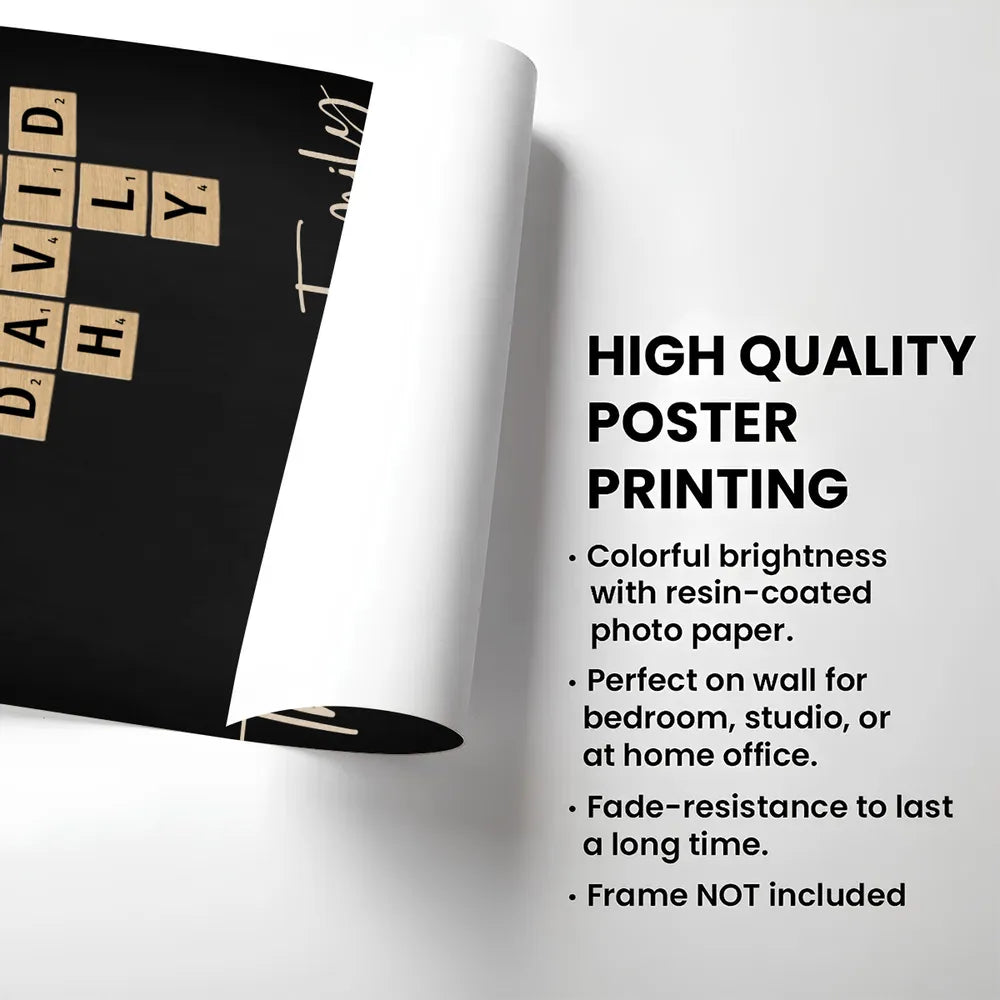 Personalized Family White Ceramic Mug with Wooden Tile Crossword Art - Unique Creative Gift for Home