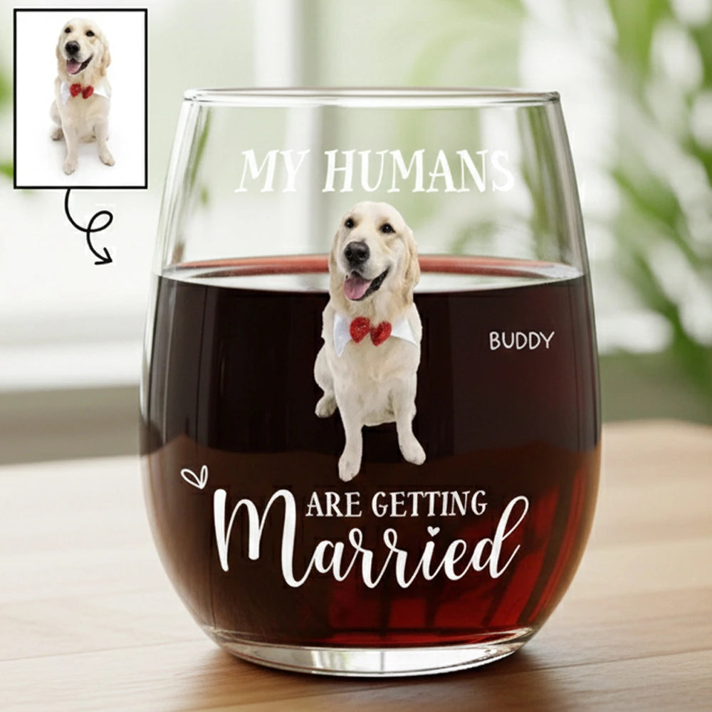 Personalized Dog Photo Wine Glass for Wedding Announcement – My Humans Are Getting Married, Unique Engagement Gift for Pet Lovers