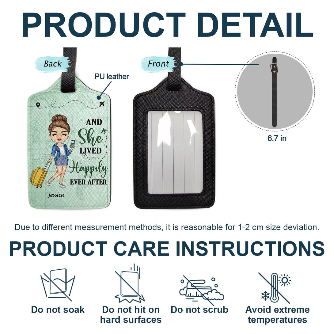 Personalized Leather Luggage Tag for Girls Who Love Traveling – Cute Cartoon Traveler, Easy to Spot, Unique Travel Gift