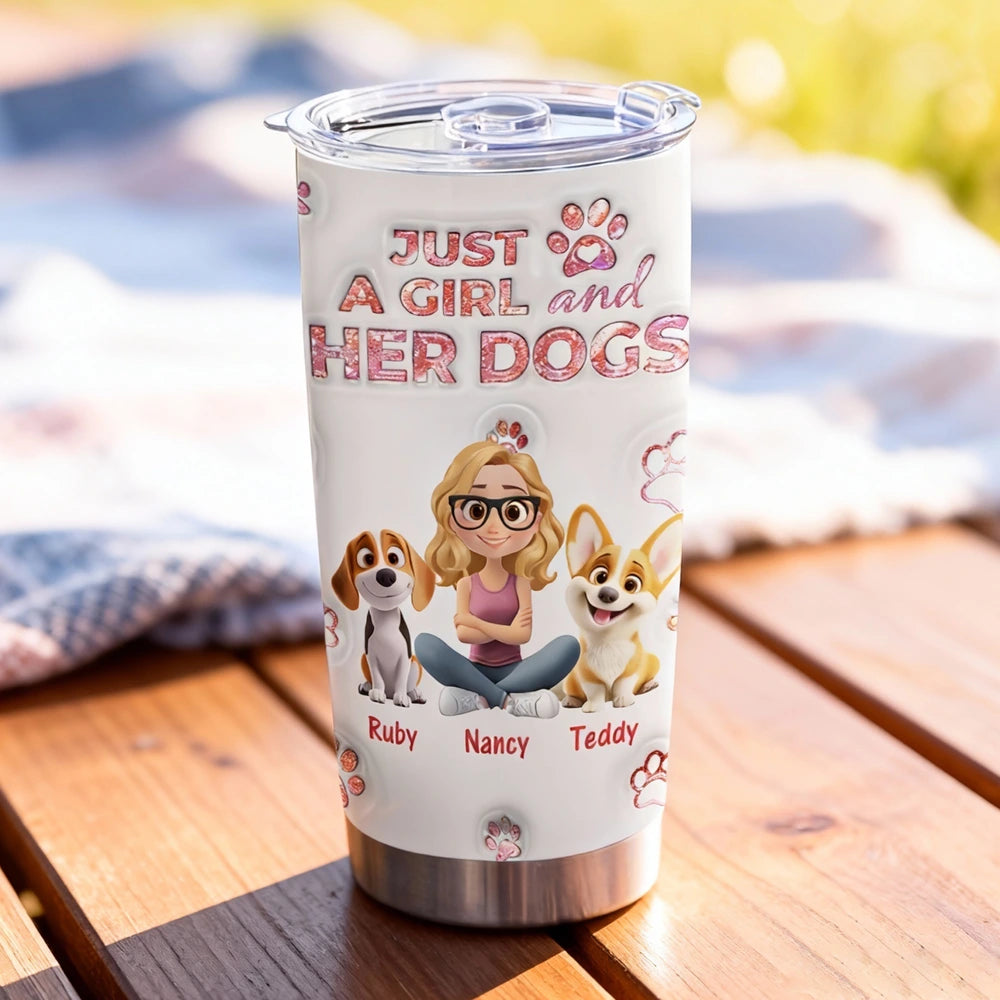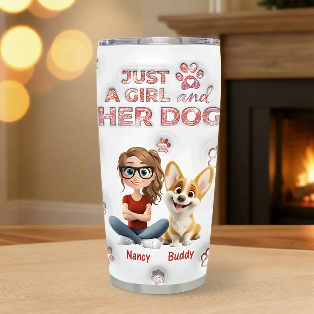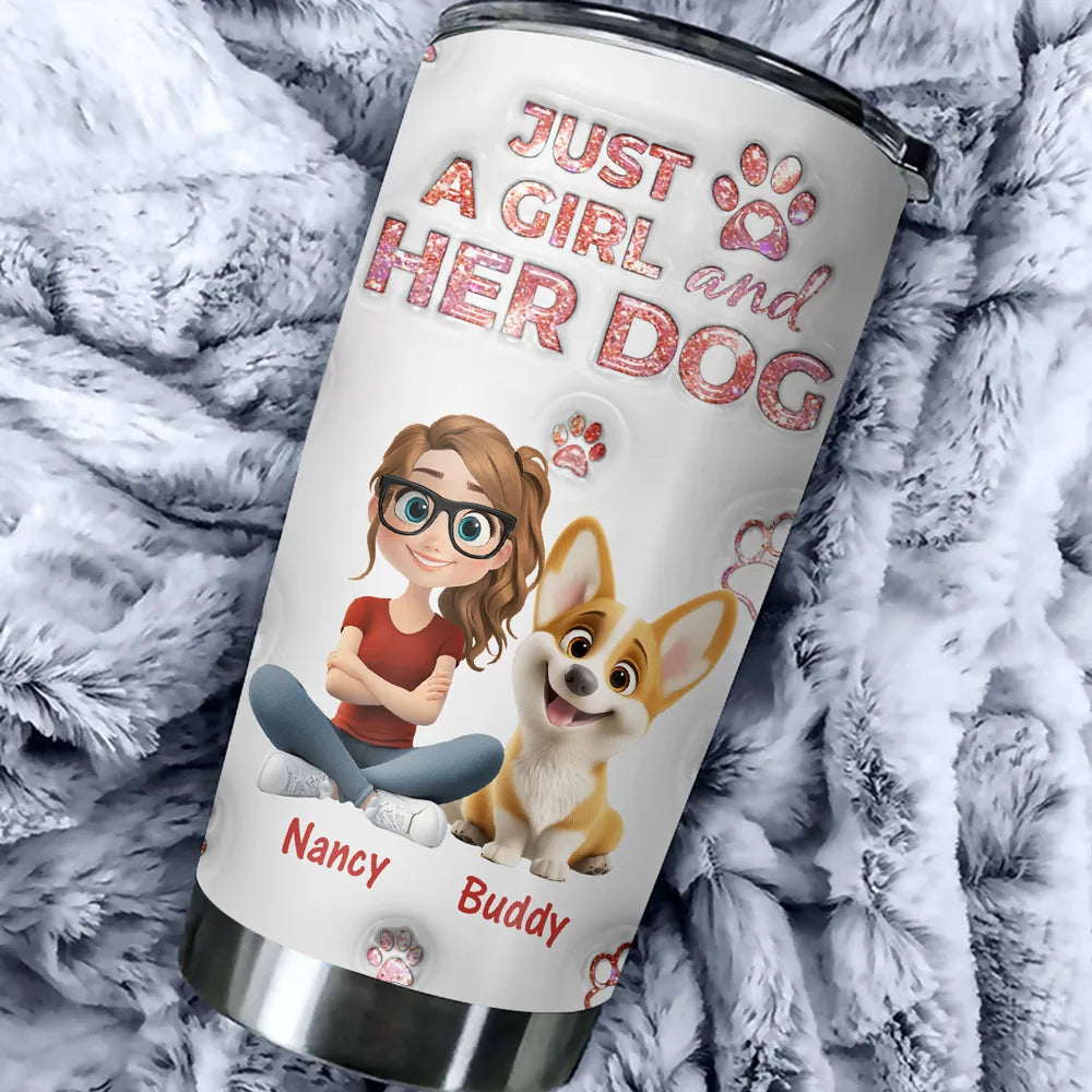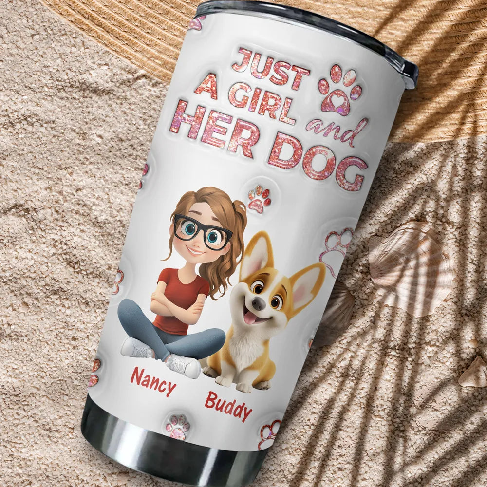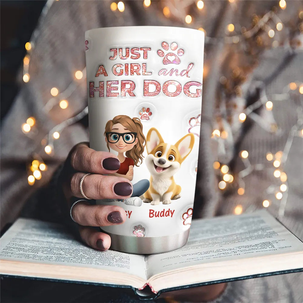 Personalized Insulated Travel Tumbler for Dog Moms, Just a Girl and Her Dog Art, Cute Unique Gift for Pet Lovers
