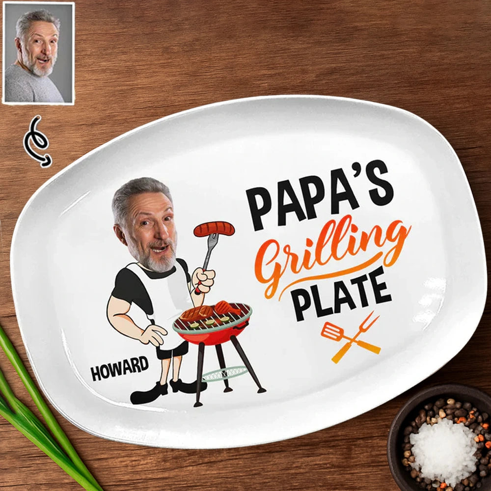 Personalized Grilling Plate for Grill Master Dad – Fun Cartoon BBQ Design, Unique Backyard Gift for Papa
