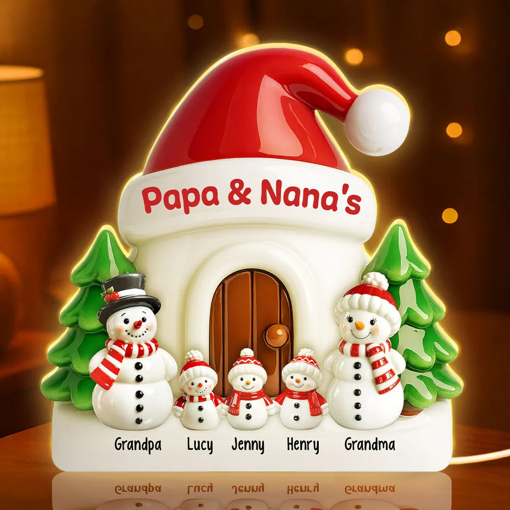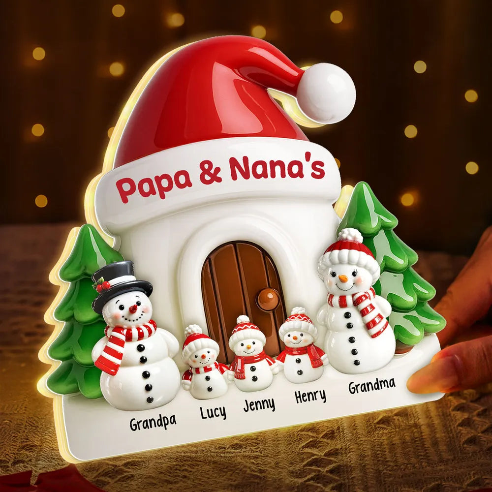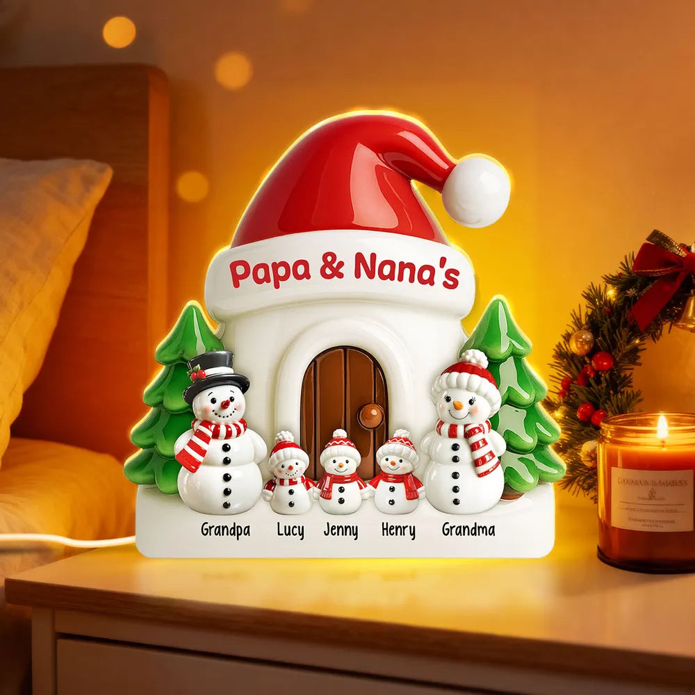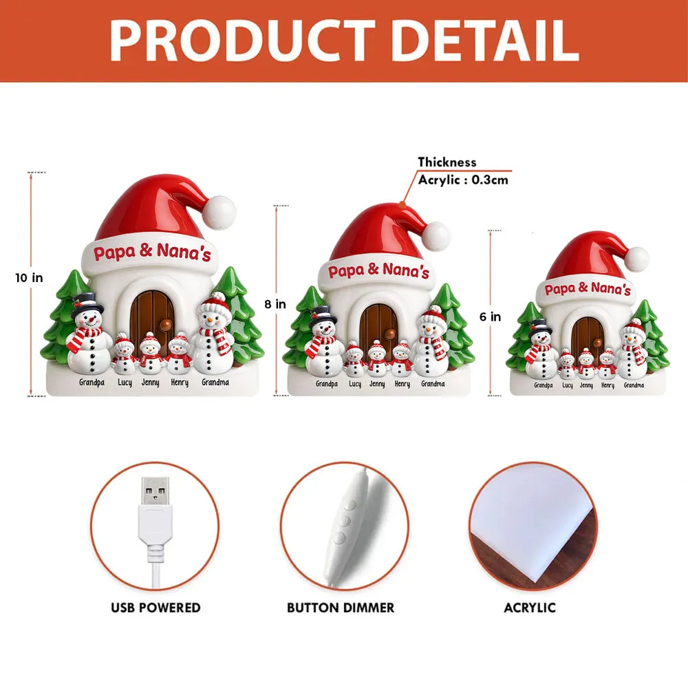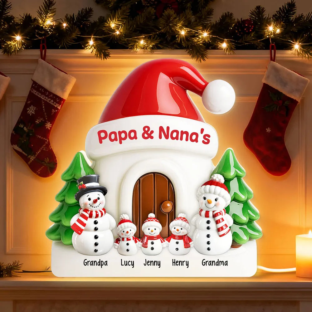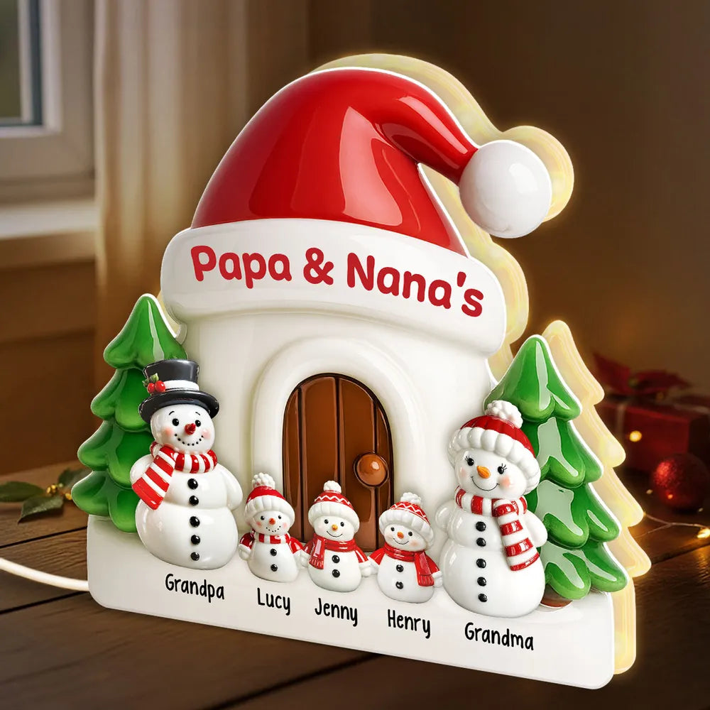 Personalized Acrylic Light Box with Snowman Family House, Soft Warm Glow Christmas Gift for Grandparents, Unique Keepsake Décor