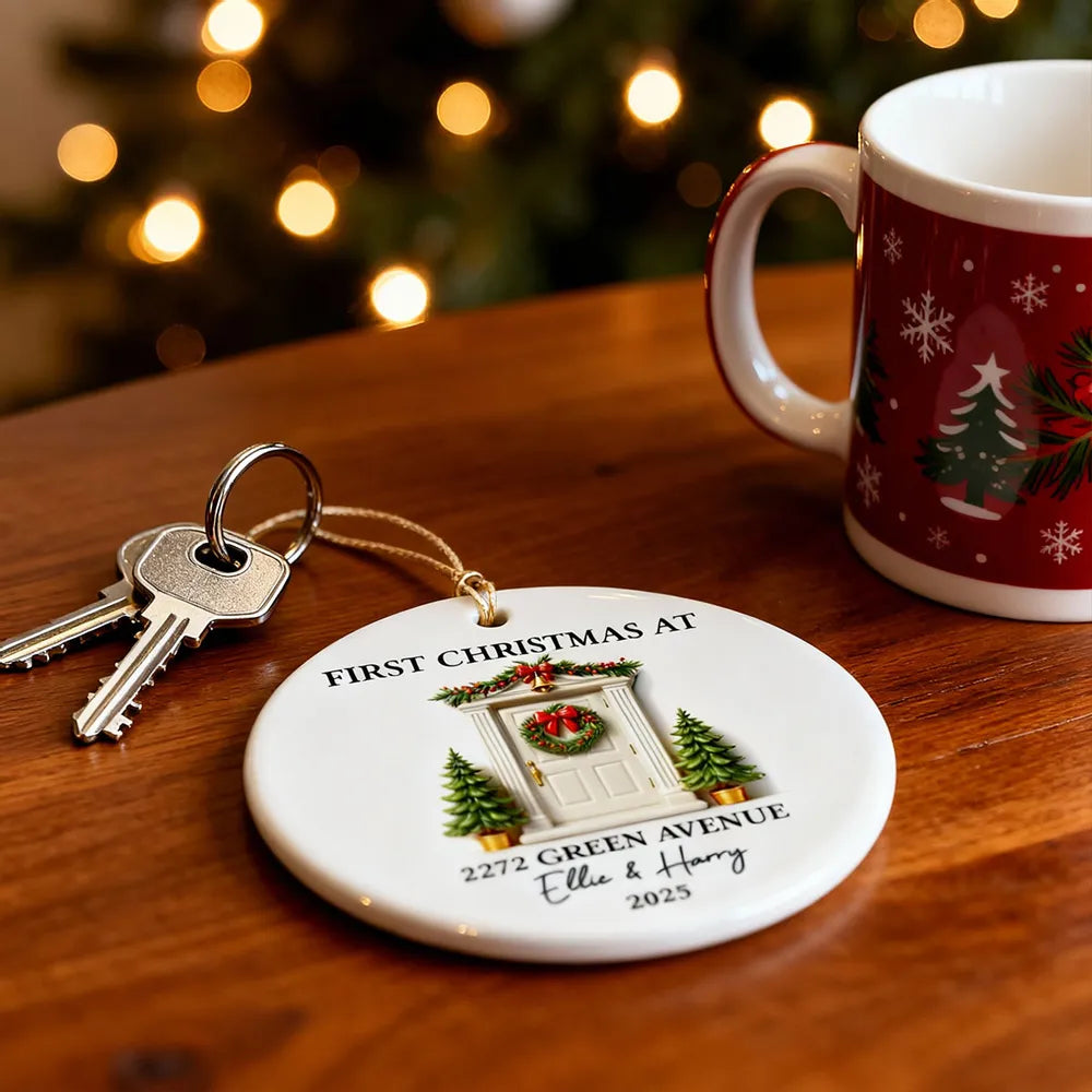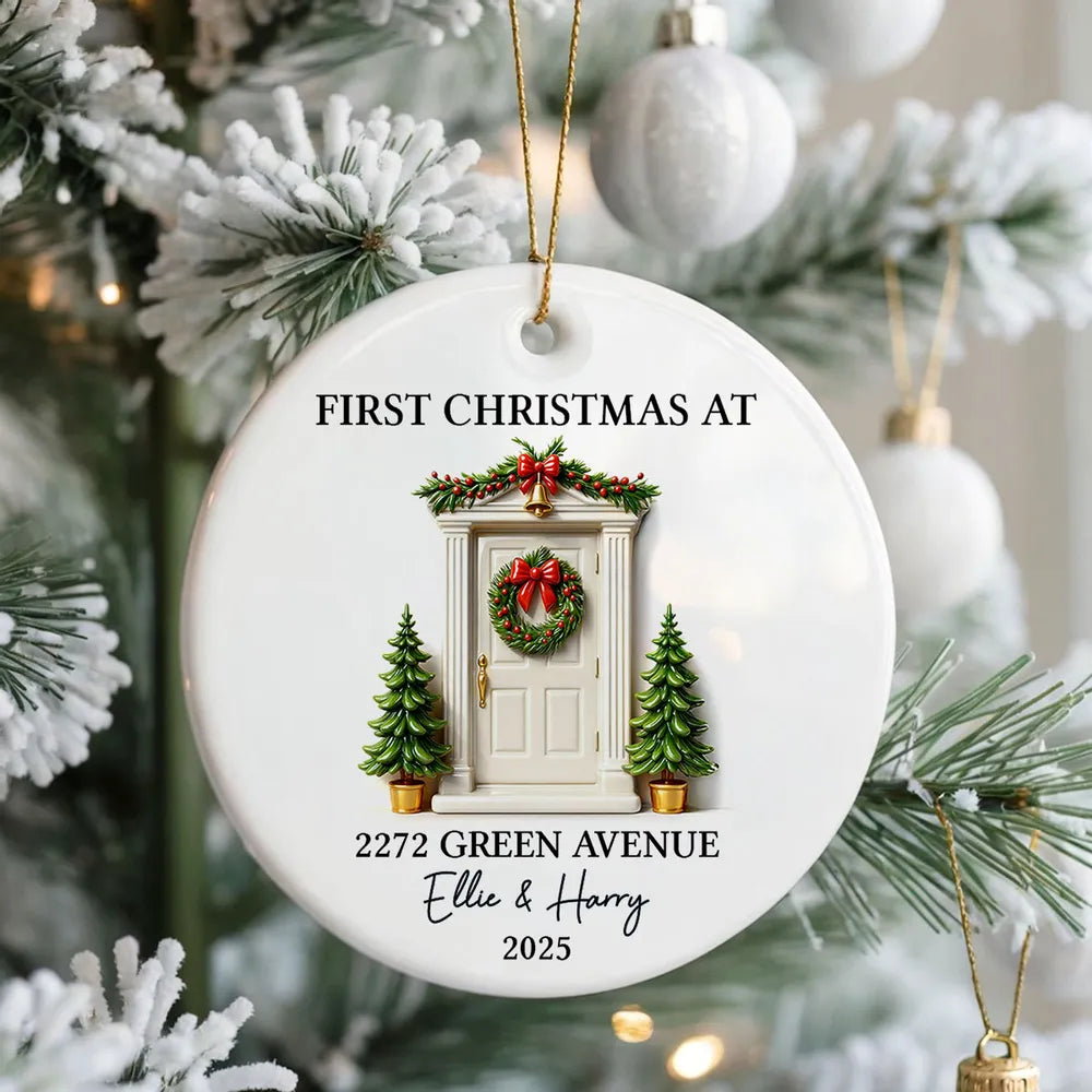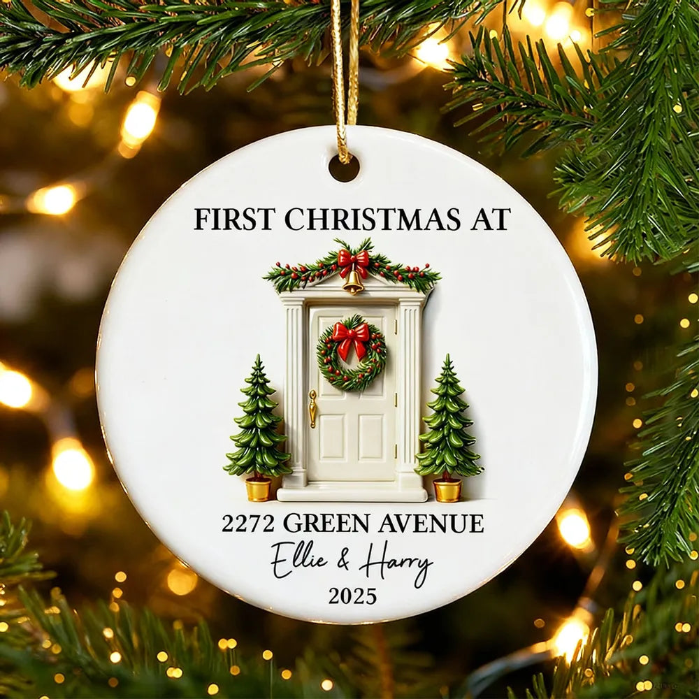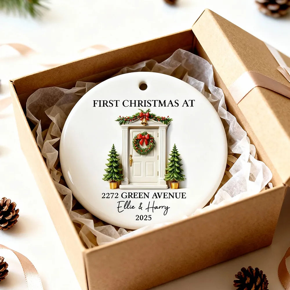 Personalized Ceramic Ornament First Christmas At New Home Door Design Unique Holiday Gift For Couples