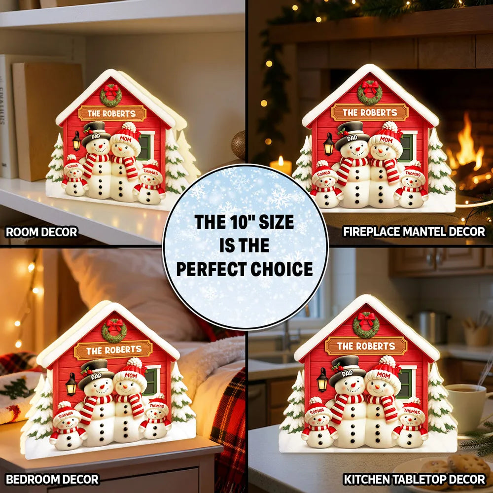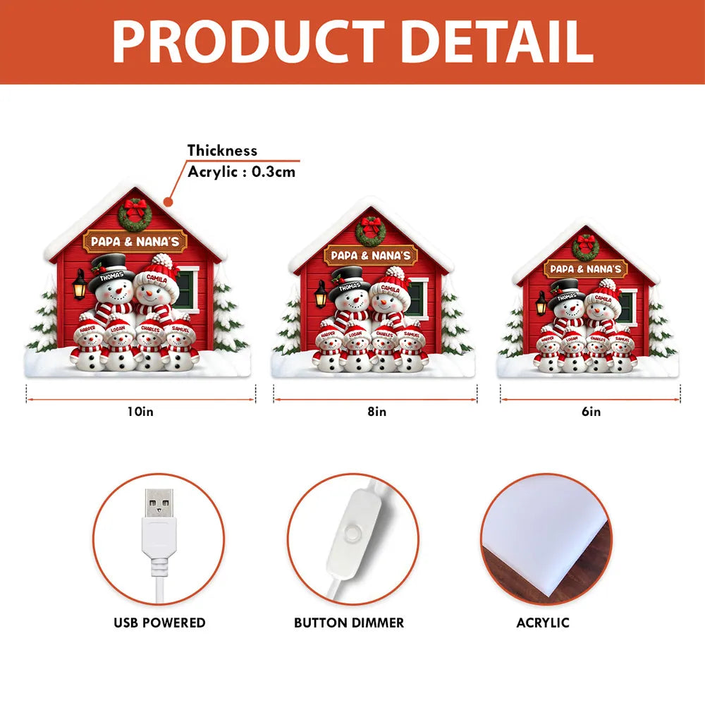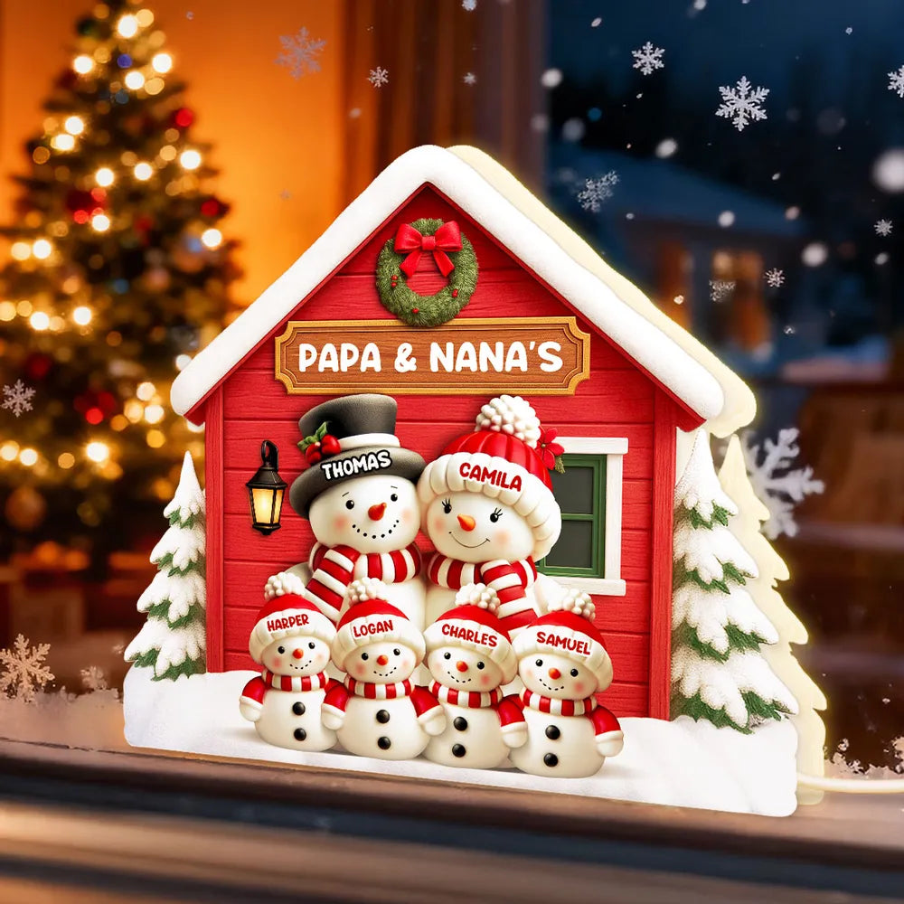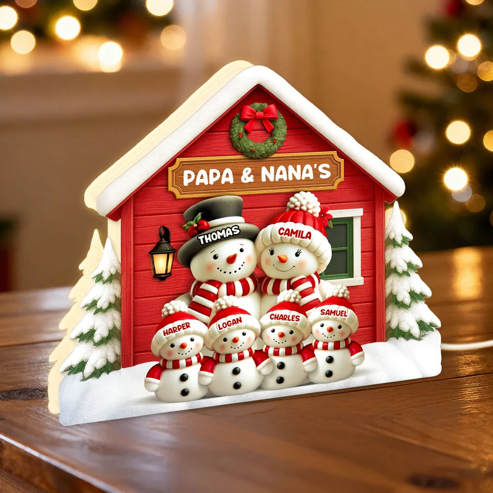 Personalized Acrylic Light Box with Snowman Family House, Cozy Christmas Décor and Unique Holiday Gift for Parents Grandparents