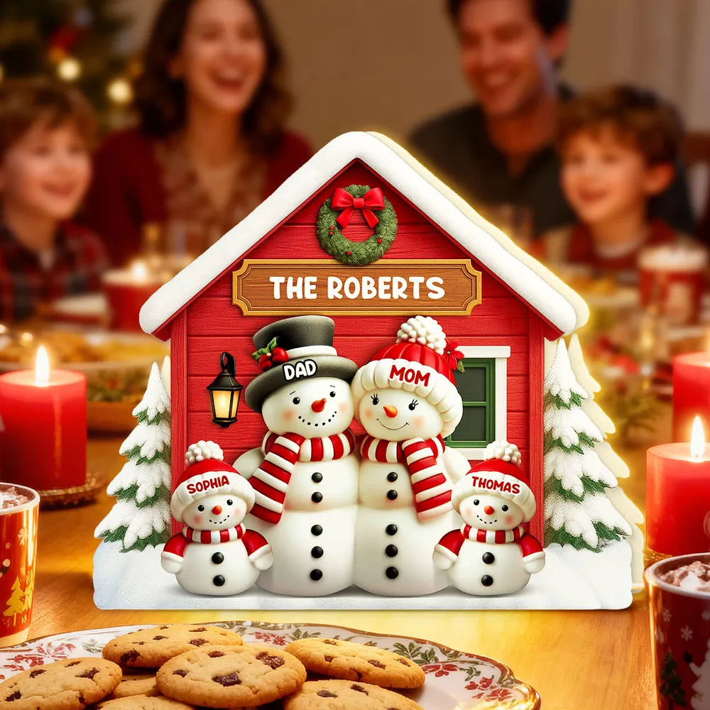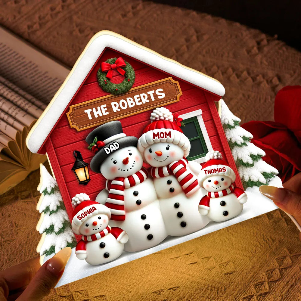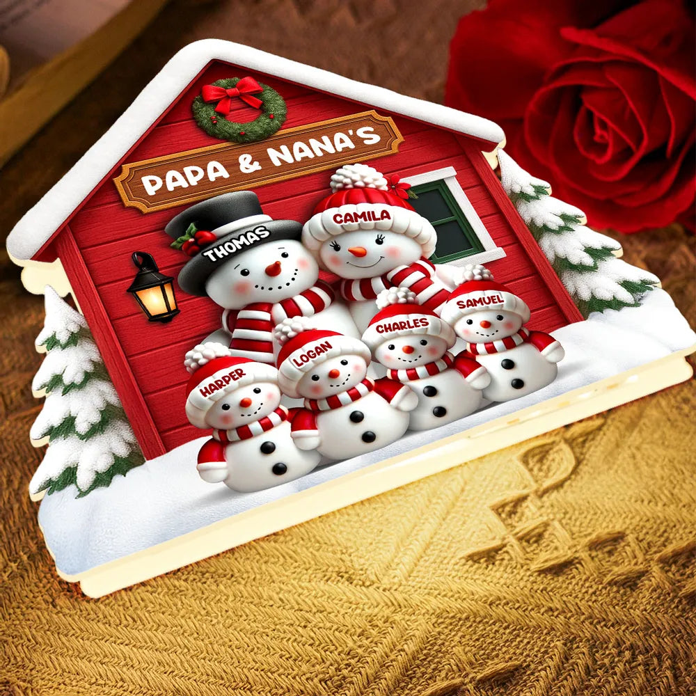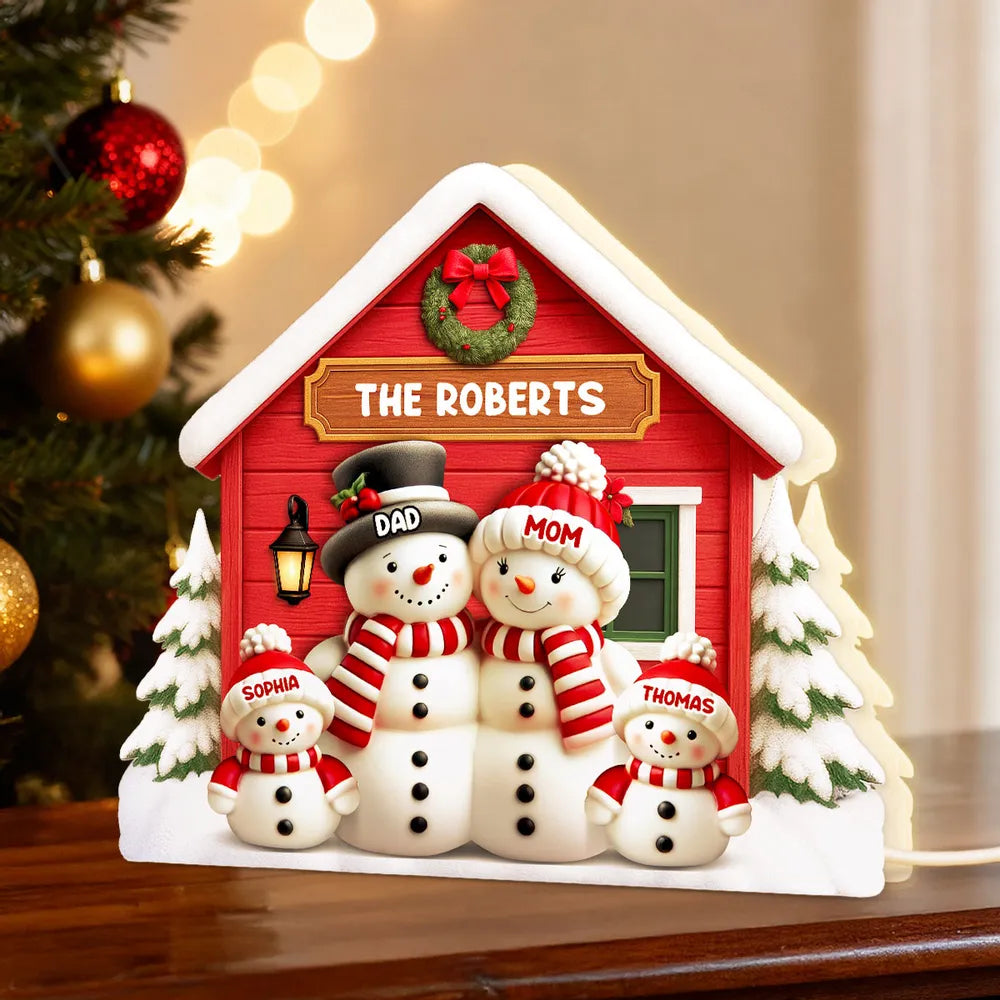 Personalized Acrylic Light Box with Snowman Family House, Cozy Christmas Décor and Unique Holiday Gift for Parents Grandparents