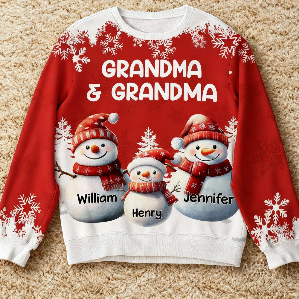 Personalized Printed Sweatshirt for Grandma and Grandpa with Cute Snowman Family Art, Cozy Christmas Keepsake & Unique Grandparent Gift
