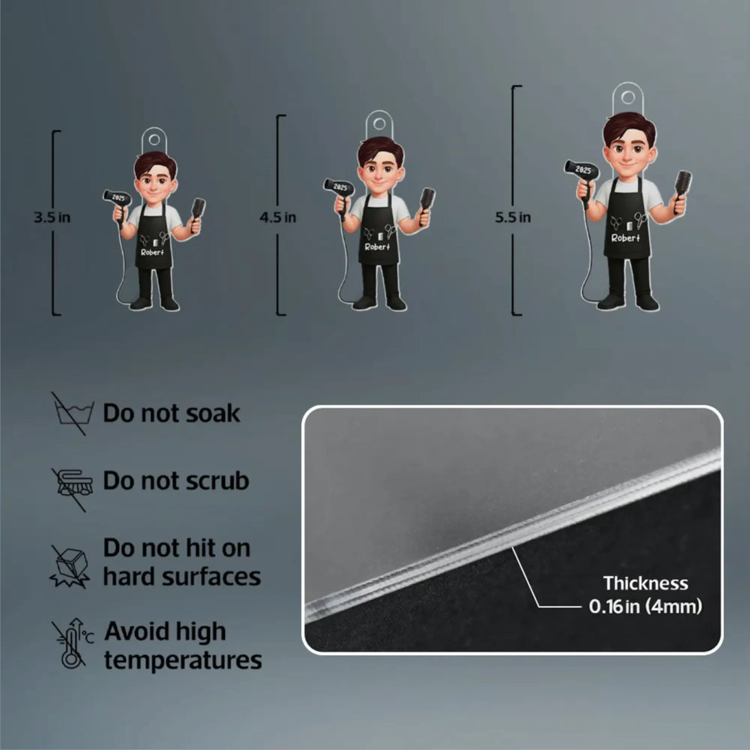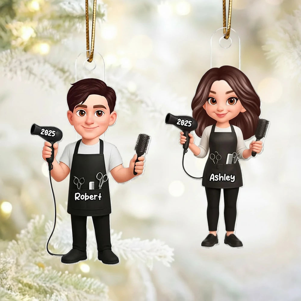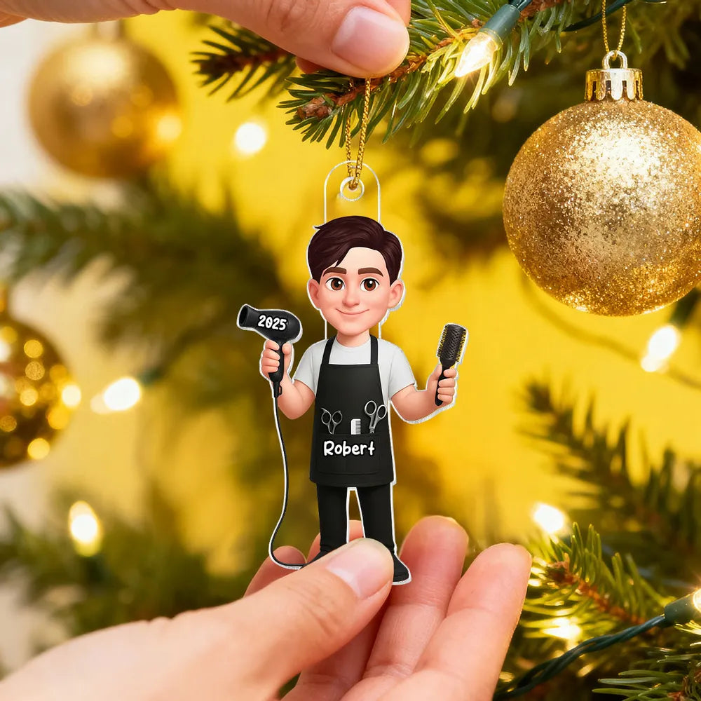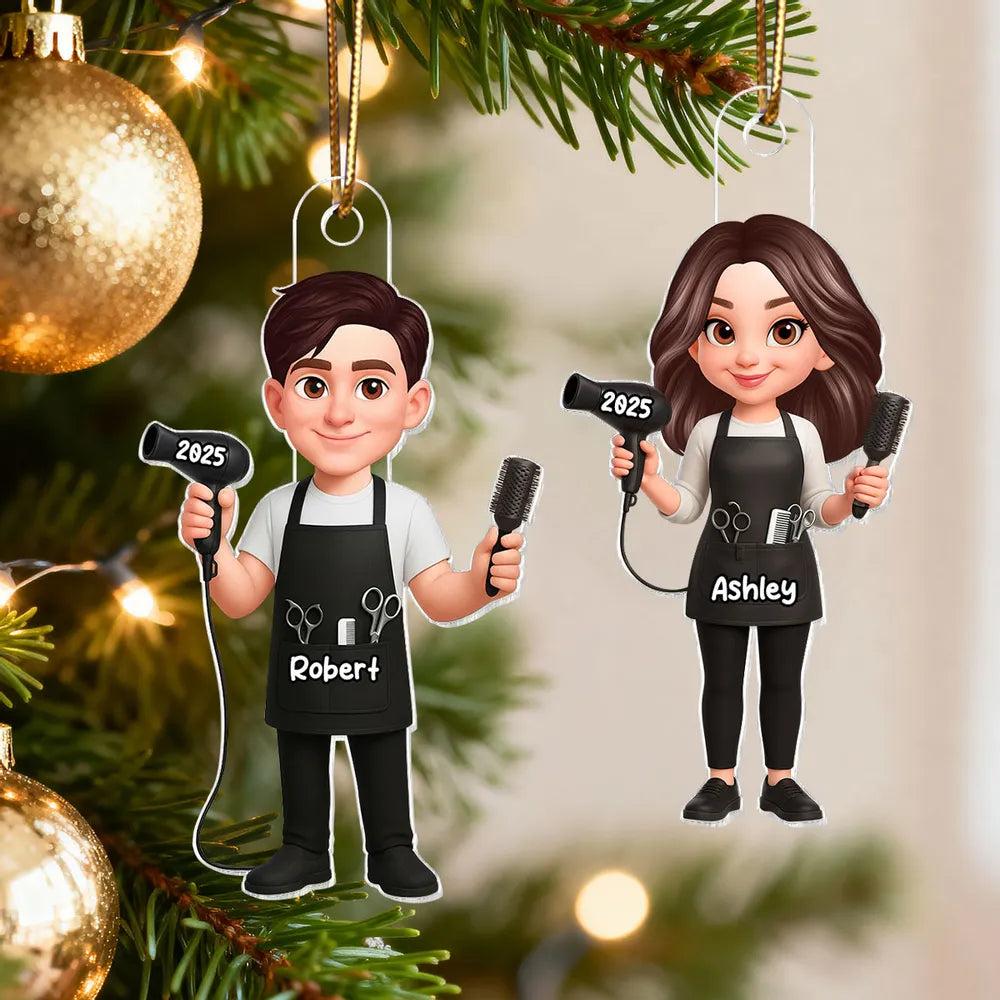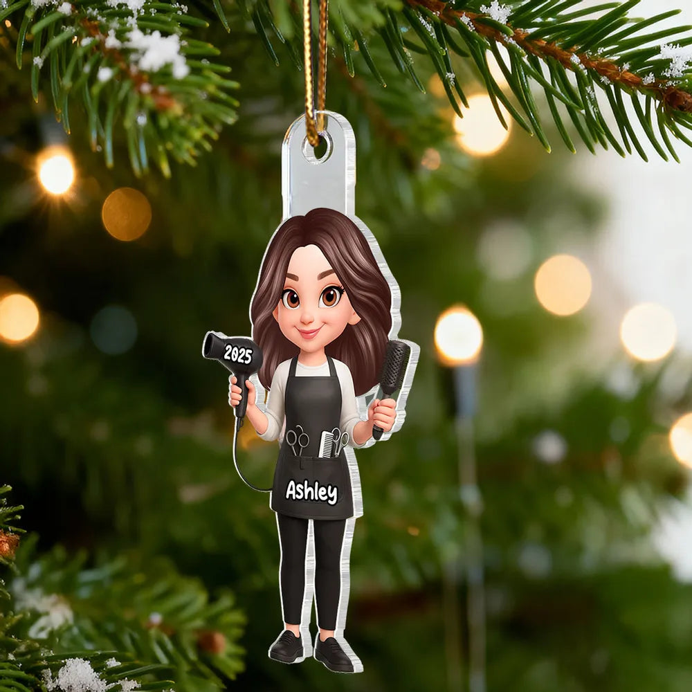 This acrylic ornament turns a hairdresser into an adorable cartoon character, complete with salon tools and their own custom details. It feels like a tiny version of them hanging on the tree, making it a fun, one-of-a-kind gift they will actually want to show off.
