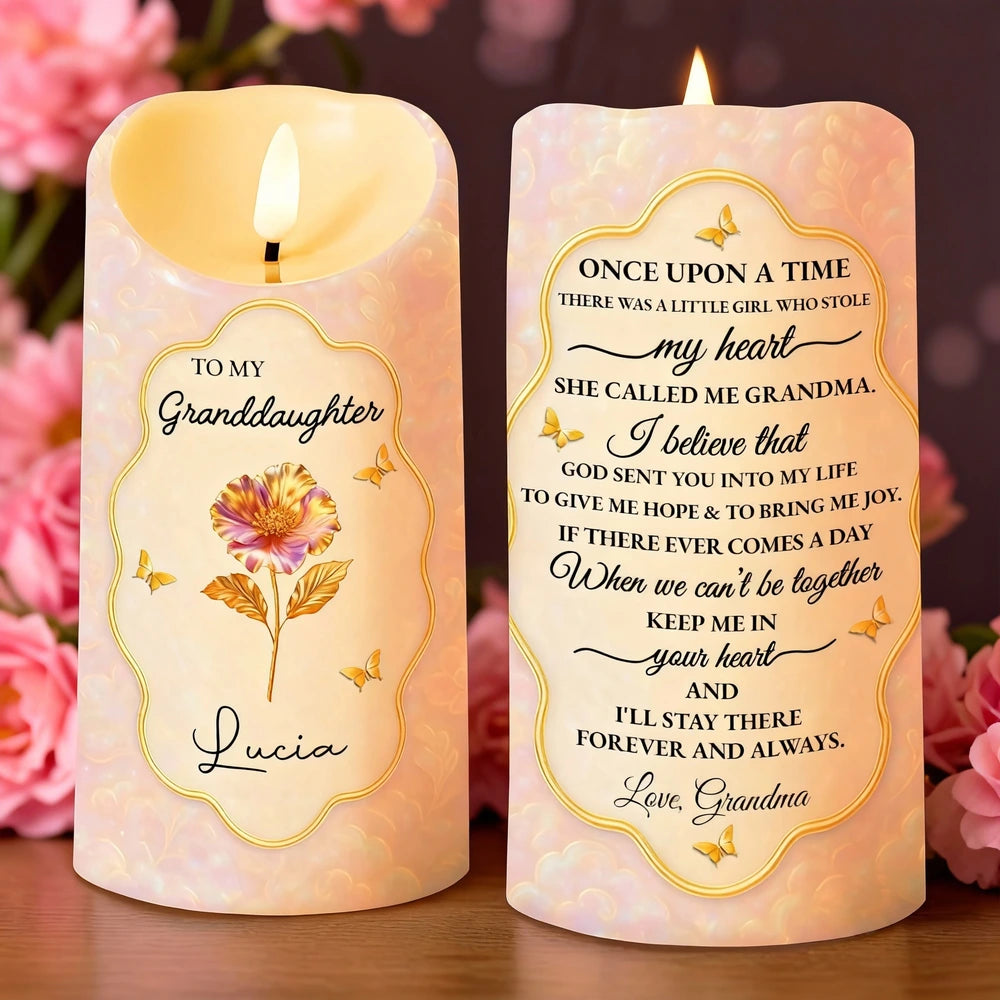 Custom Flameless LED Candle with Once Upon a Time Grandma Quote, Gentle Light Granddaughter Gift for Emotional Comfort