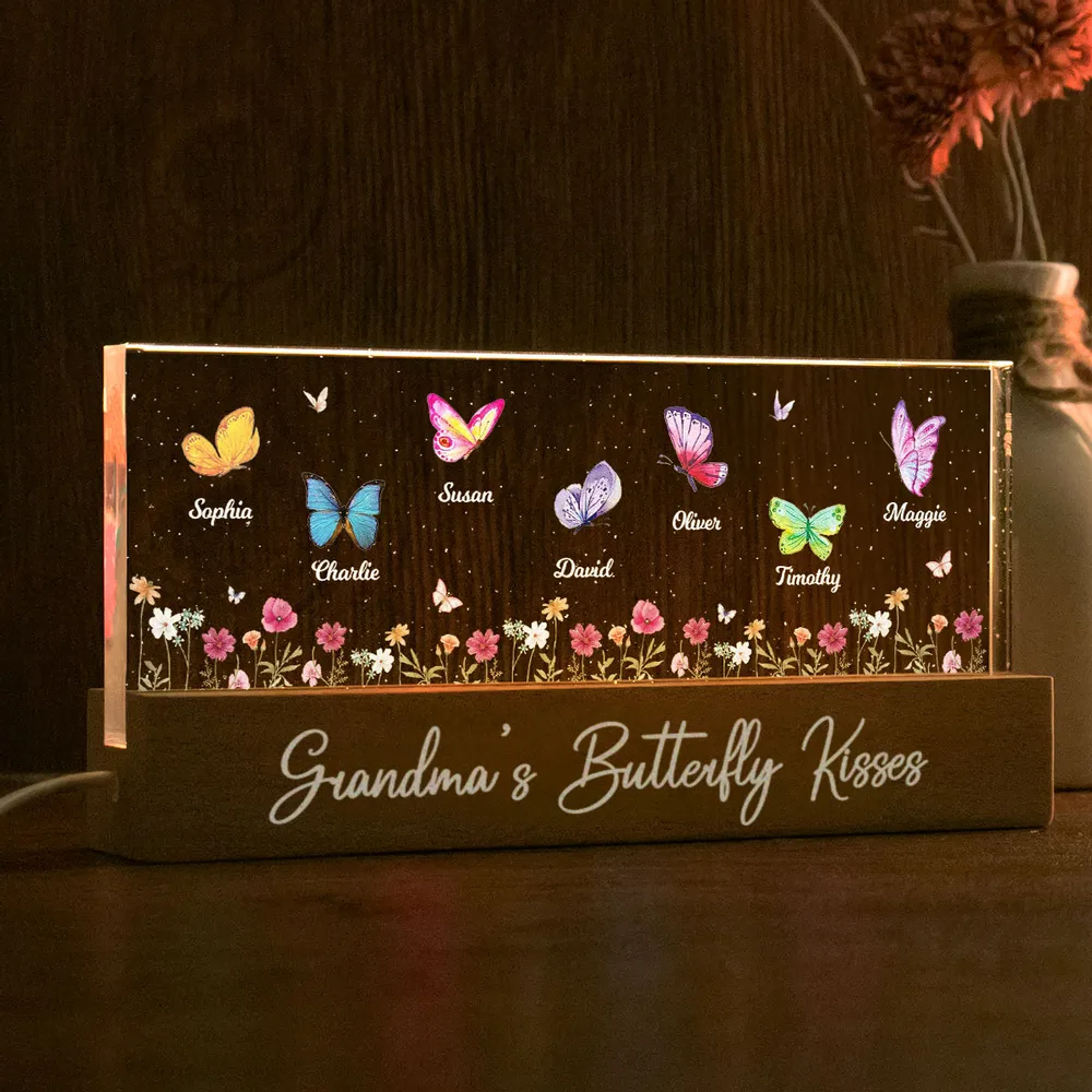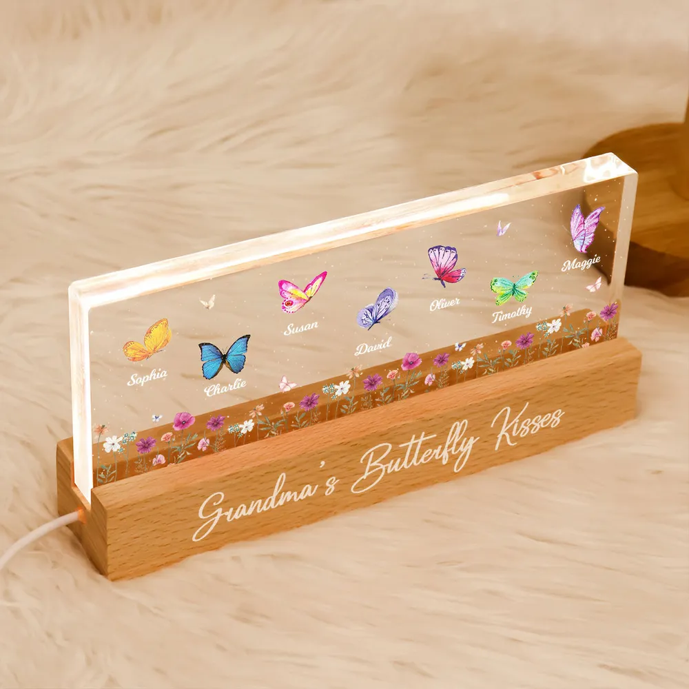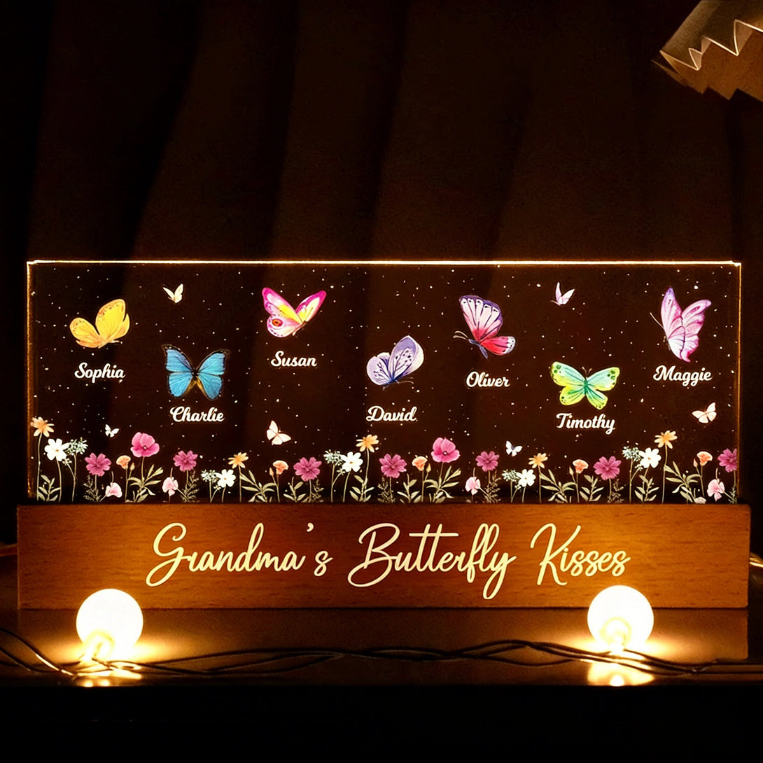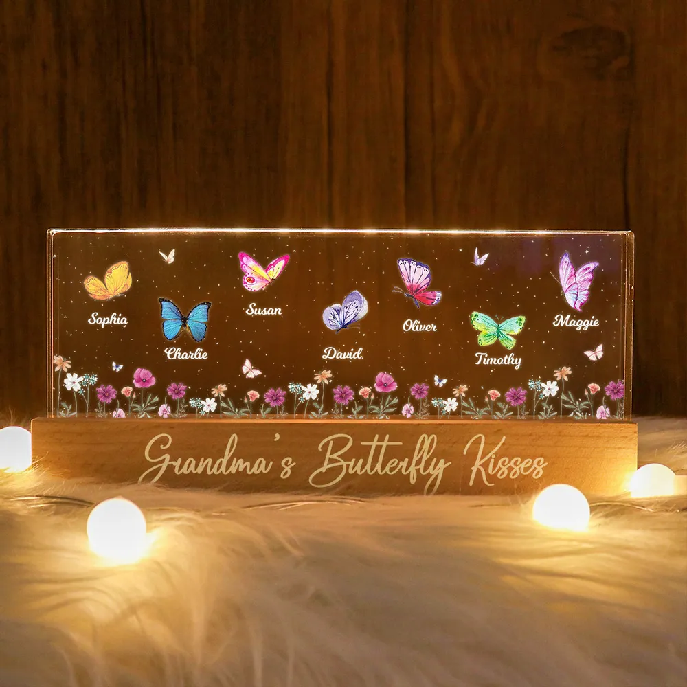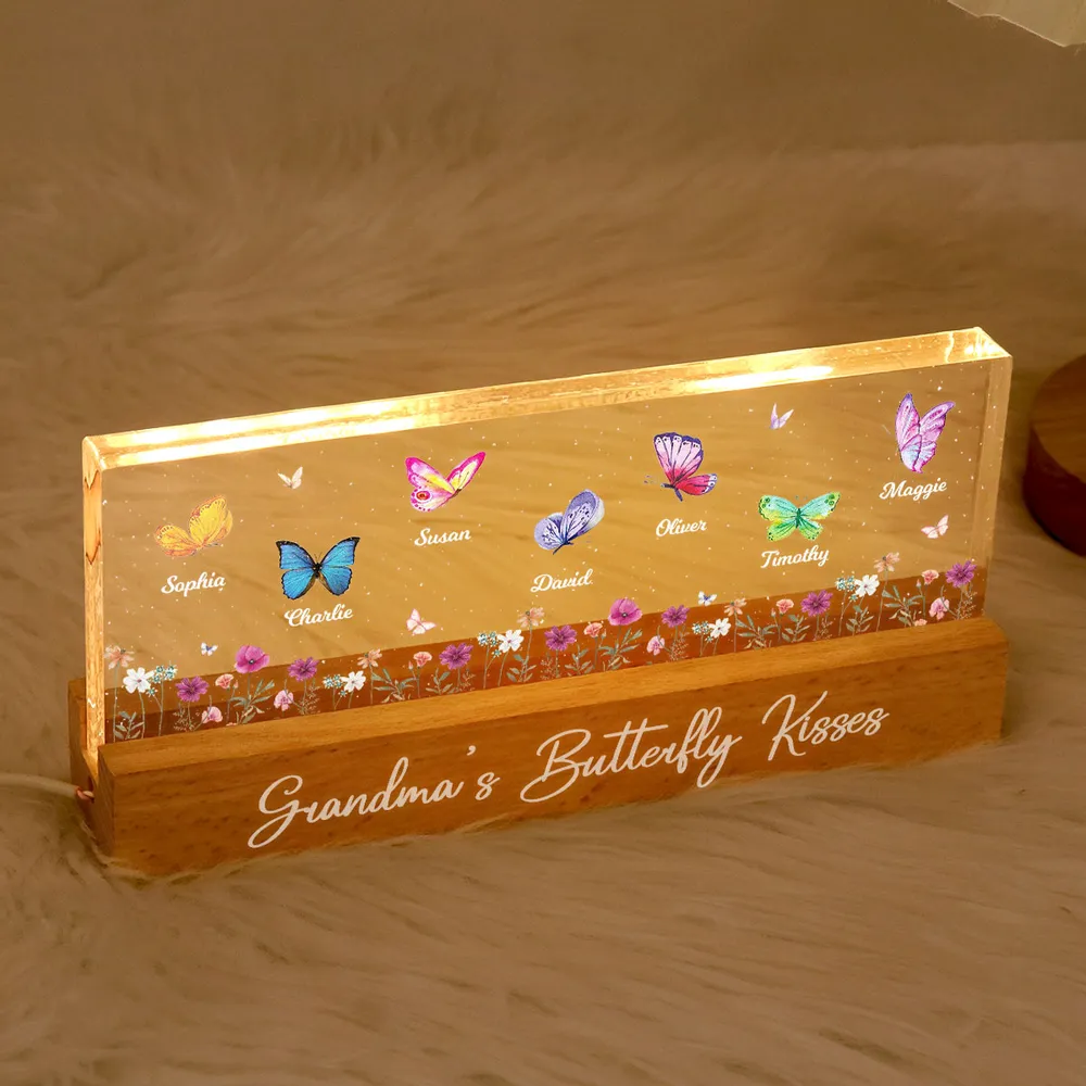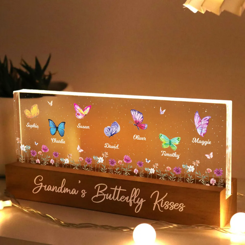 Personalized Block LED Light Plaque for Grandma with Butterflies & Names, Warm Night Light Keepsake Gift
