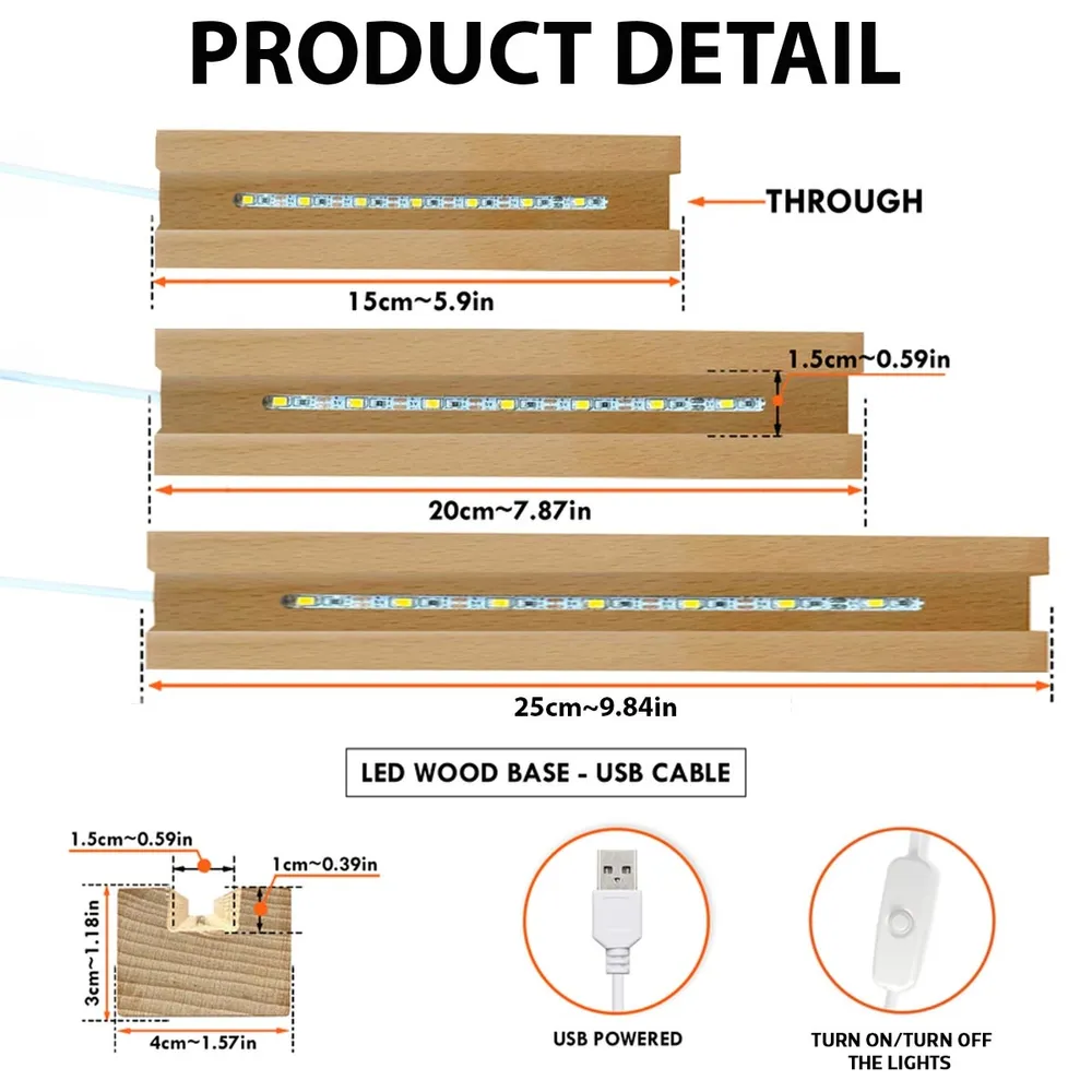 - Made of thick transparent acrylic with a smooth wooden base. The LED light provides soft, even illumination with low power use. USB-powered for easy connection to chargers or computers. Simple design, fine craftsmanship, ideal for home décor or ambient lighting.