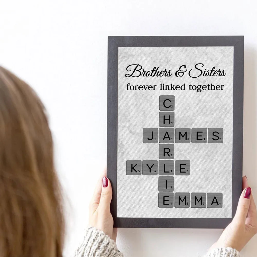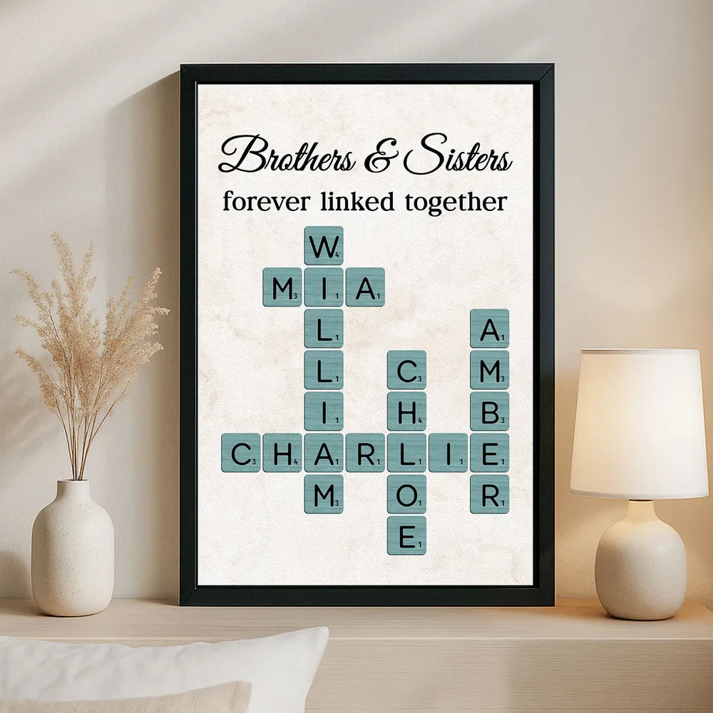 Personalized Poster with Brothers & Sisters Linked Crossword Art, Unique Gift for Siblings and Family