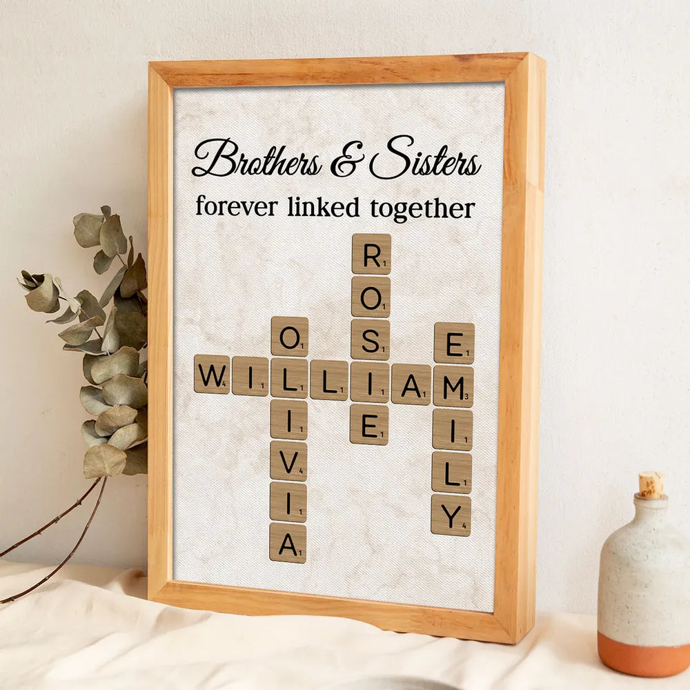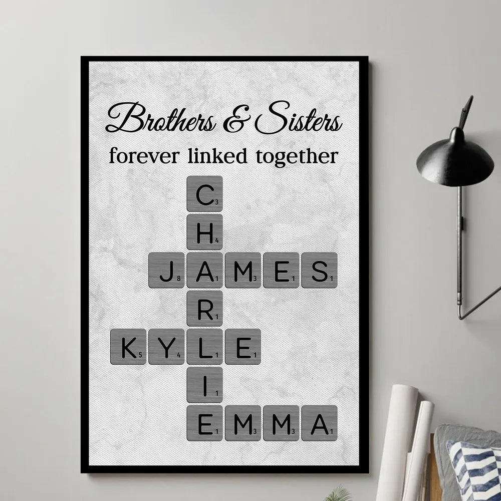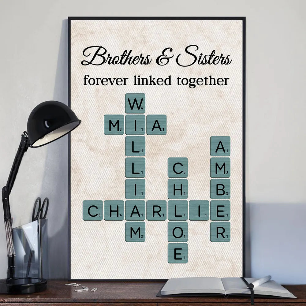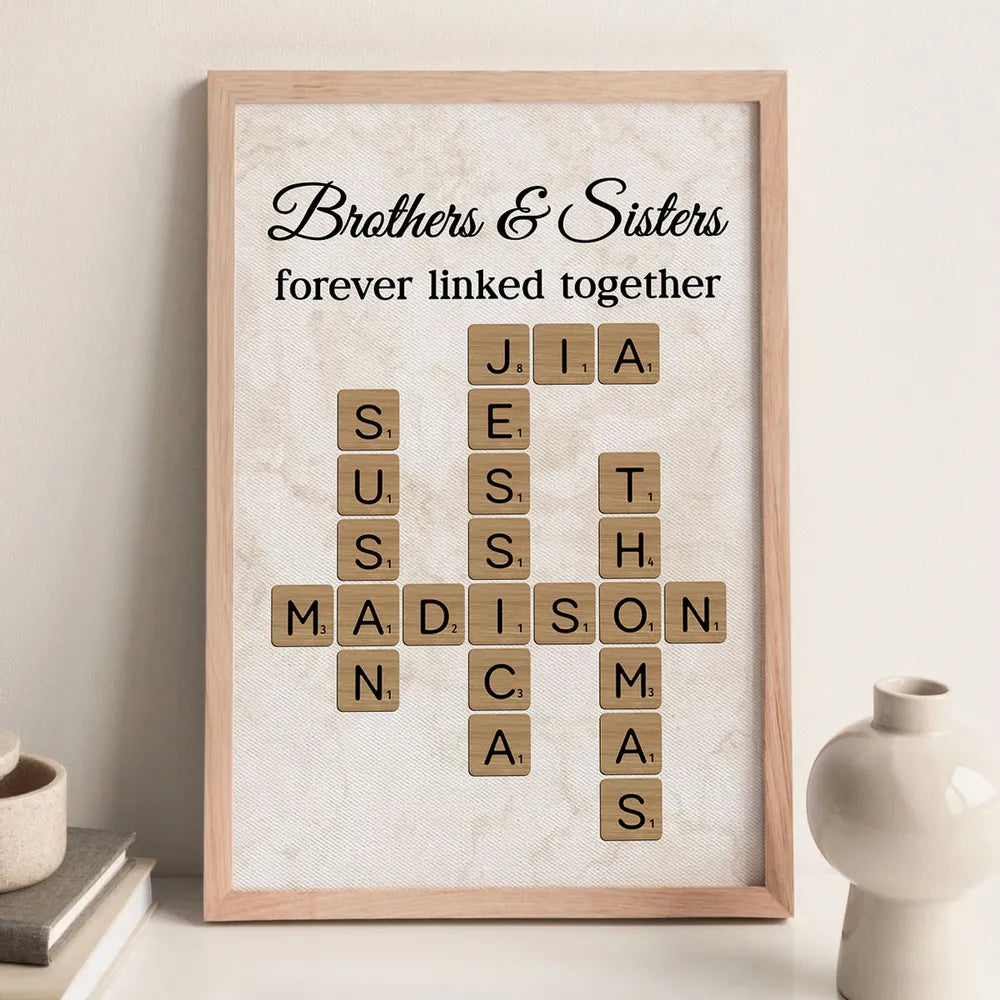 This personalized poster turns your family names into a crossword-style Brothers & Sisters design, so every print feels like it was created just for your crew. It is a thoughtful, creative gift that celebrates how your siblings are forever linked together.