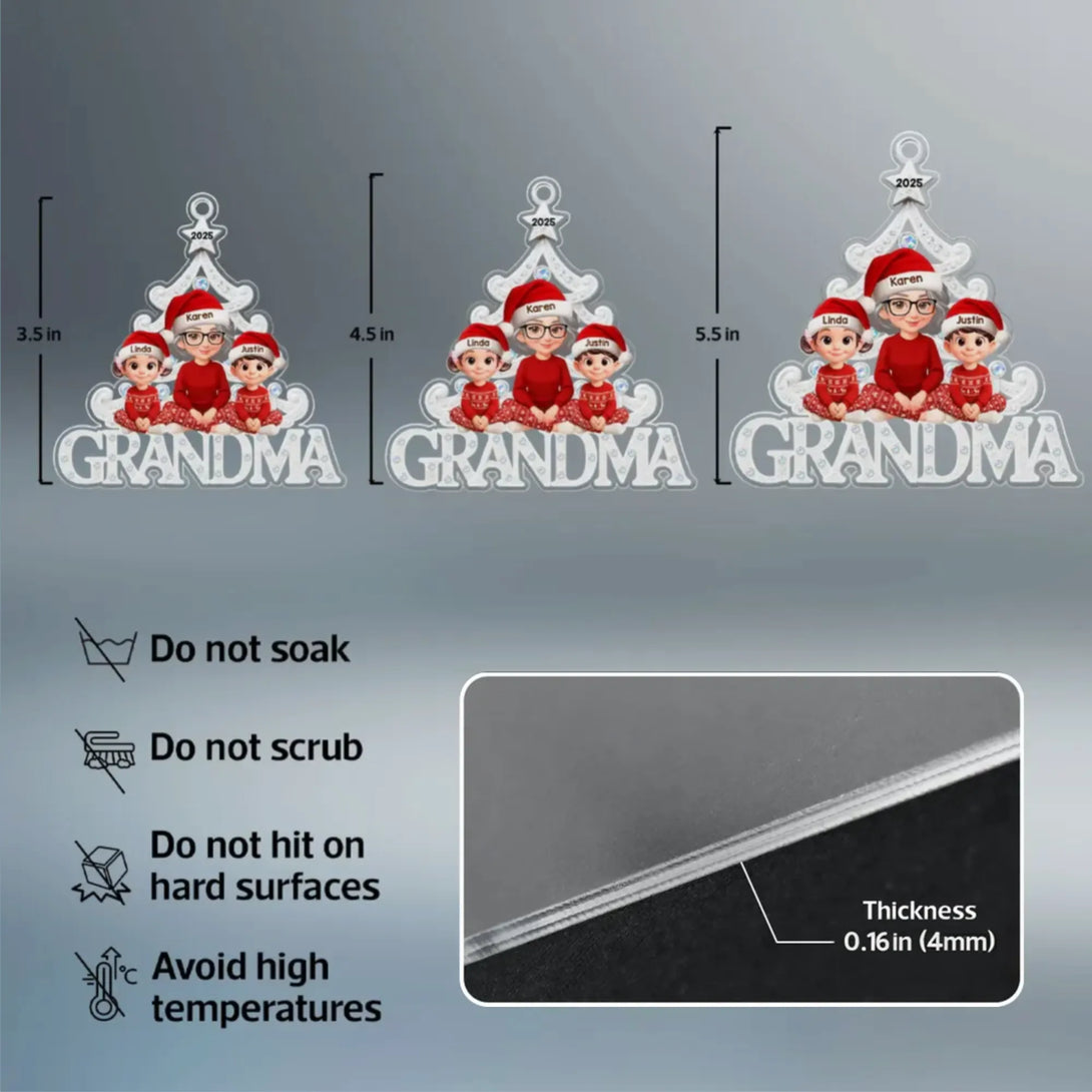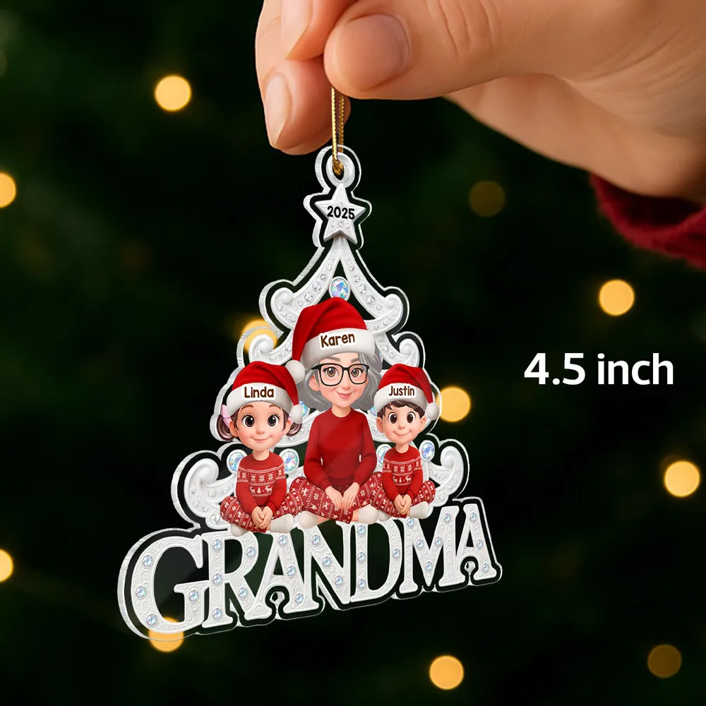 This personalized acrylic ornament lets you turn Grandma and her grandkids into a cute Christmas tree scene. You can customize the characters so it feels like it was made just for your family, making it a thoughtful keepsake she will look forward to hanging every year.