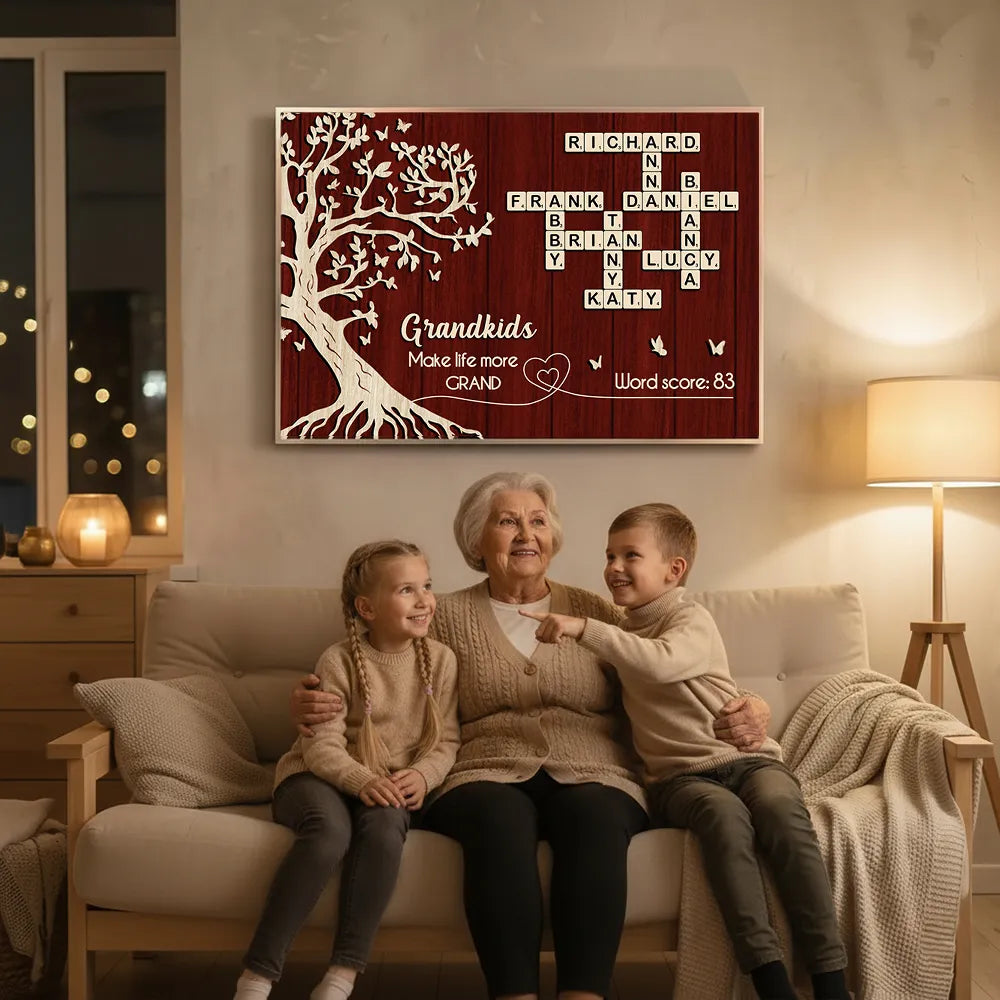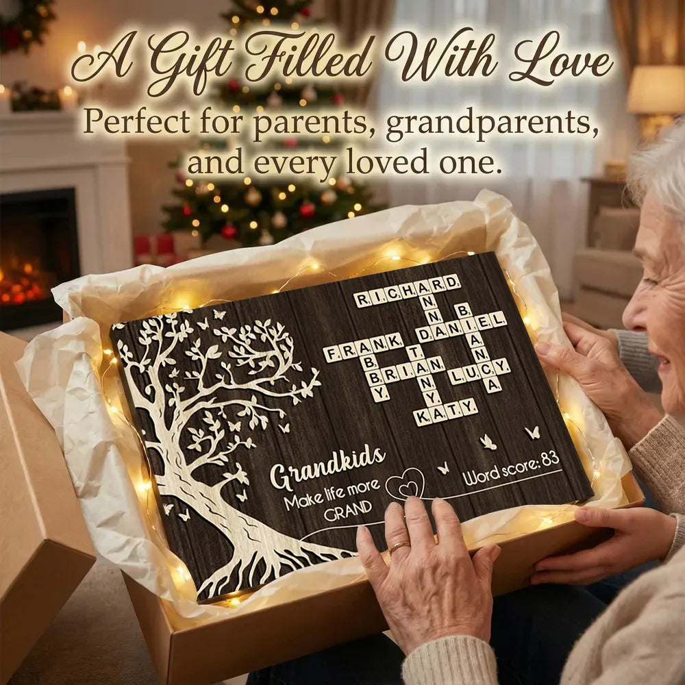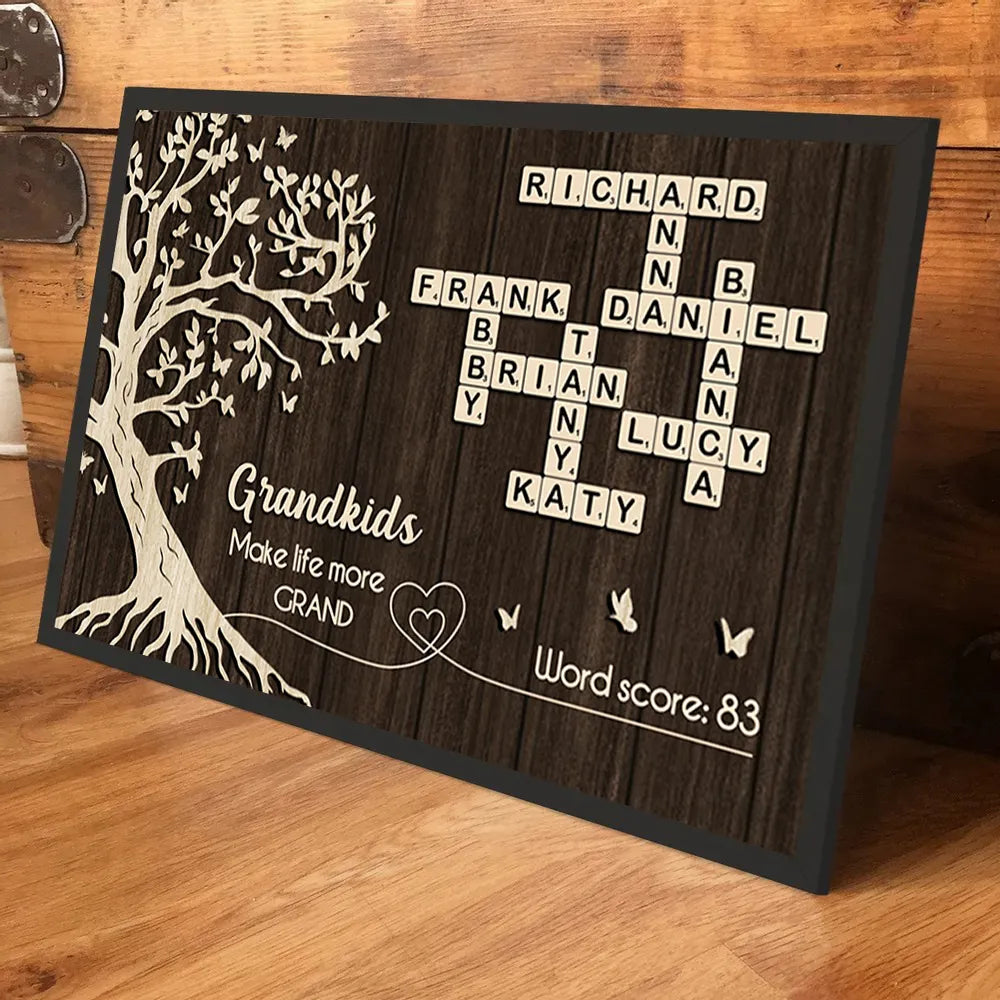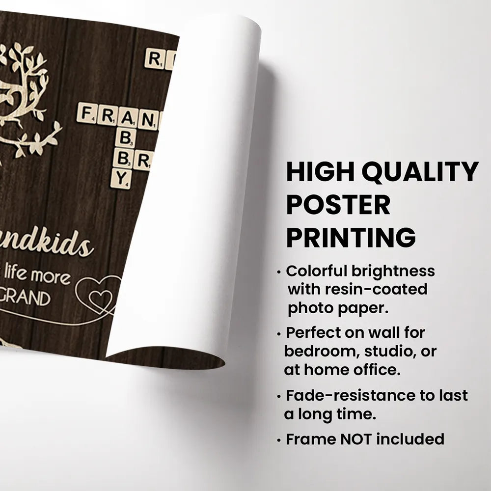 Personalized Grandkids Poster with Family Tree & Crossword Names – Custom Wall Art Gift for Grandma & Grandpa, Unique Home Decor Keepsake