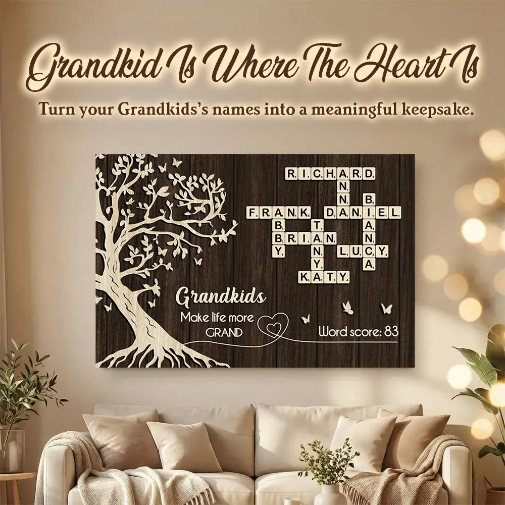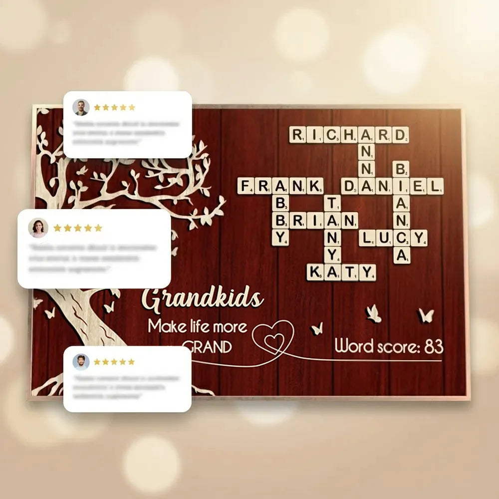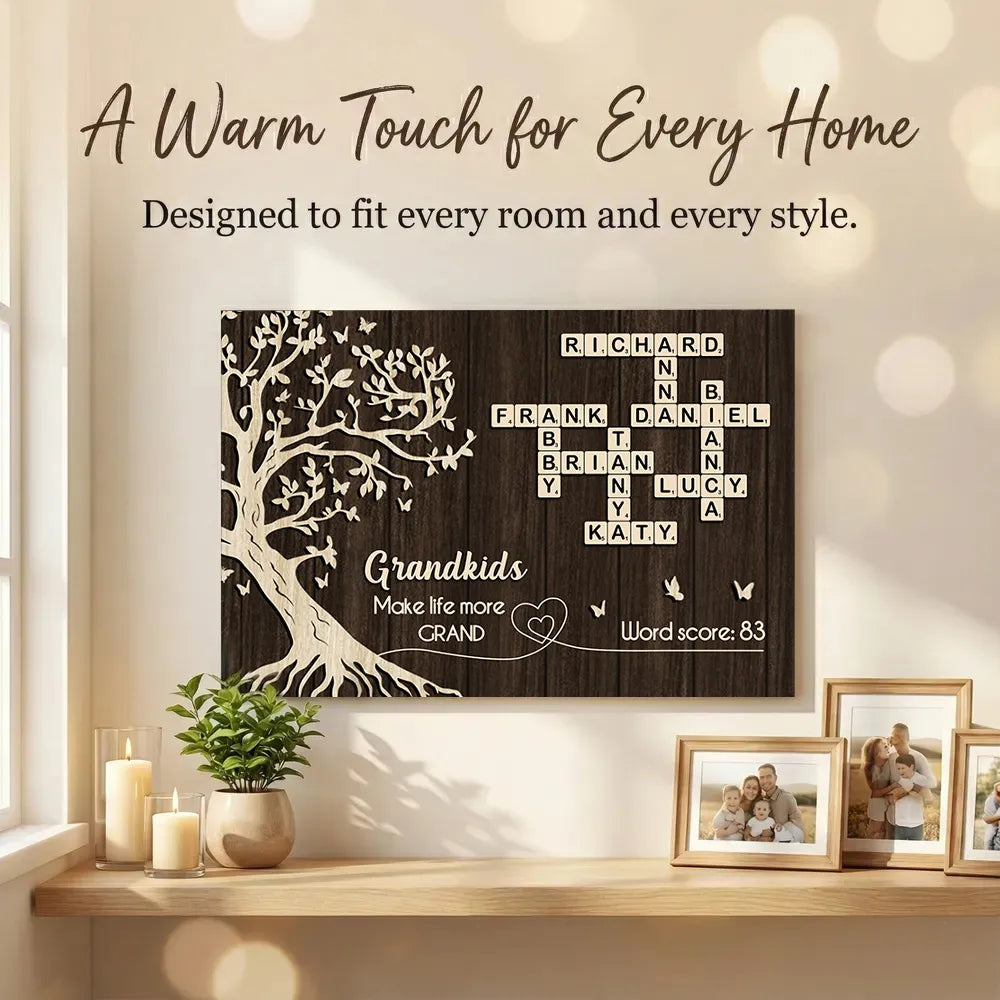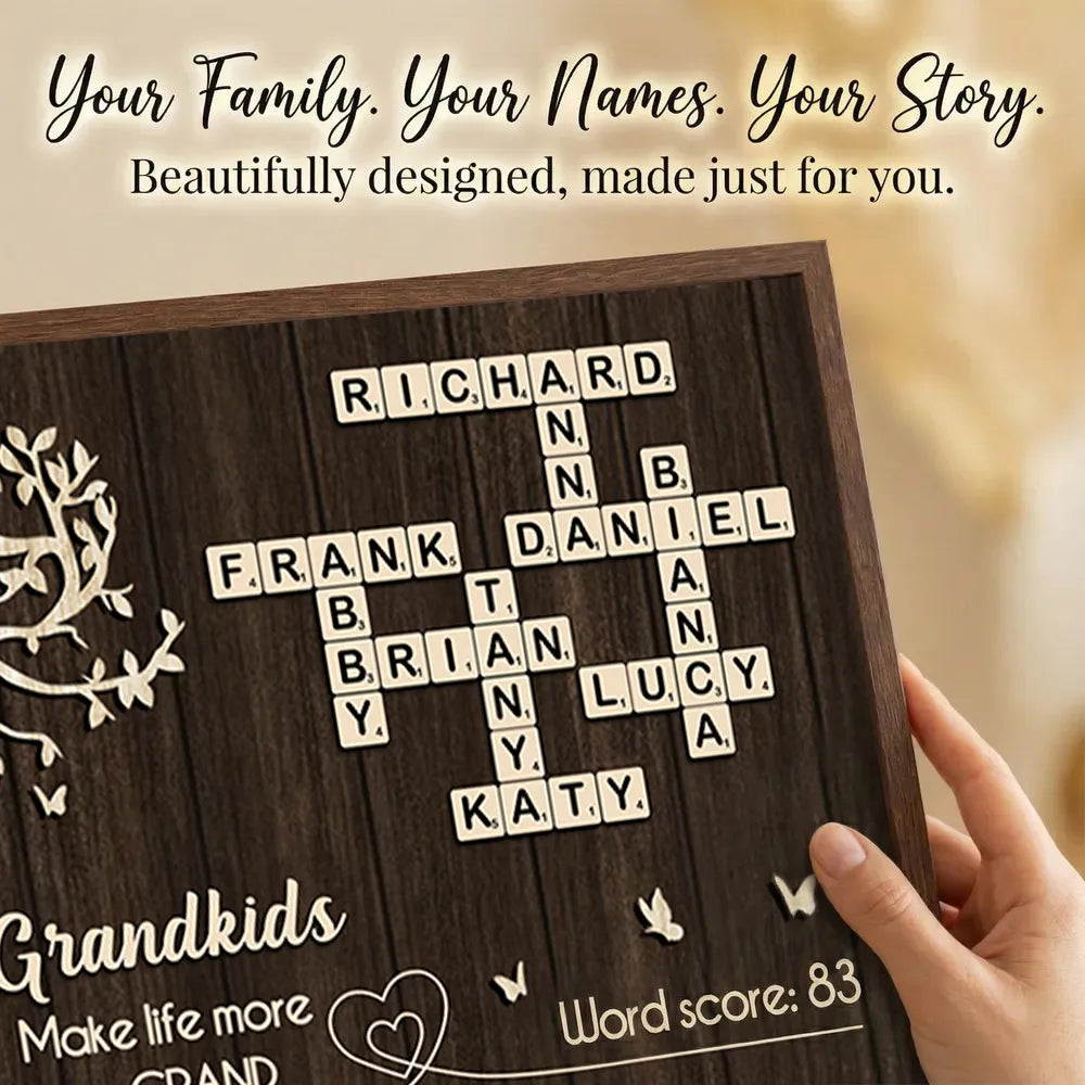 Personalized Grandkids Poster with Family Tree & Crossword Names – Custom Wall Art Gift for Grandma & Grandpa, Unique Home Decor Keepsake