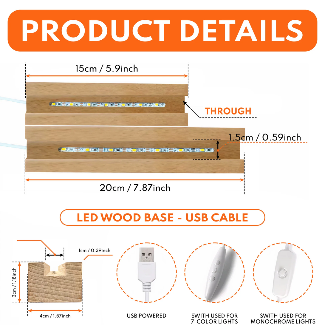 - Made of thick transparent acrylic with a smooth wooden base. The LED light provides soft, even illumination with low power use. USB-powered for easy connection to chargers or computers. Simple design, fine craftsmanship, ideal for home décor or ambient lighting.