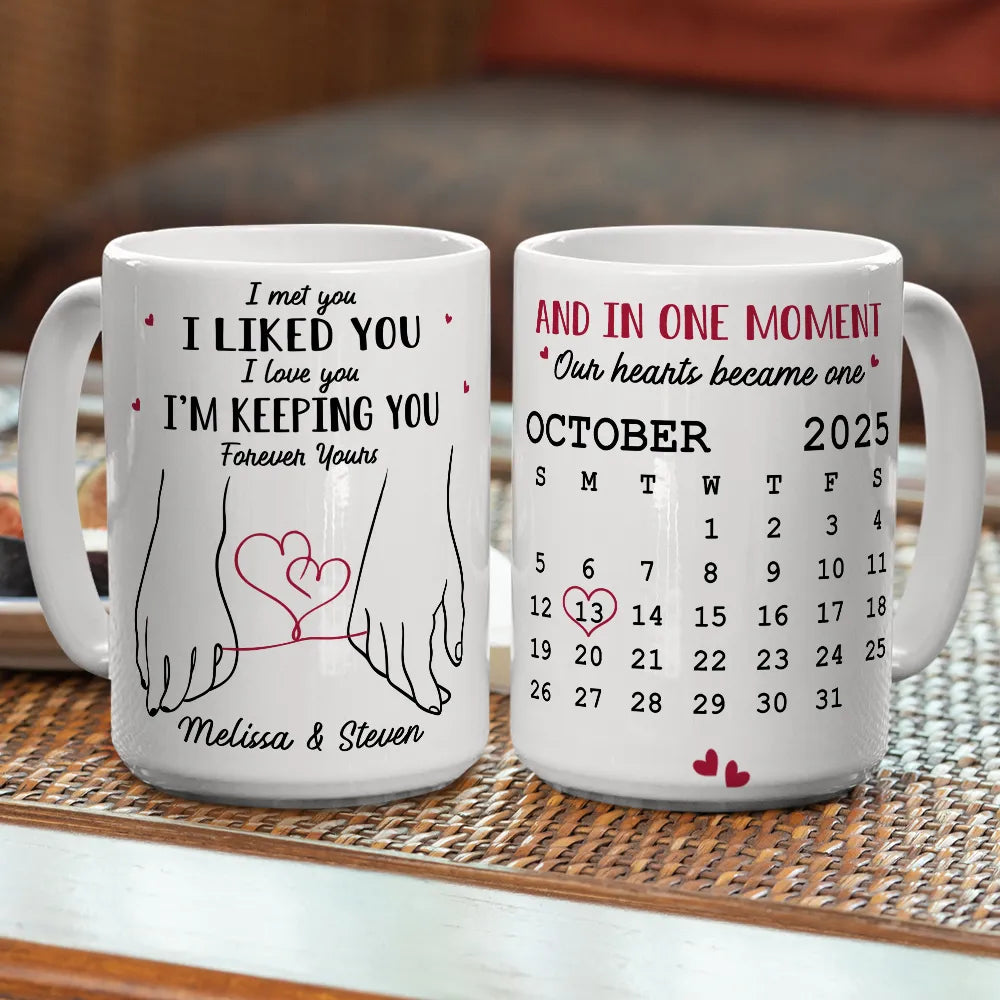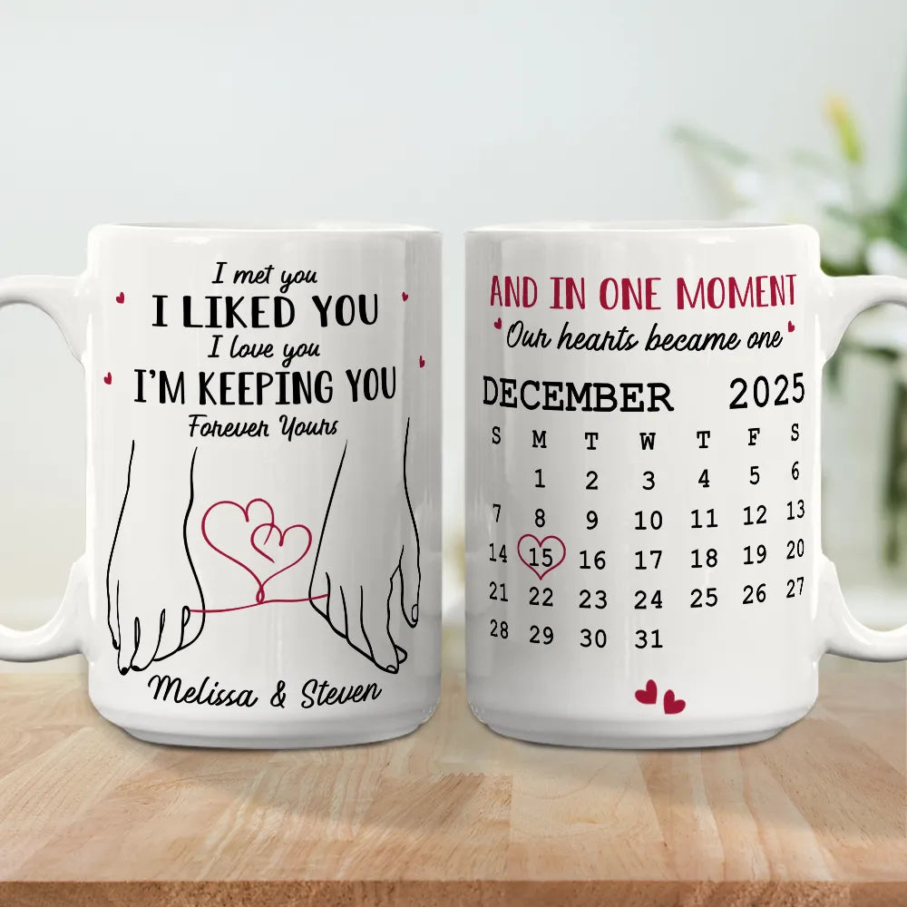 Personalized White Ceramic Mug for Couples with Holding Hands Art, Custom Date, Romantic Keepsake Gift