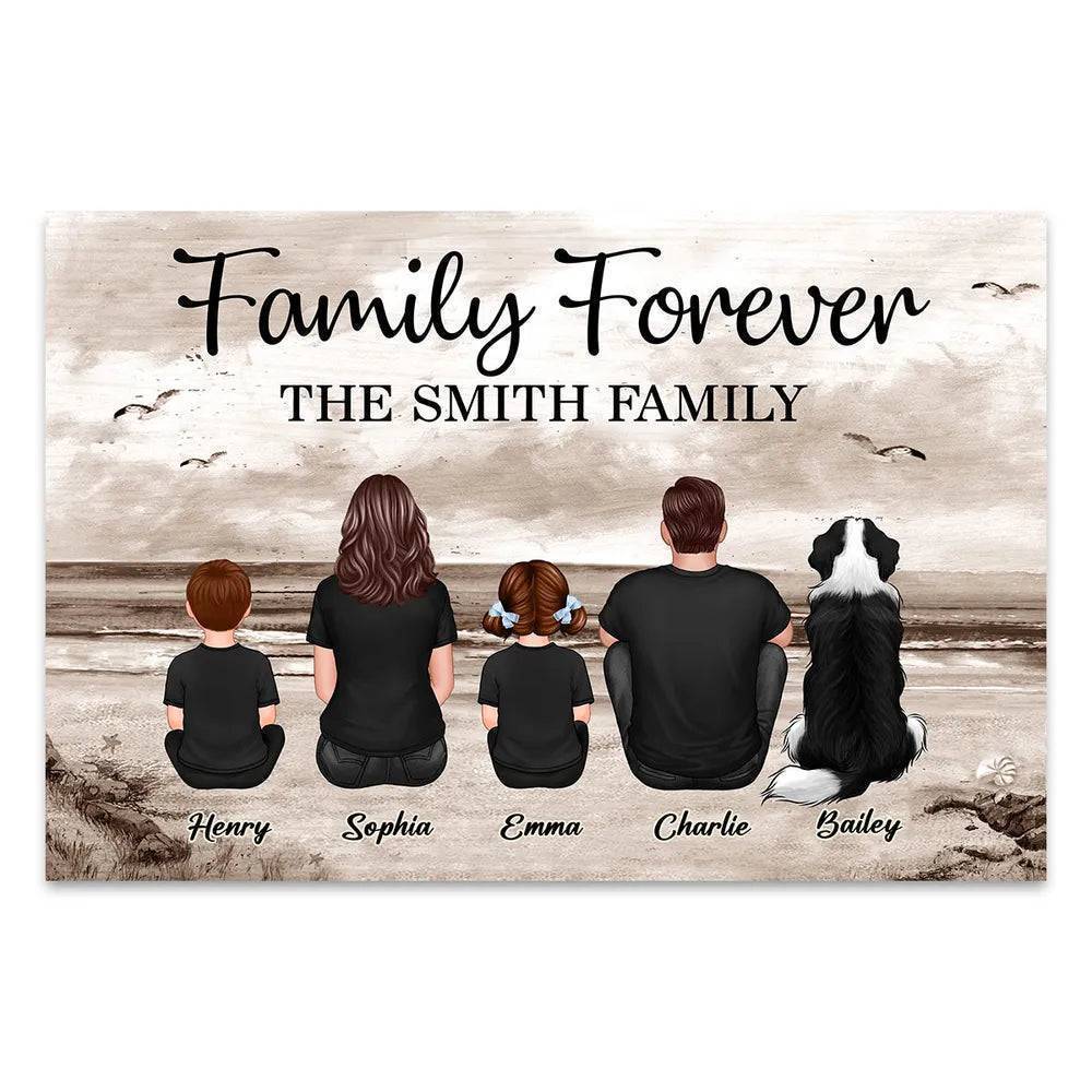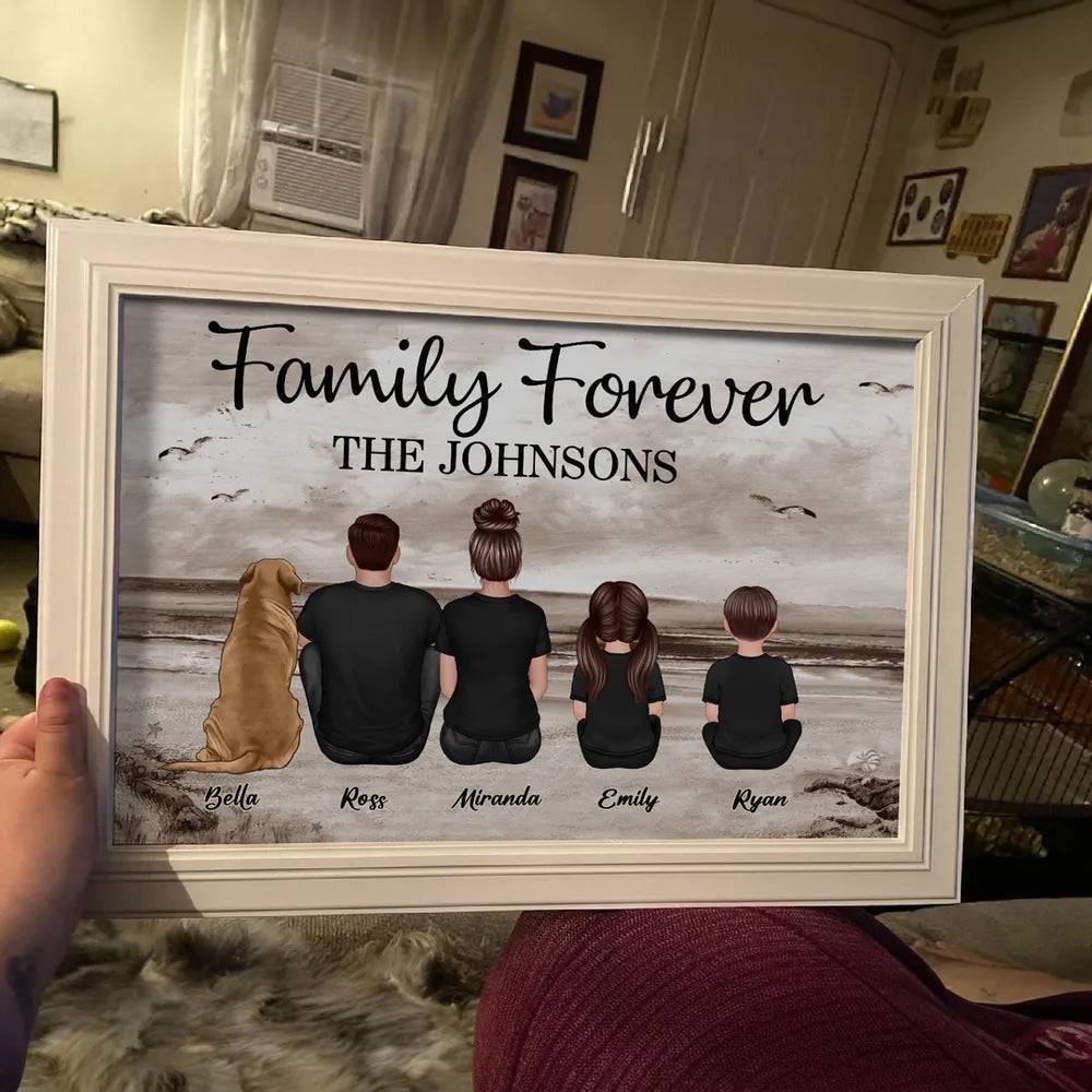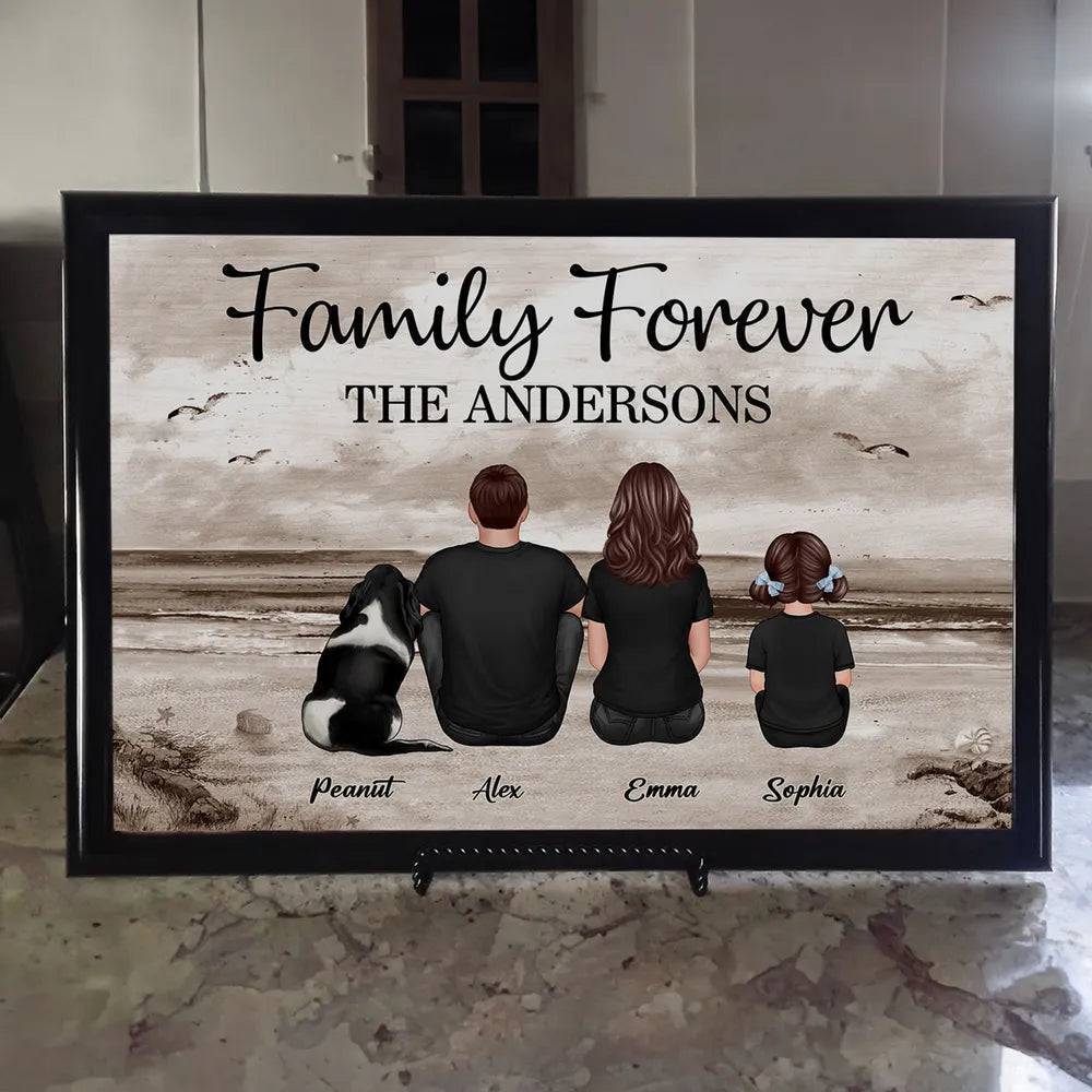 Family Forever Beach Design - Personalized Poster, Keychain, Wallet Card, and Pillow, Unique Gift