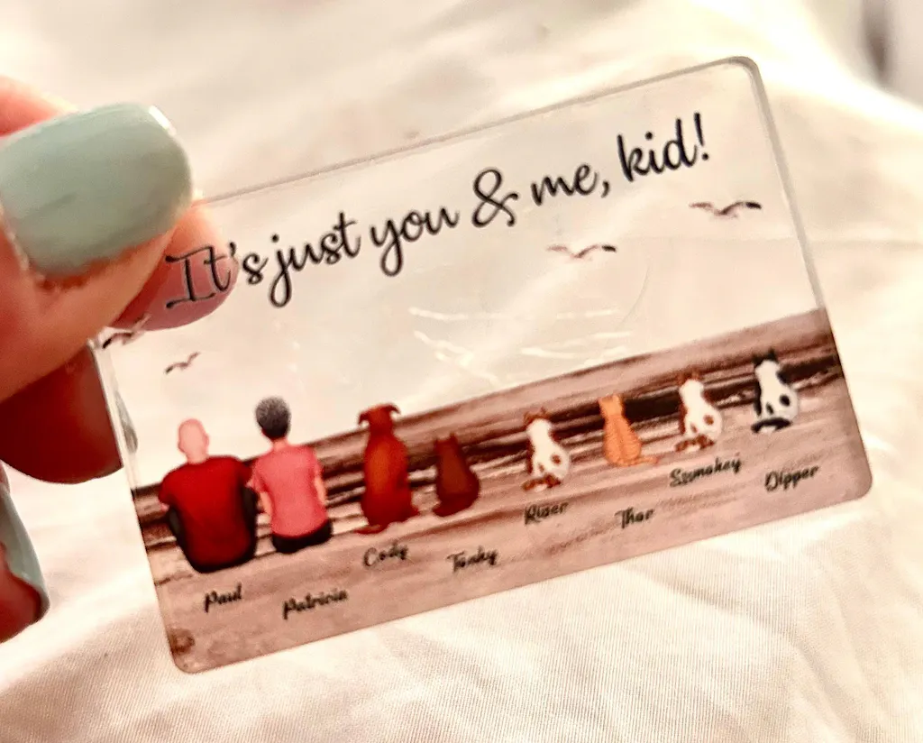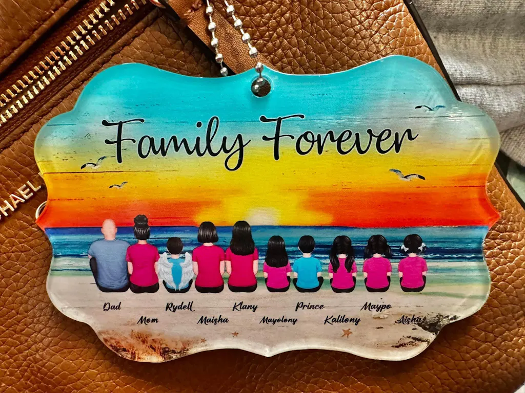 Beach Landscape Family Sitting Back View - Personalized Keychain or Poster or Plaque or Car Hanger or Pillow or Wallet or Wallet Card or Cap or Cup- Meaningful Gift for Loved Ones