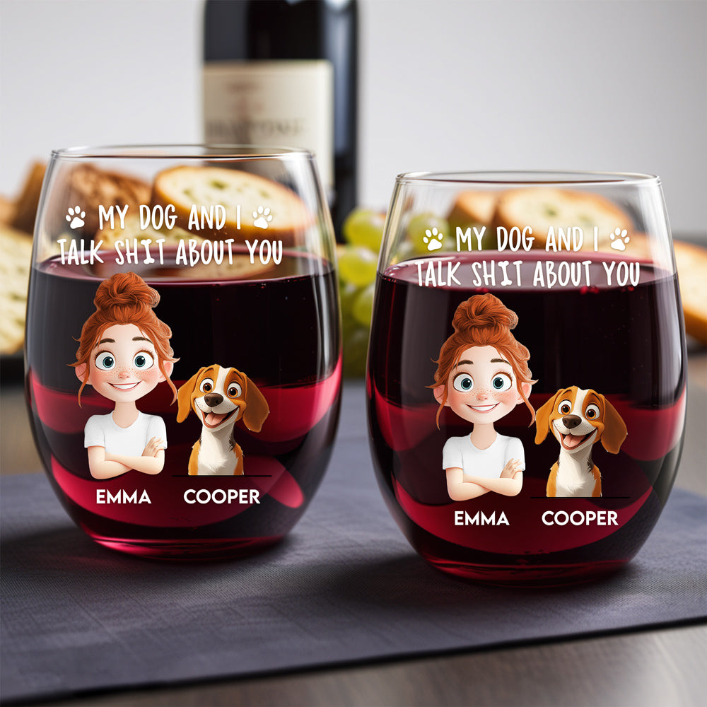 - Emotion the Design Expresses: This personalized wine glass is a heartfelt tribute to the bond between a dog and their owner. With a unique design featuring the playful and loving relationship shared between a dog and their owner, this wine glass captures the essence of those special moments. A perfect gift for any dog lover!