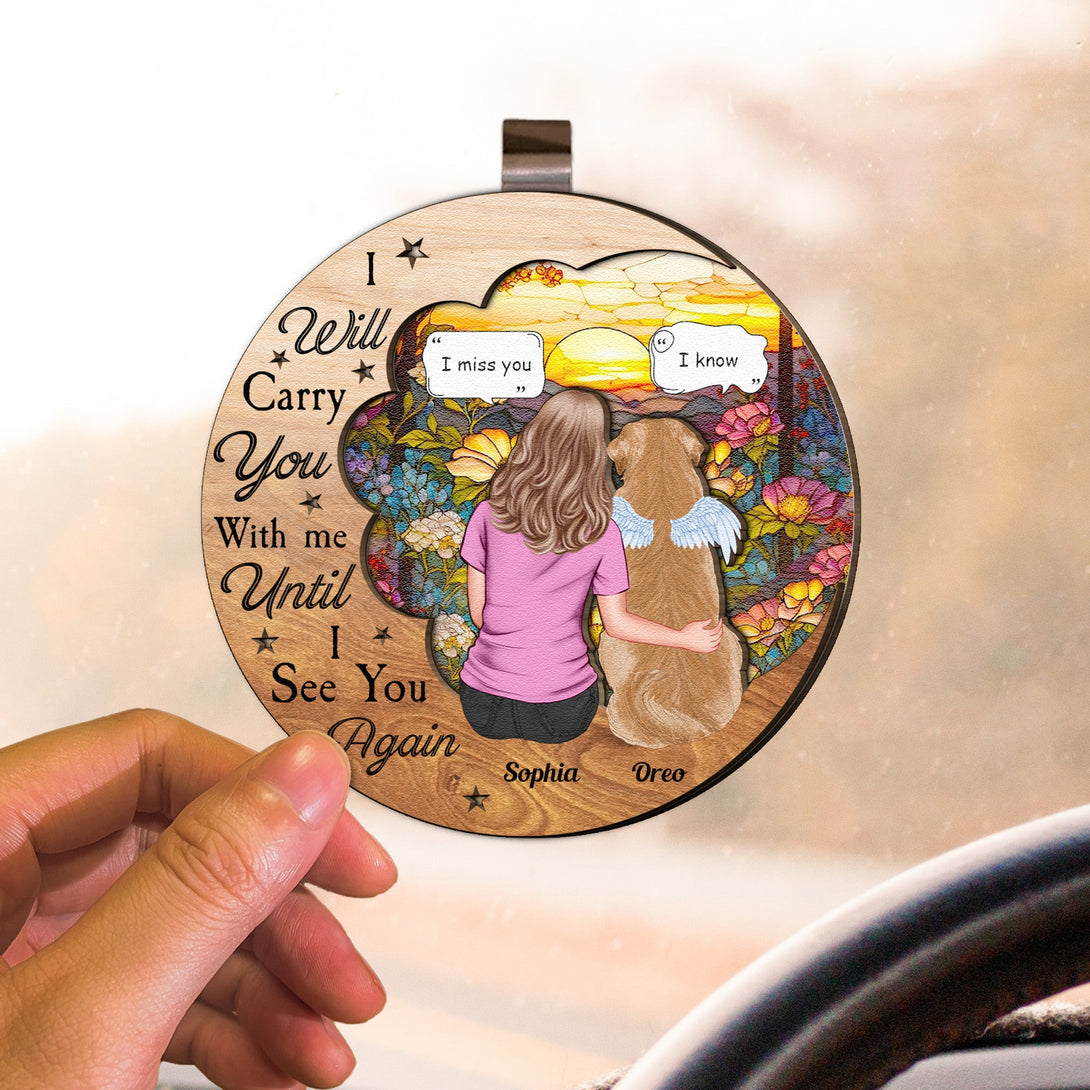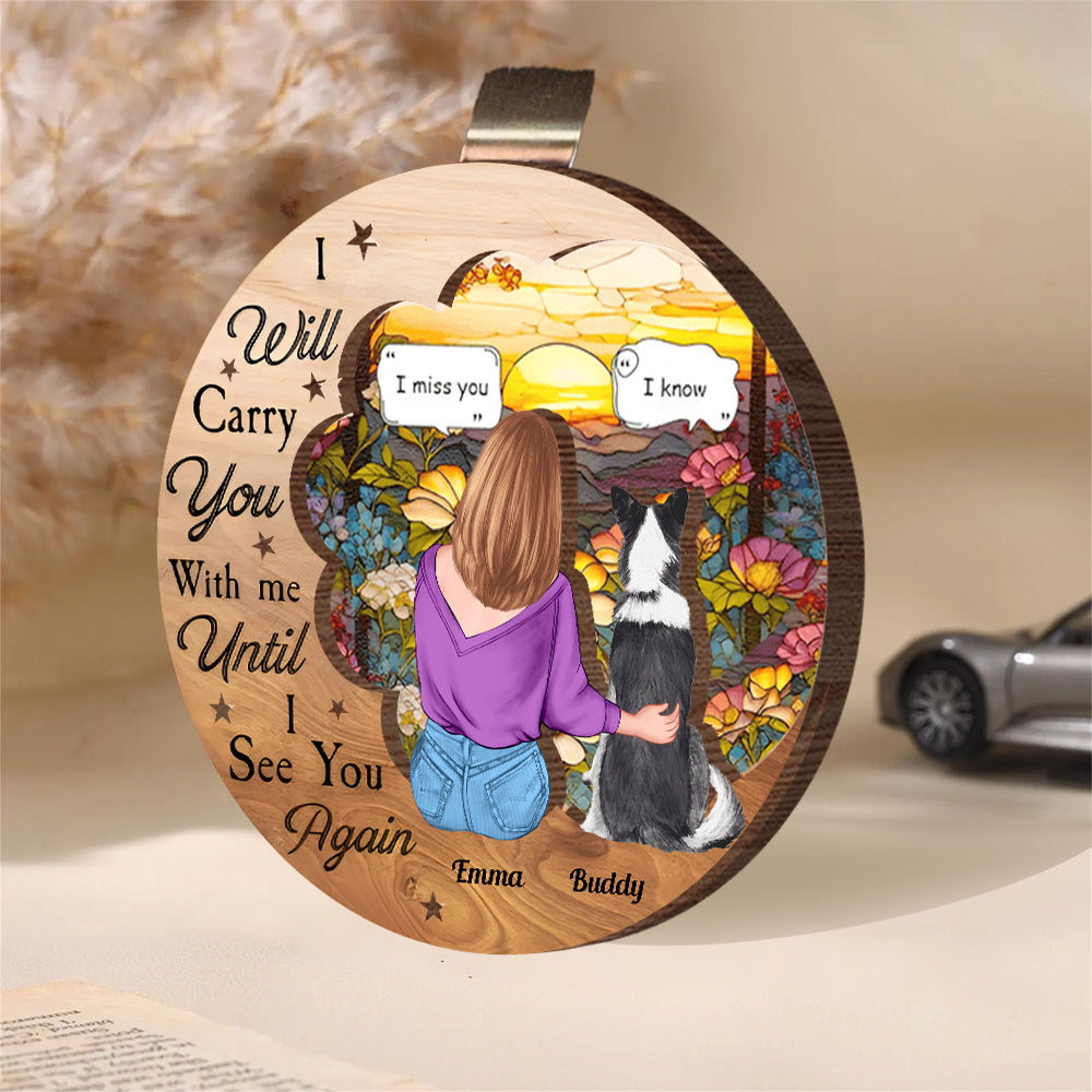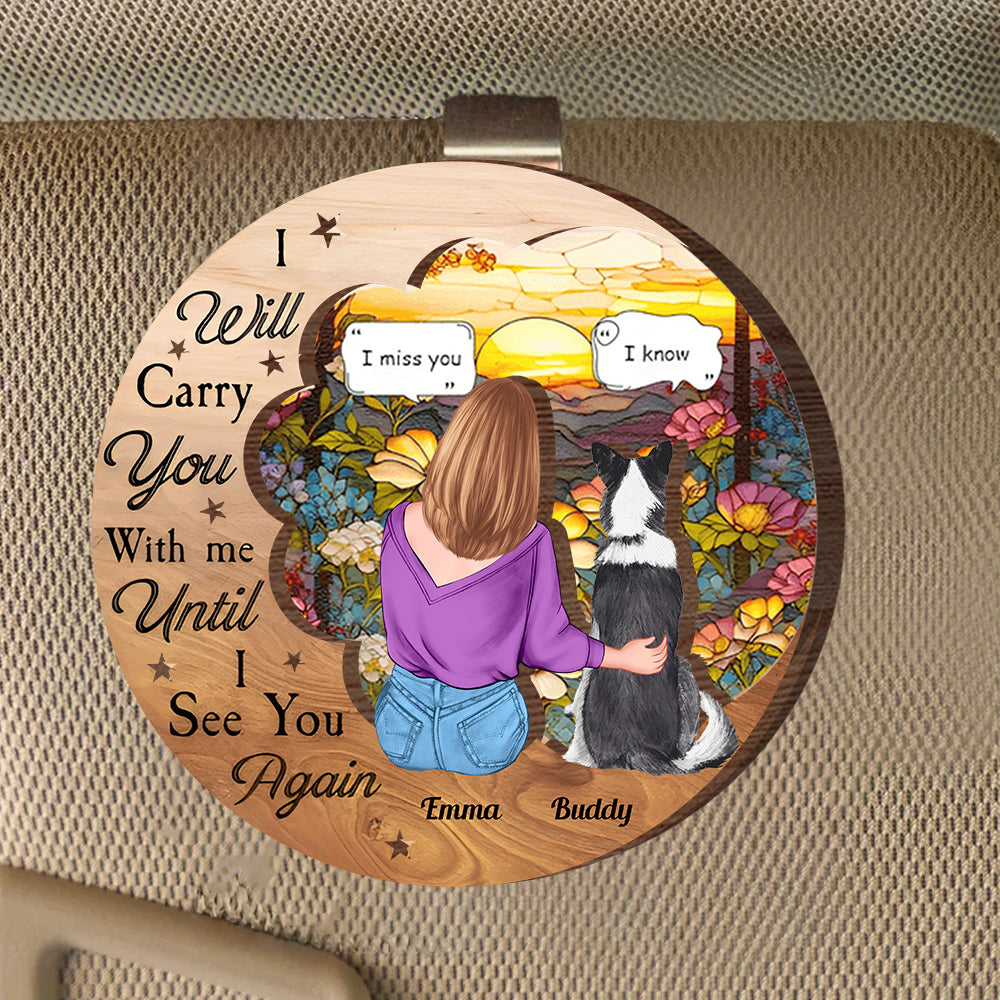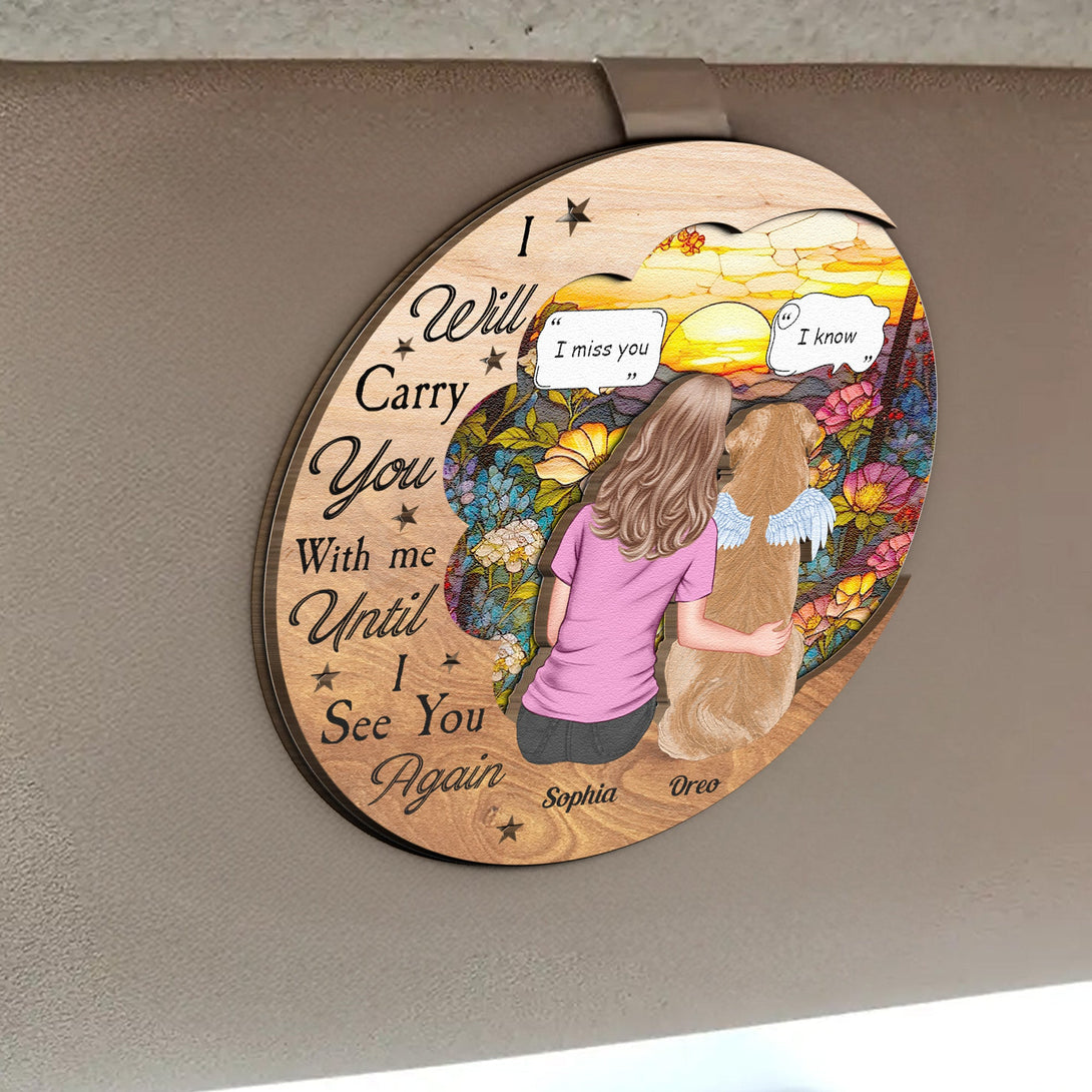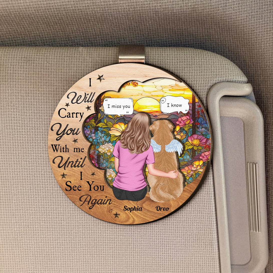 Personalized Car Visor Clip with Heartfelt Dog and Owner Illustration – Perfect Gift for Couples Who Cherish Their Pets