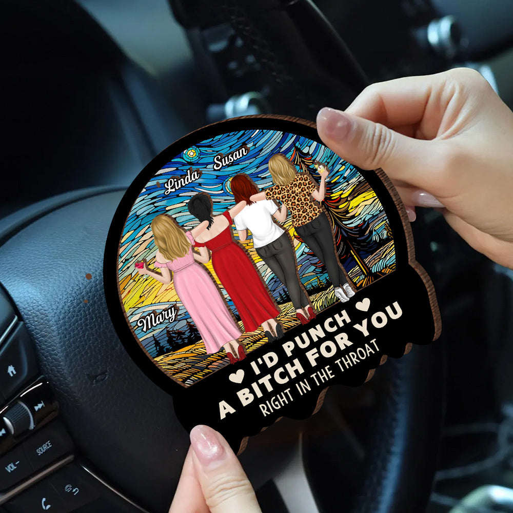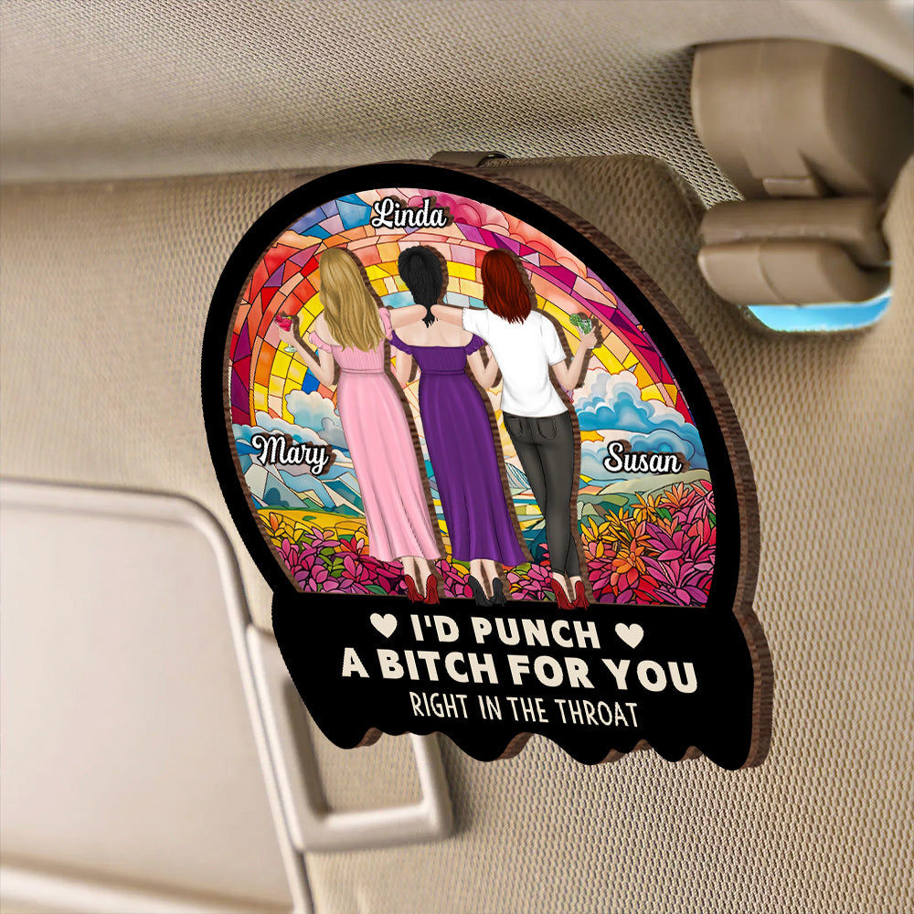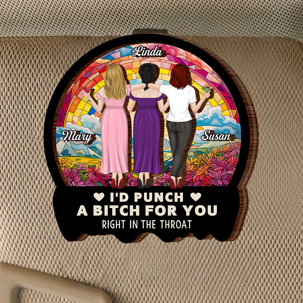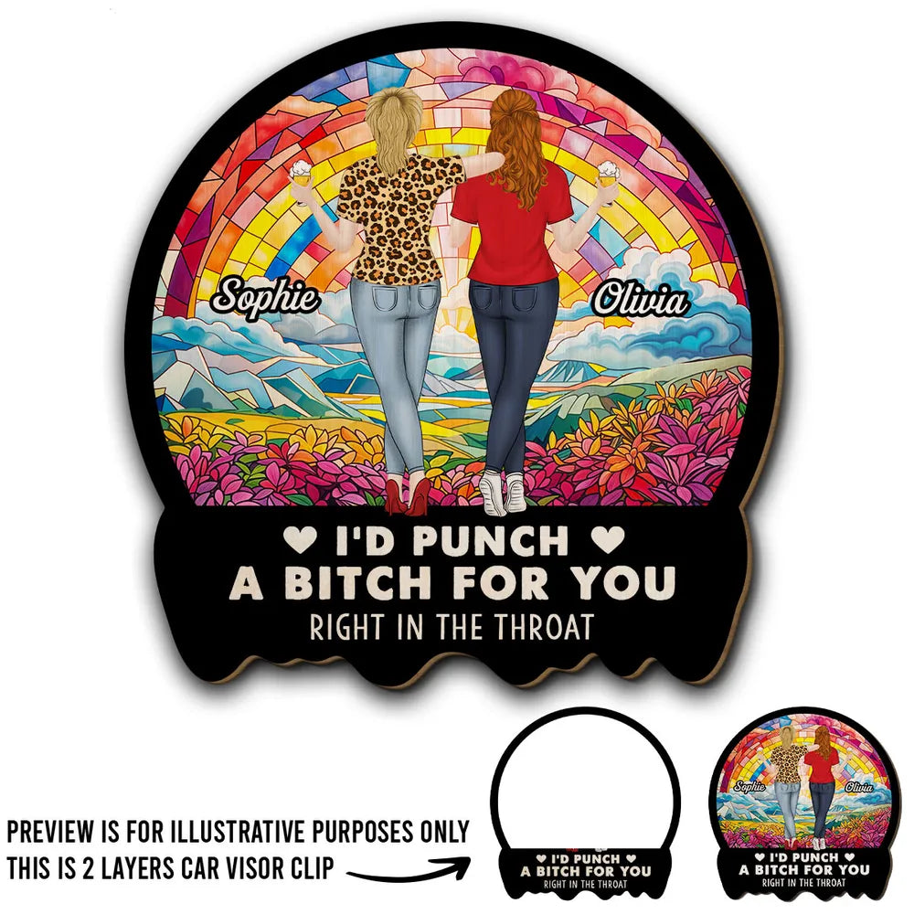 Best Friend Car Hanger – 'I'd Punch a B*h for You' – Funny and Meaningful Visor Clip for Sisters & Close Friends