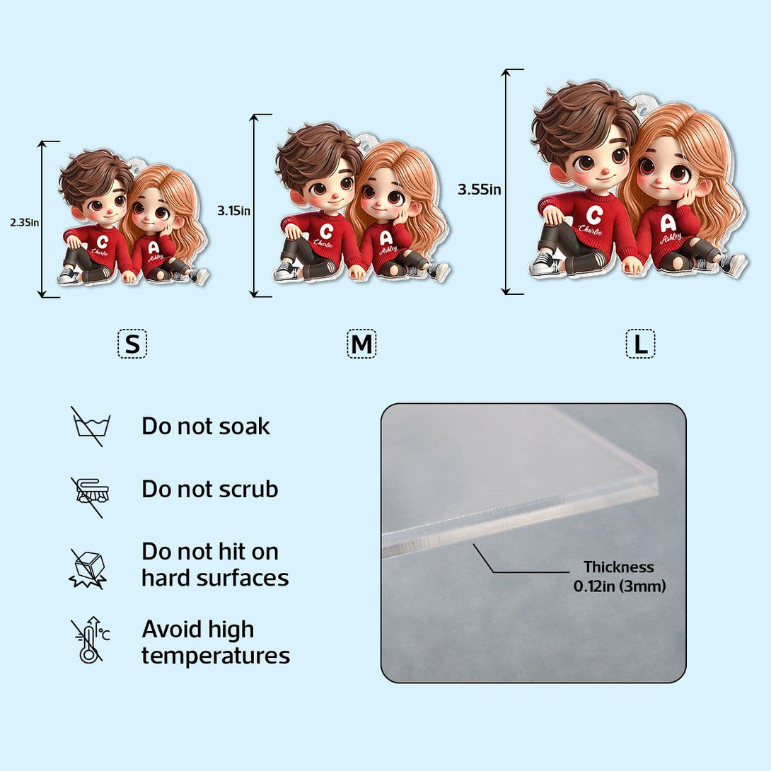 Crafted from high-quality acrylic material, this keychain features a detailed, vibrant cartoon illustration customized to represent you and your partner. Lightweight yet sturdy, it’s designed for durability and daily use, bringing joy every day.