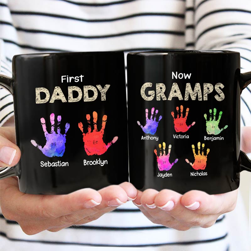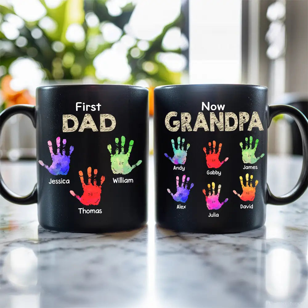 Full‑Color Handprint Mug – “First Dad, Now Grandpa” Favorite Gift for Dad or Grandpa