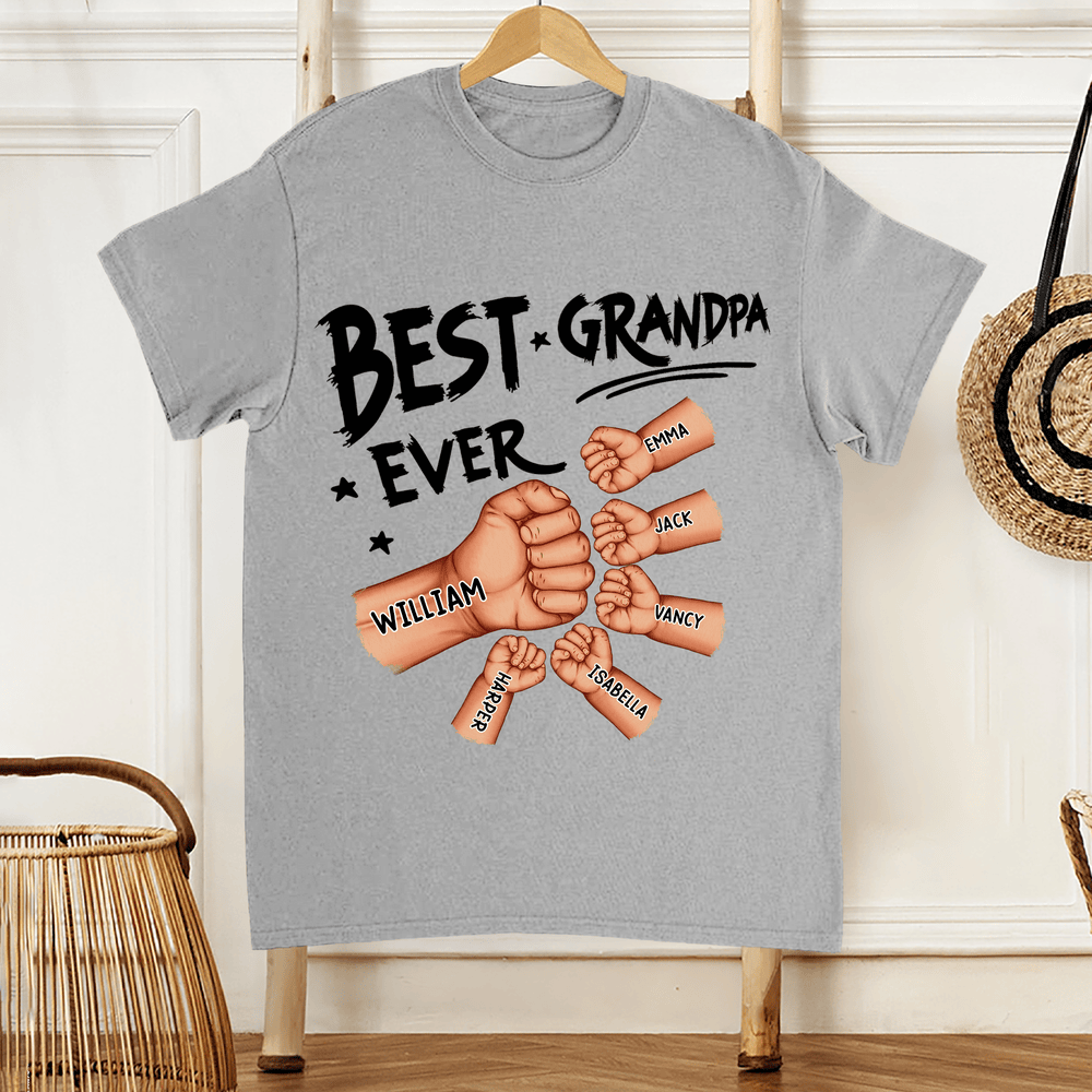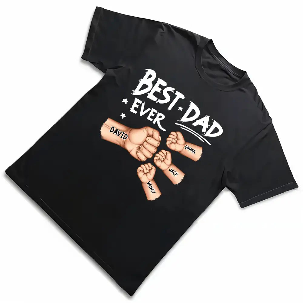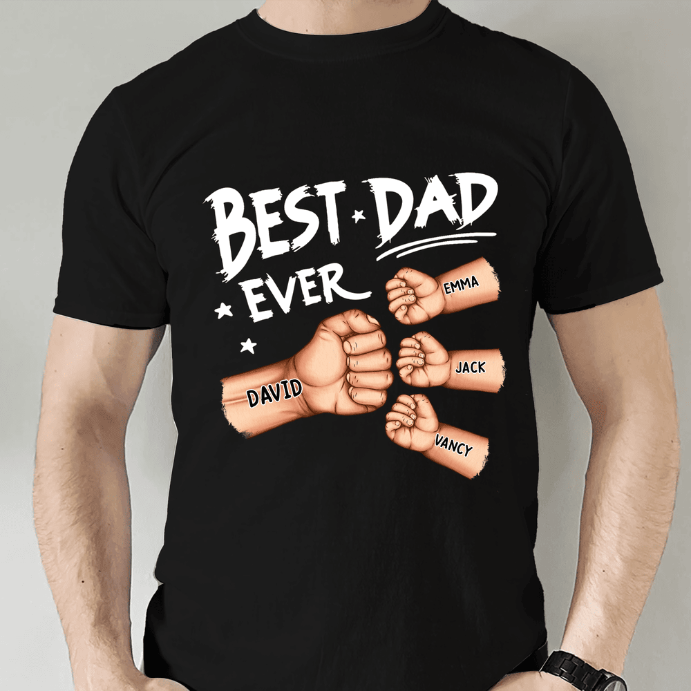 Celebrate the unbreakable bond with Dad through the Best Dad Ever Classic Tee by doyobest. This personalized design showcases a powerful fist bump graphic featuring customizable kids' names, making it a thoughtful Father’s Day or milestone gift. Crafted from premium cotton blend fabric, it ensures breathable comfort suitable for casual daily wear. Durable prints preserve vivid colors even after repeated washes, while the relaxed fit adds ease for at-home lounging or family outings. Ideal for personalized online shopping, this tee combines heartfelt design and lasting quality.
