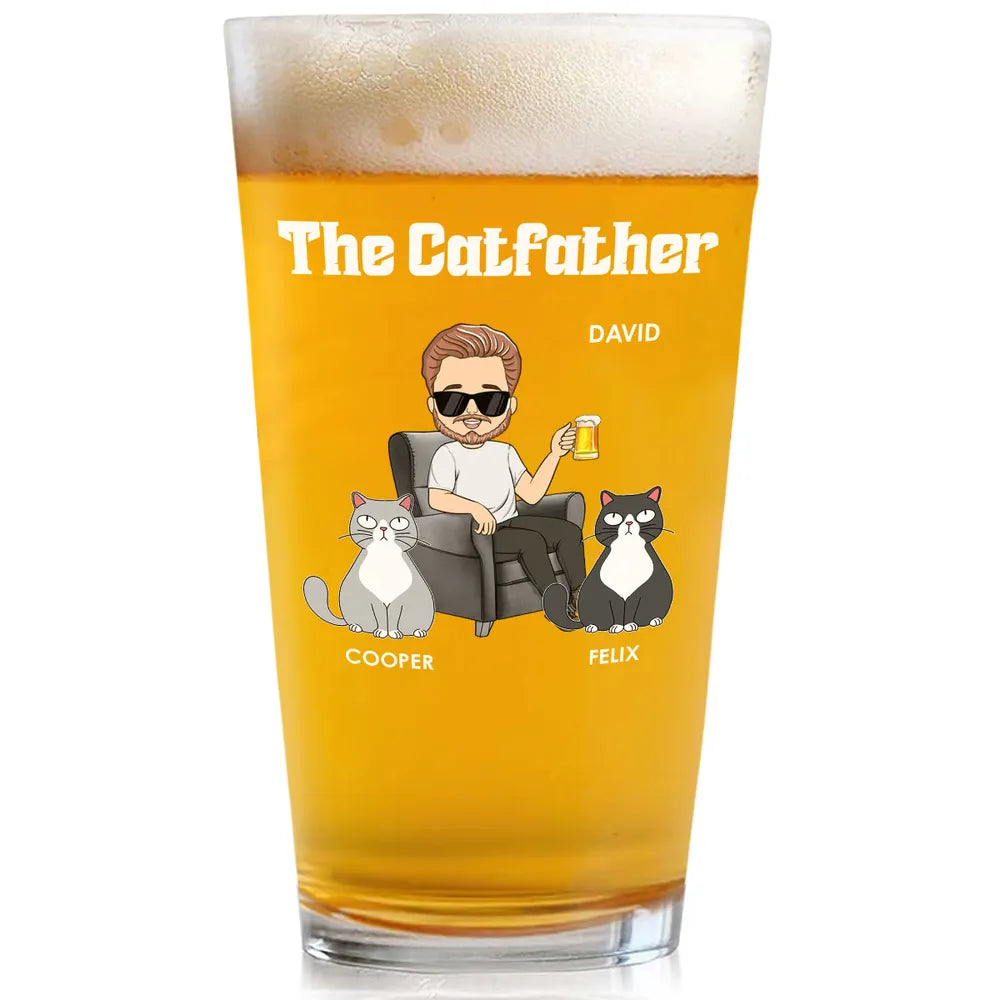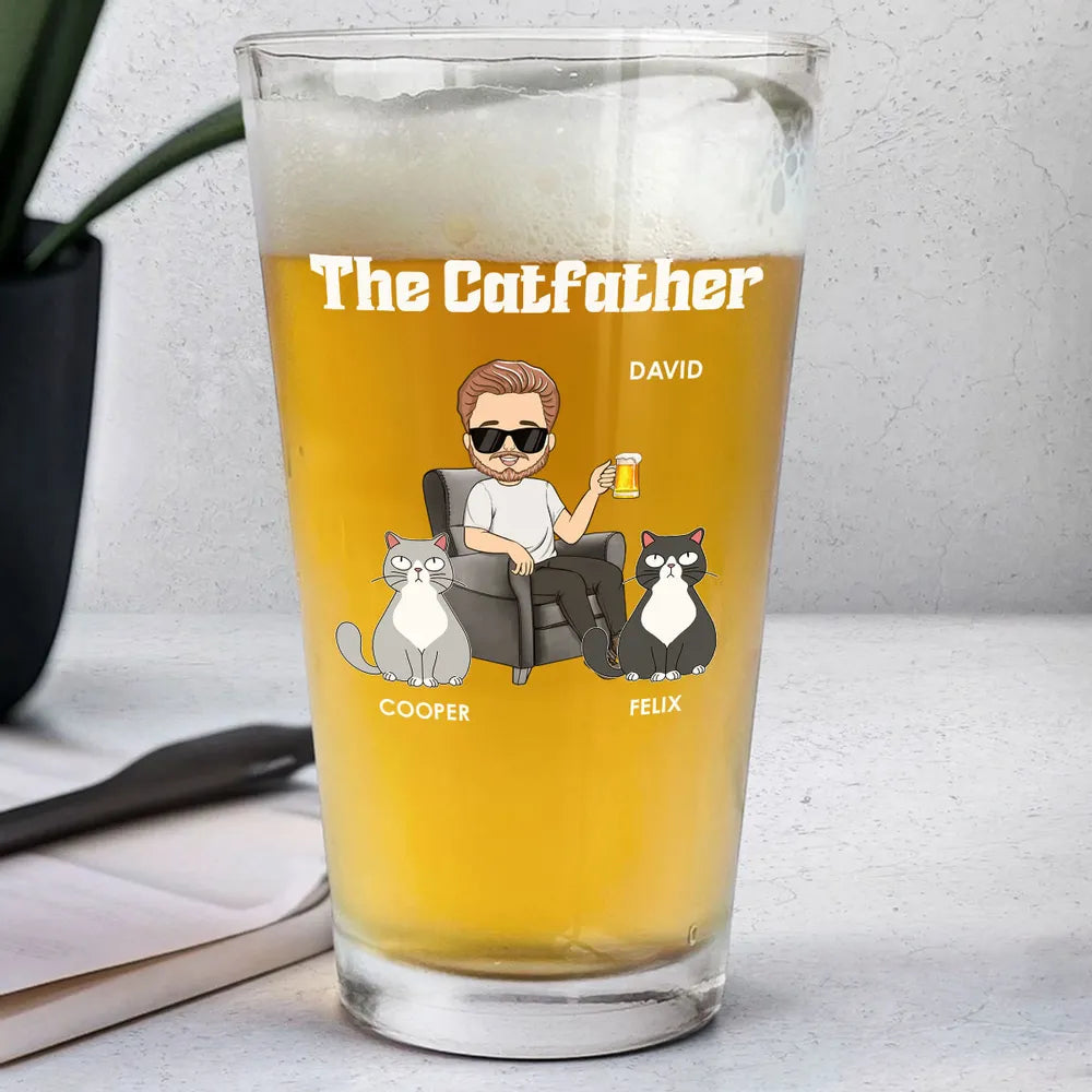 Personalized Beer Glass for Cat Dad – The Catfather Design with Cute Cats – Father's Day Gift for Pet Lovers