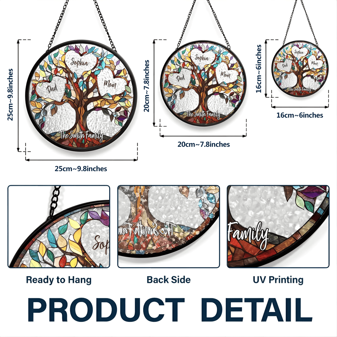 Personalized Family Tree Suncatcher Ornament – Custom Names on Stained Glass Look – Heartwarming Gift for Parents or Grandparents