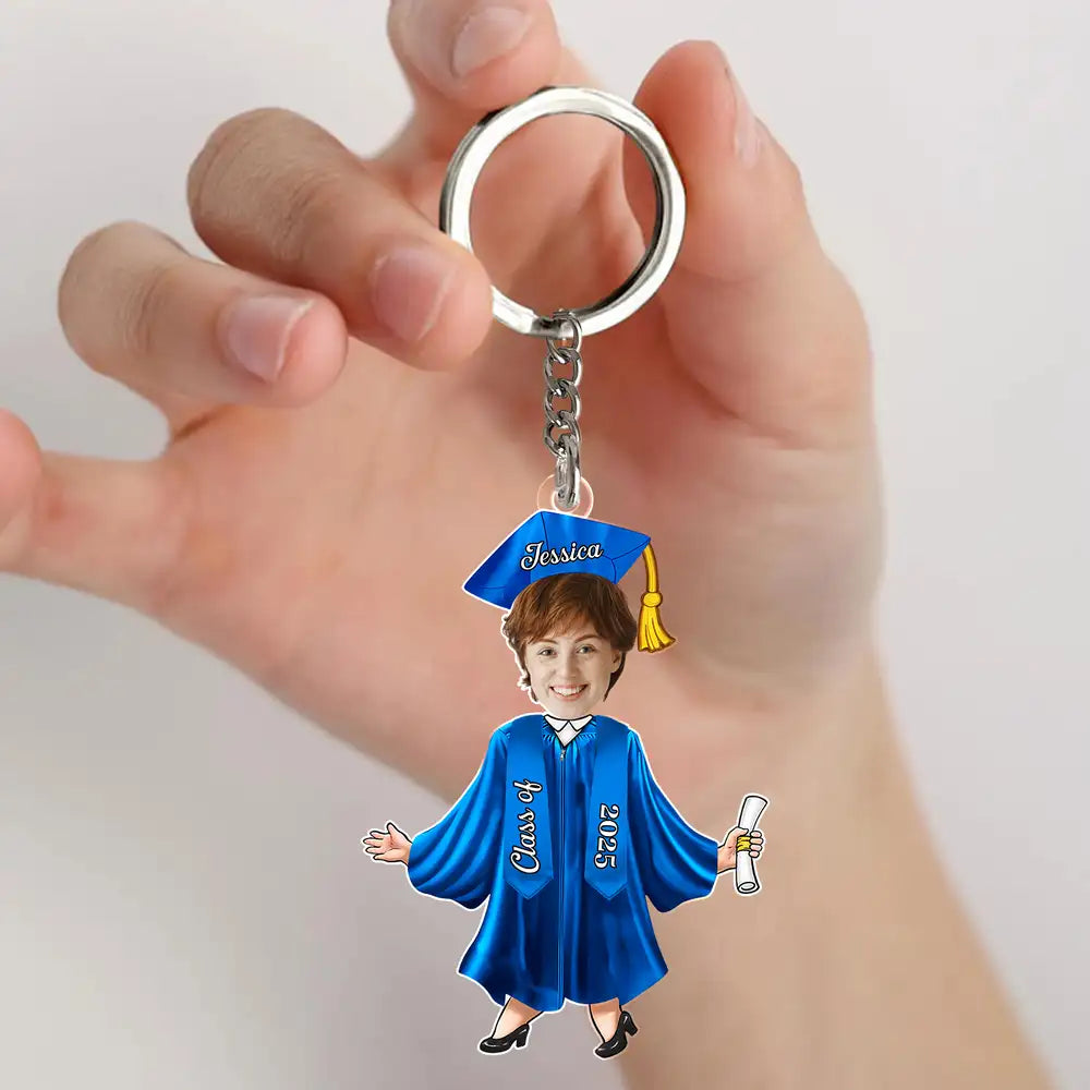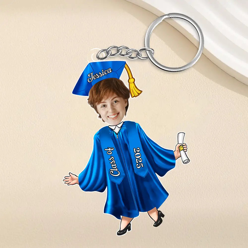 Custom Graduation Face-Cutout Acrylic Keychain – Cap, Gown & Diploma, Funny Keepsake Gift for the New Grad