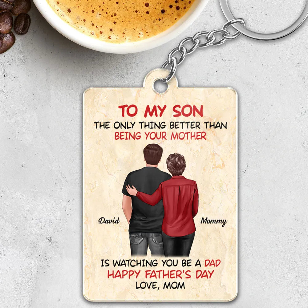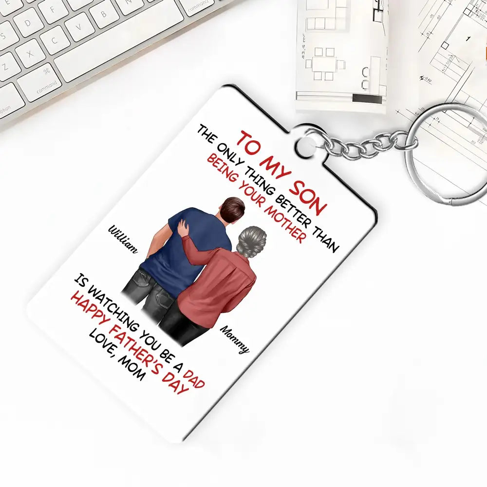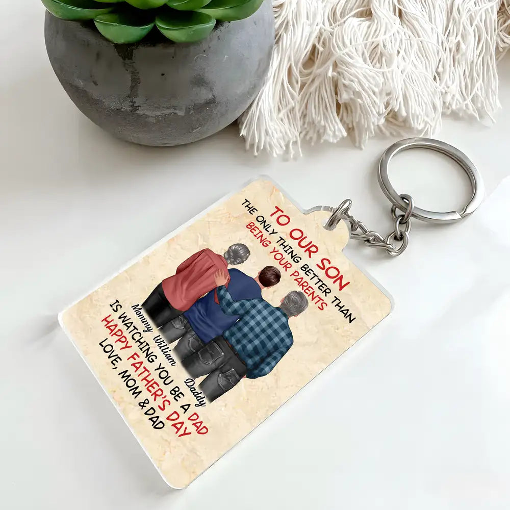 Mom-Dad-Son Back-View Keychain, Happy Trio Father’s Day Keepsake