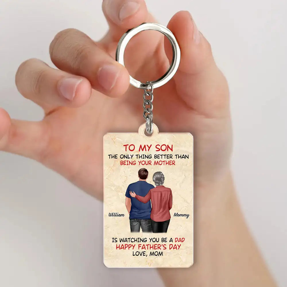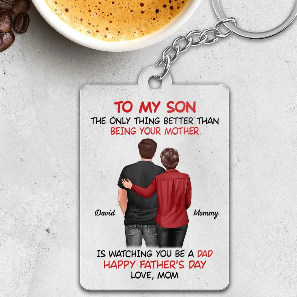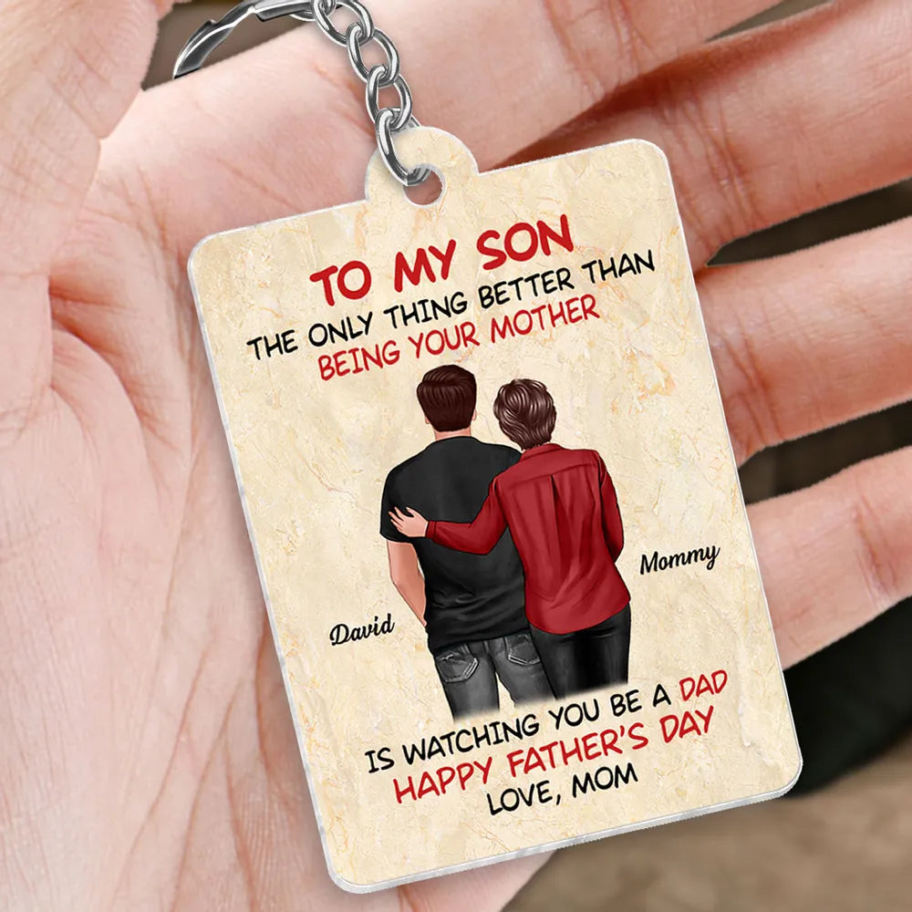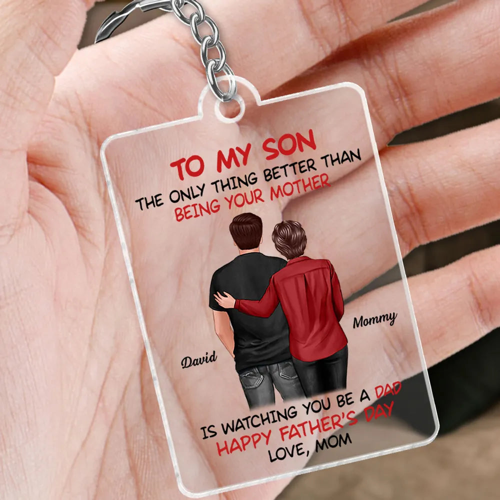 Mom-Dad-Son Back-View Keychain, Happy Trio Father’s Day Keepsake