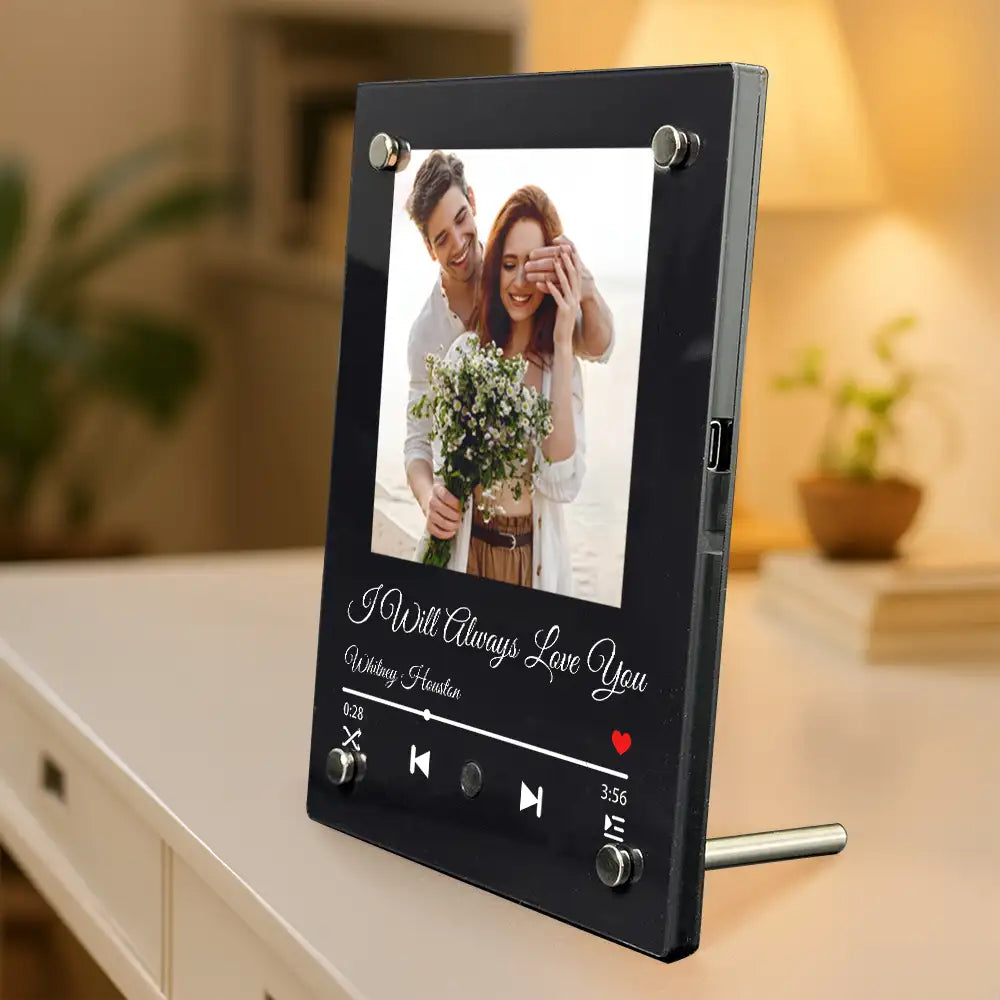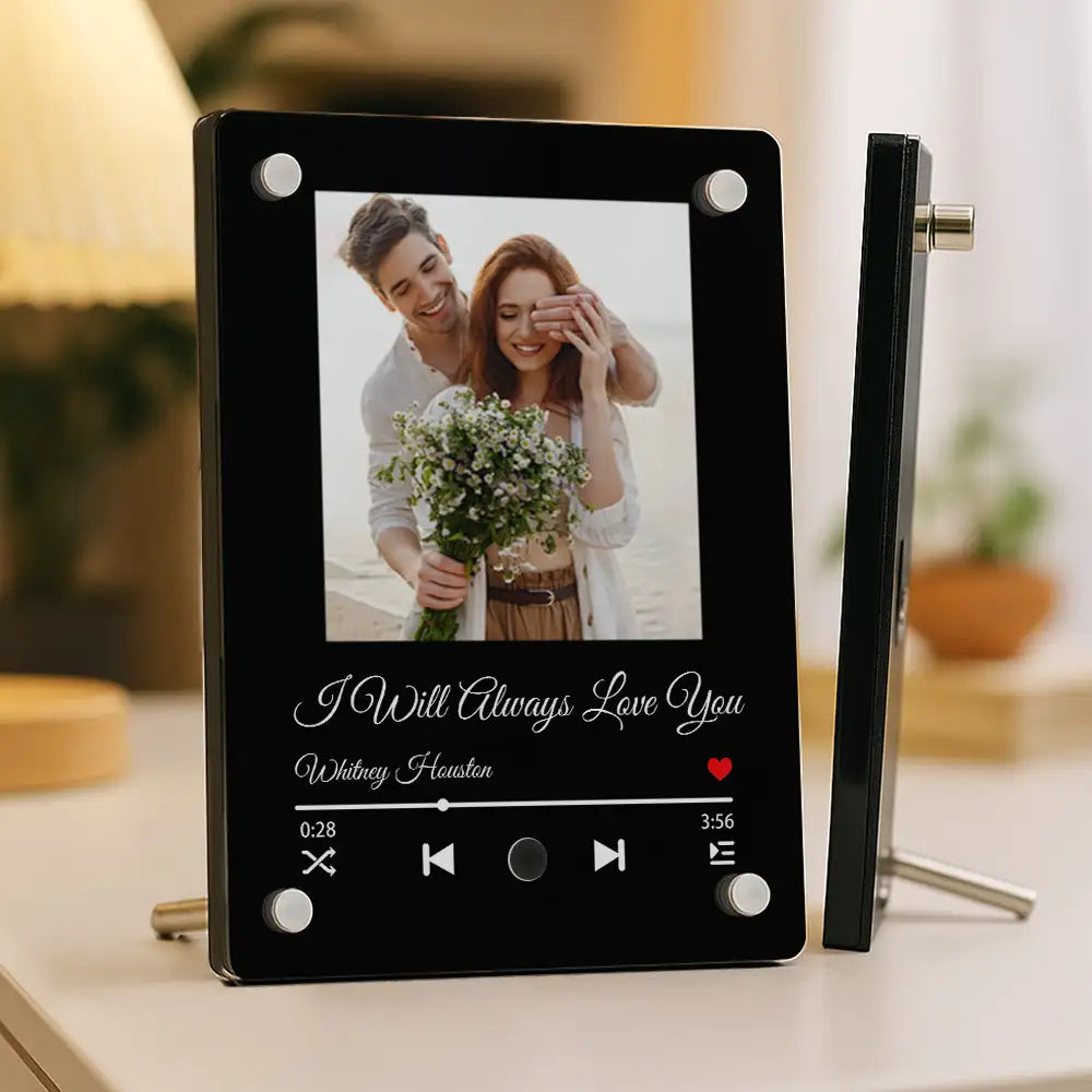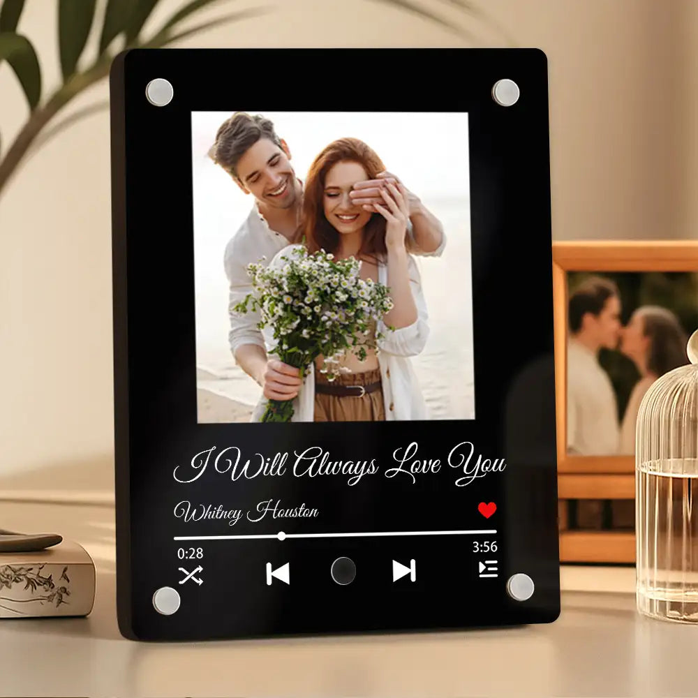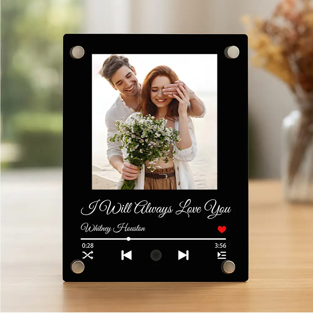 Custom Anniversary Acrylic Music Frame – Date, Names, and Photo with Favorite Song Display
