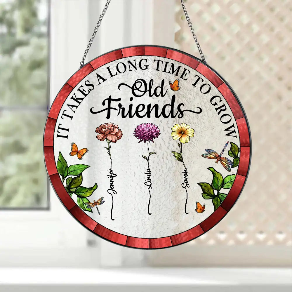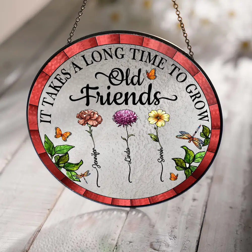 Personalized Floral Suncatcher Ornament – It Takes A Long Time To Grow An Old Friend – Gift For Sister Or Friend