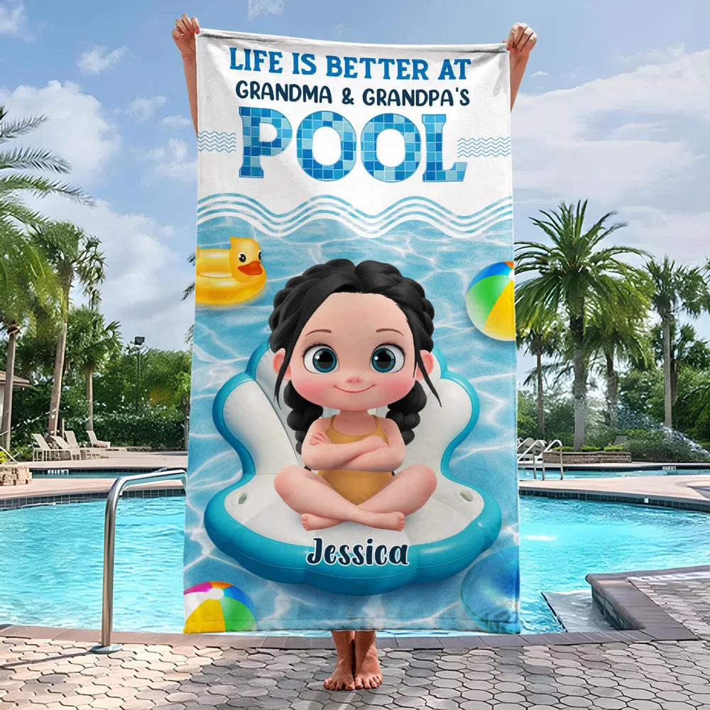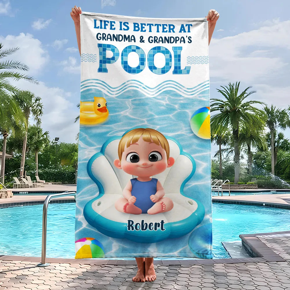 Life Is Better at Grandma & Grandpa's Pool” Personalized Beach Towel
